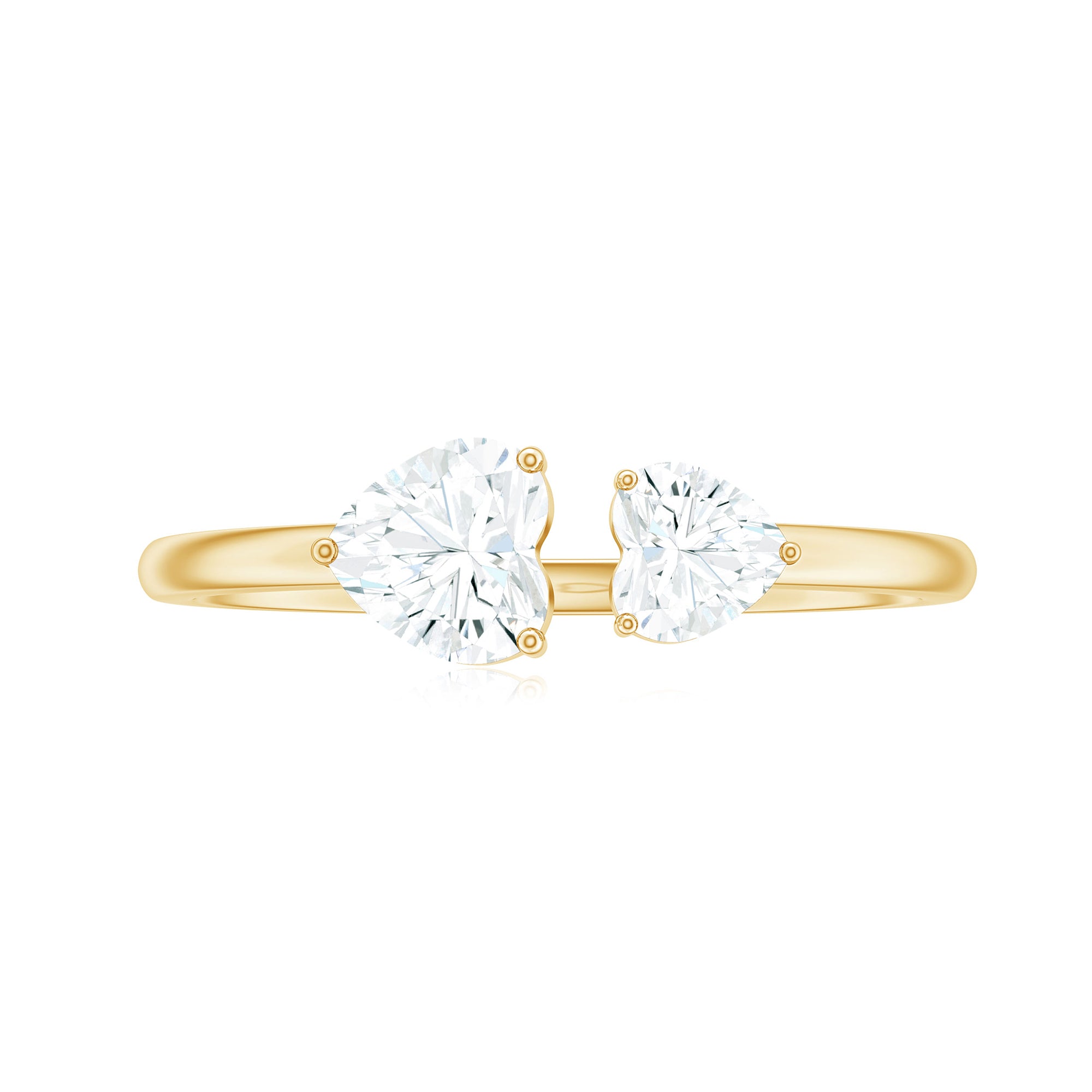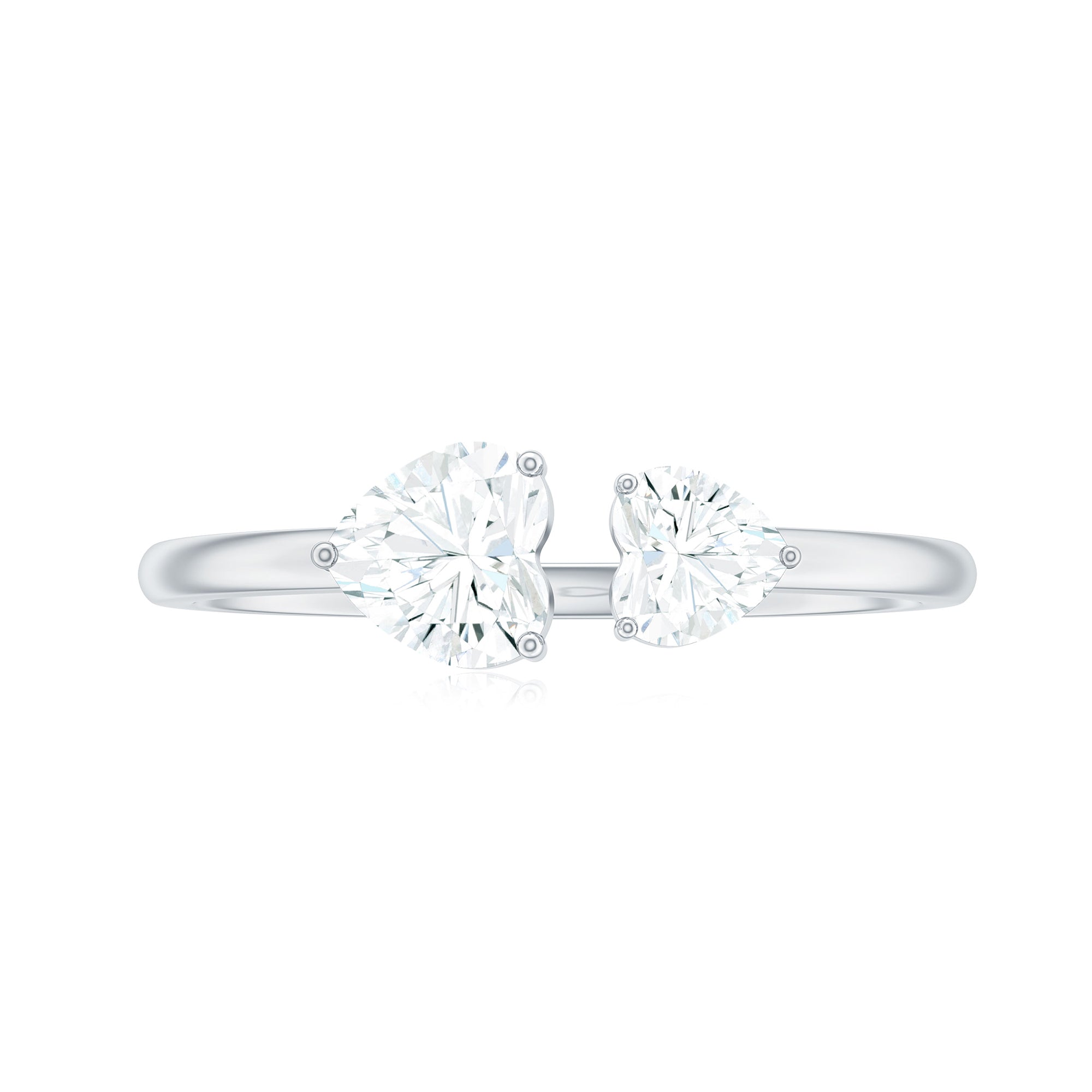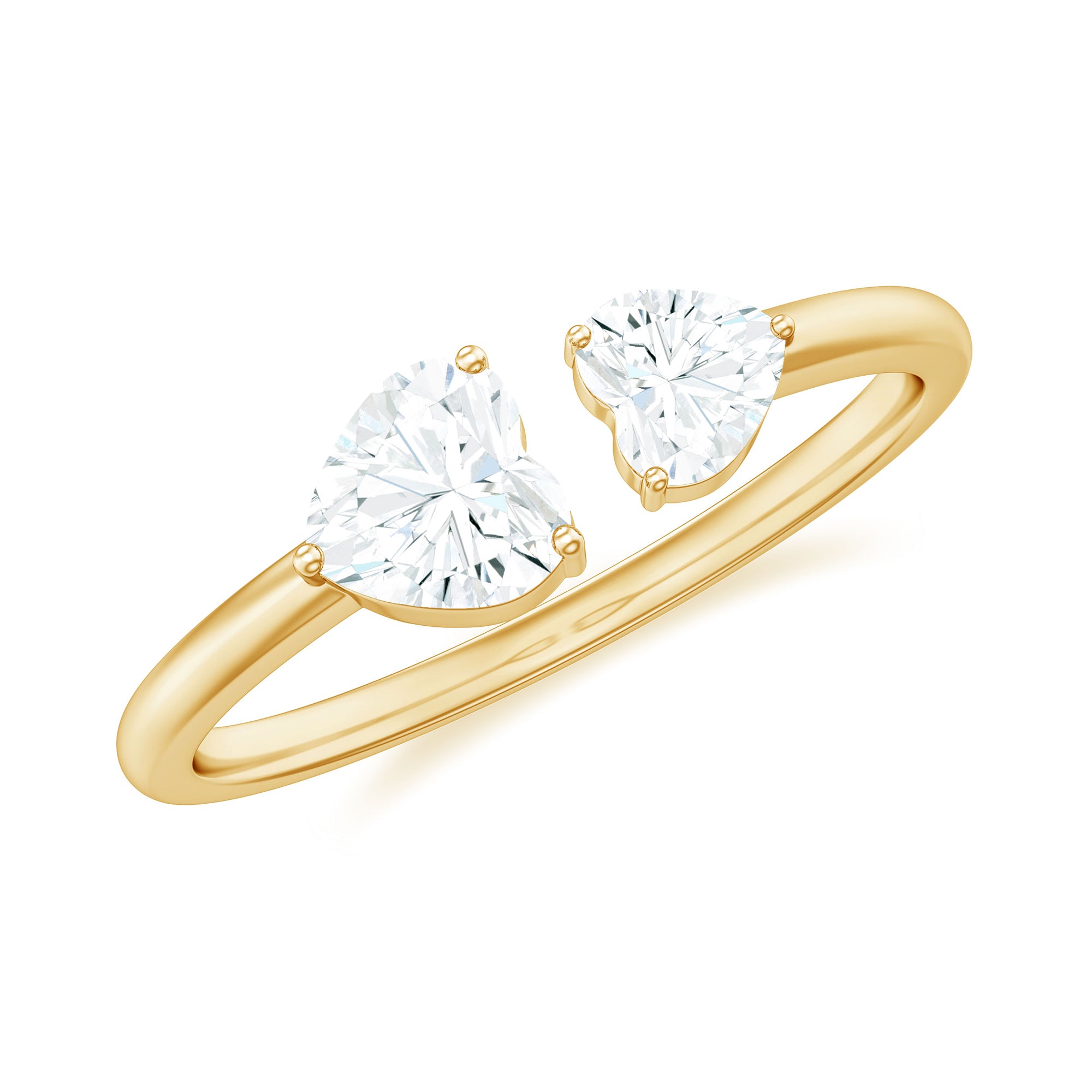 Capture double the love with this Two Stone Cuff Ring. Two sparkling Heart Shape Moissanite gemstones embrace your finger in a symbol of romance and connection, making a stunning statement of affection and elegance.