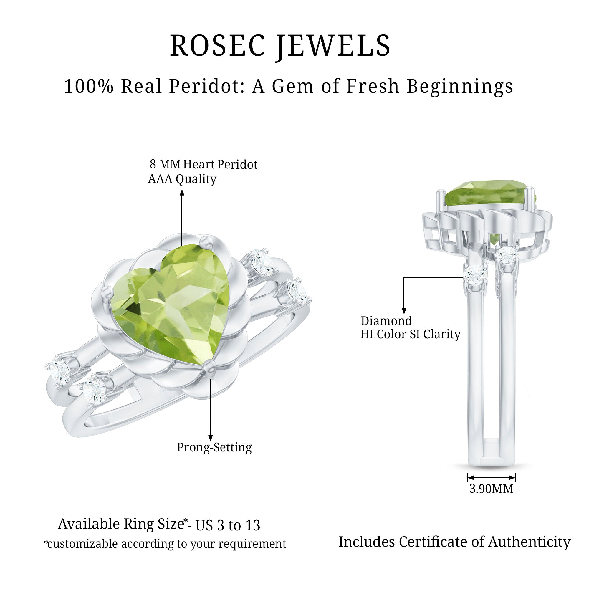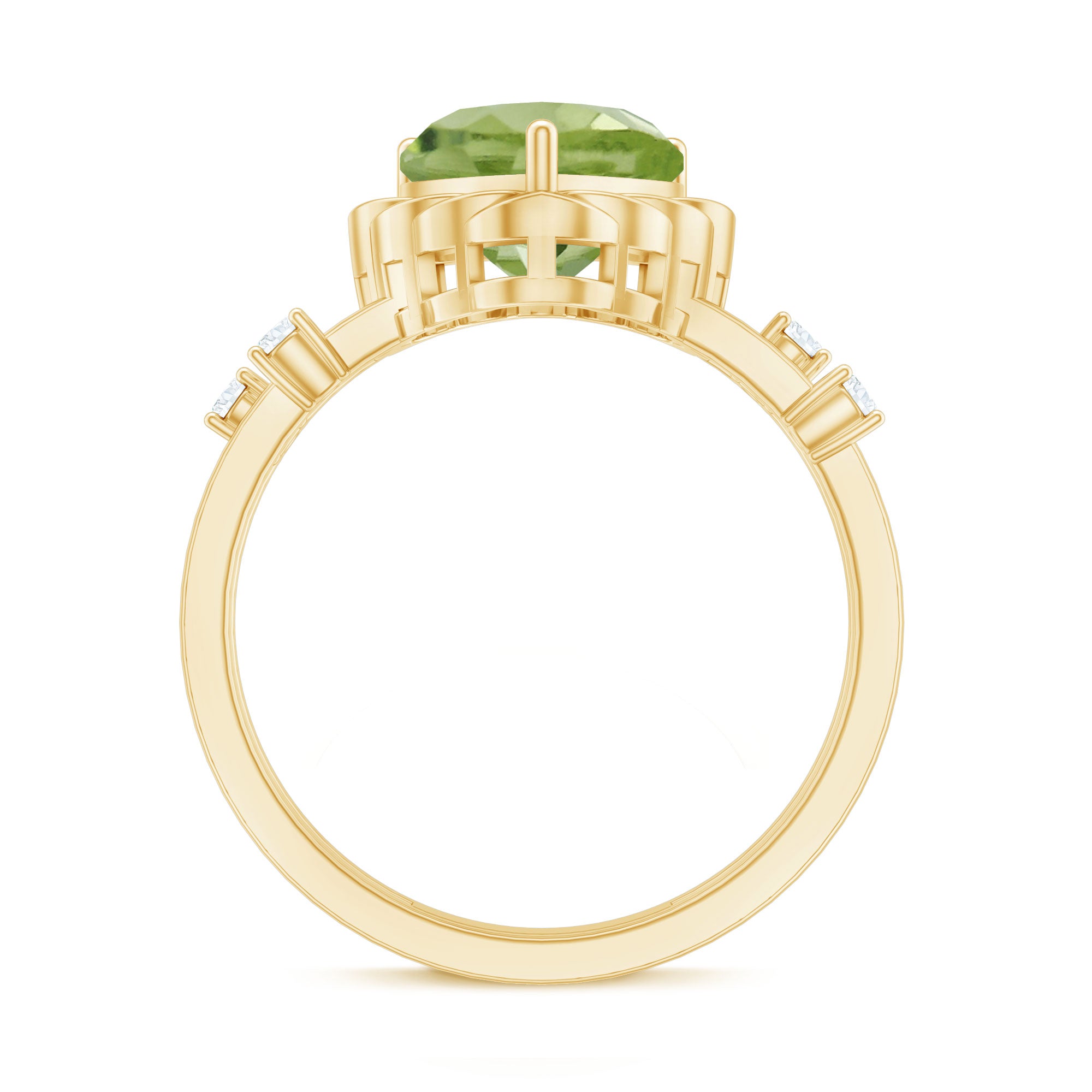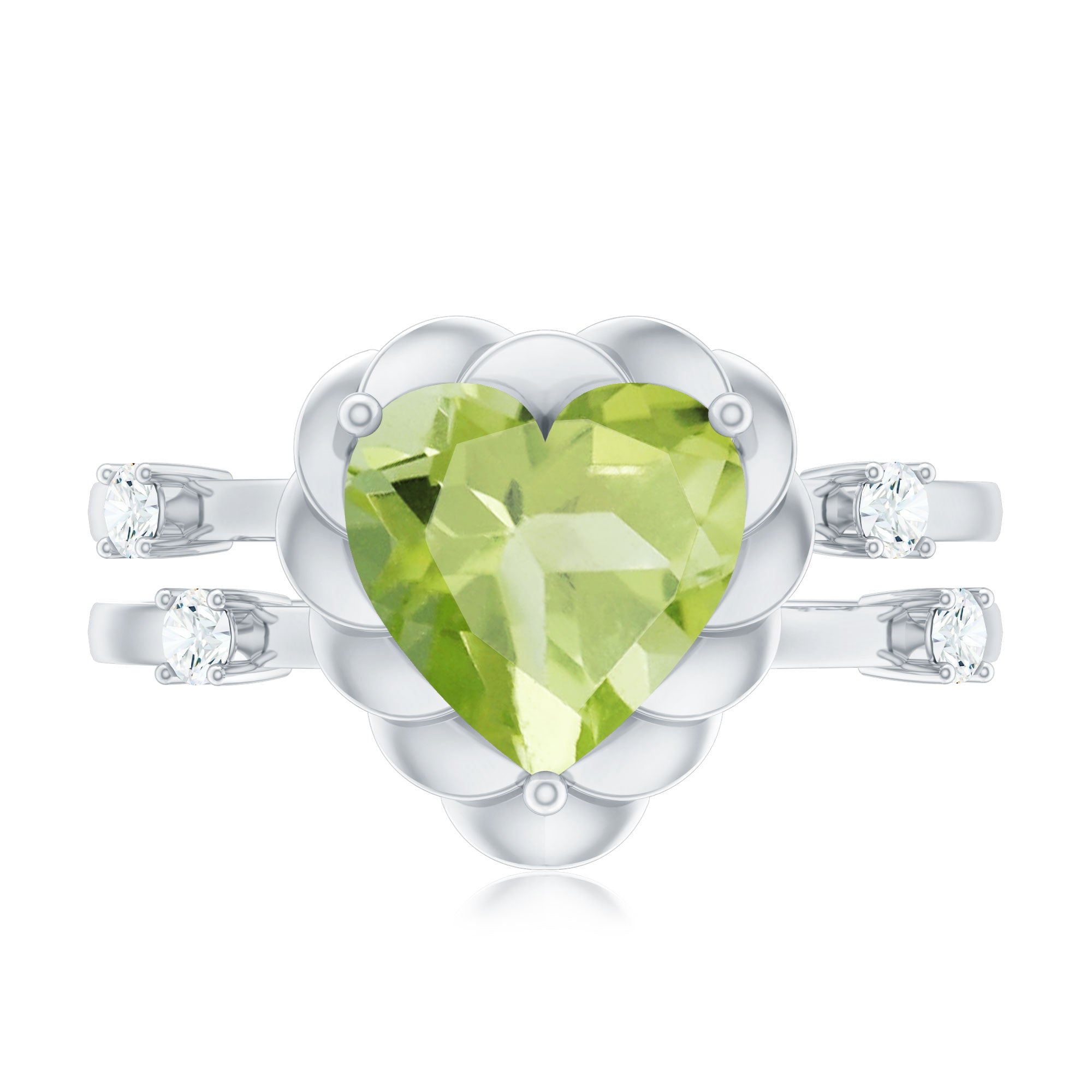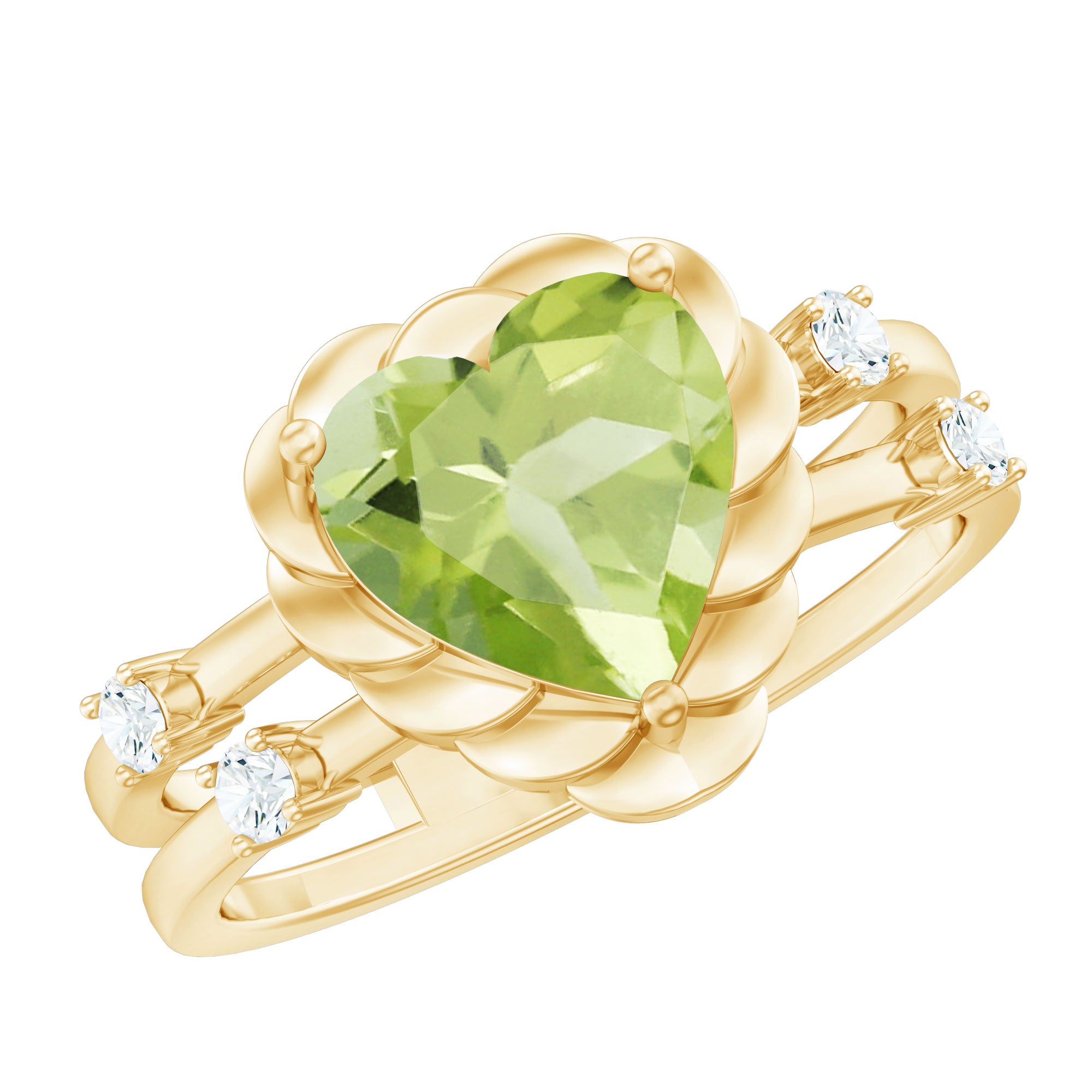 Heart Shape Peridot Solitaire Band Ring with Diamond Stones