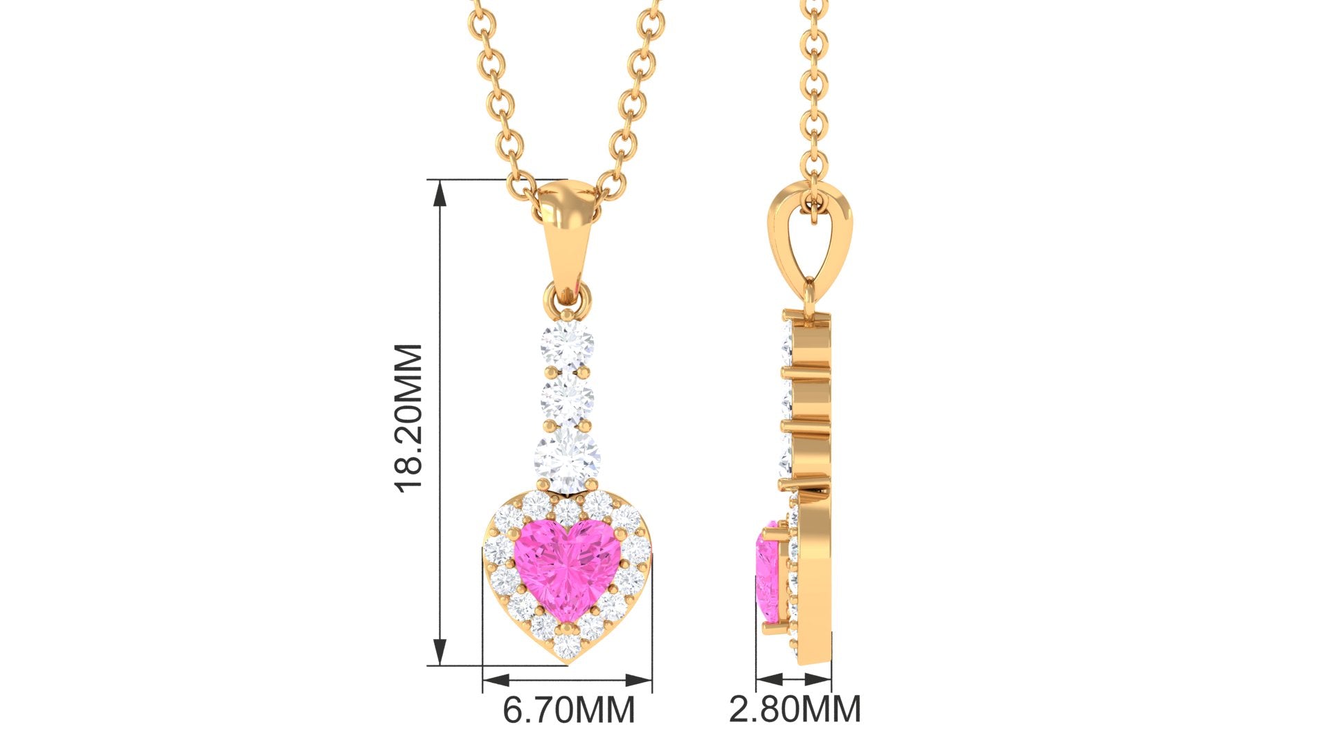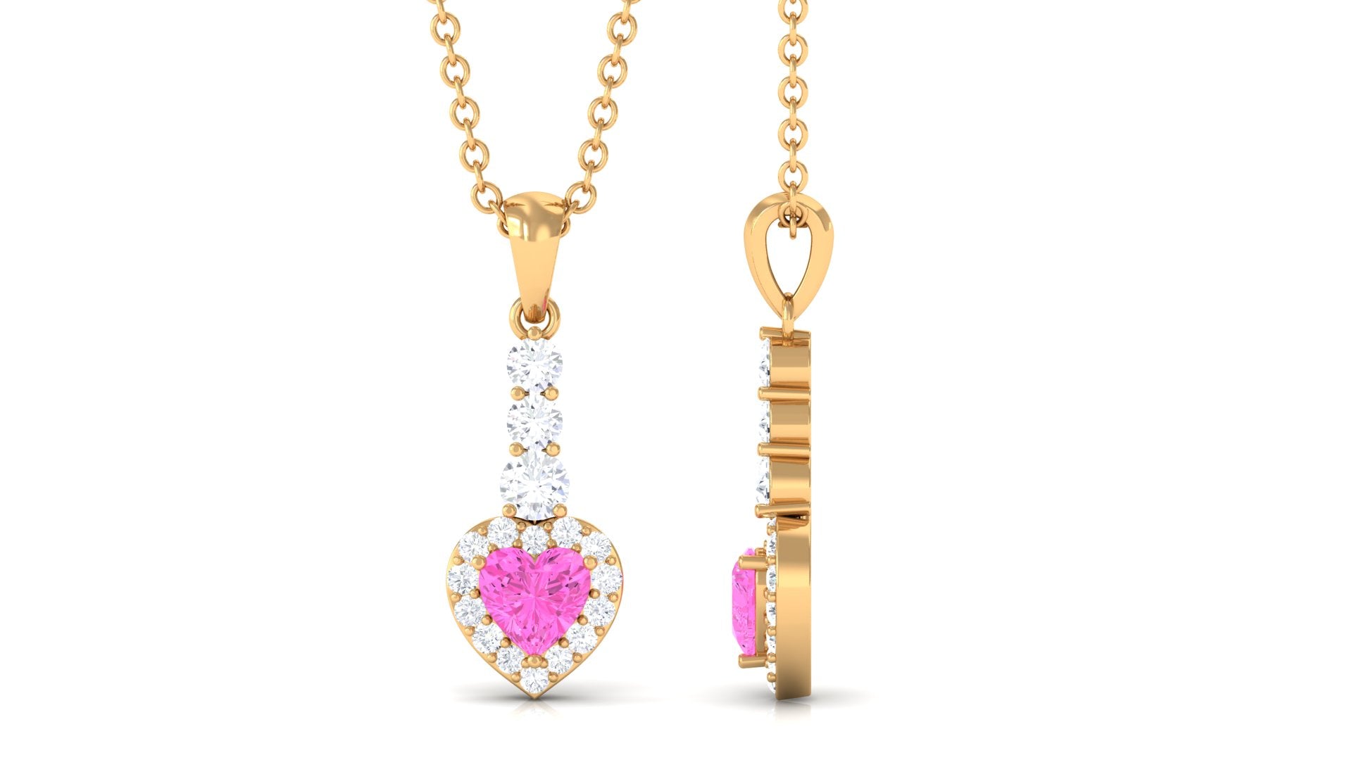 Heart Shape Pink Sapphire Drop Pendant with Diamond