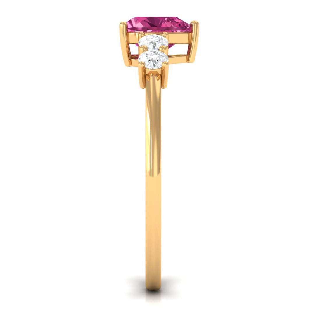 Heart Shape Pink Tourmaline Solitaire Promise Ring with Diamond