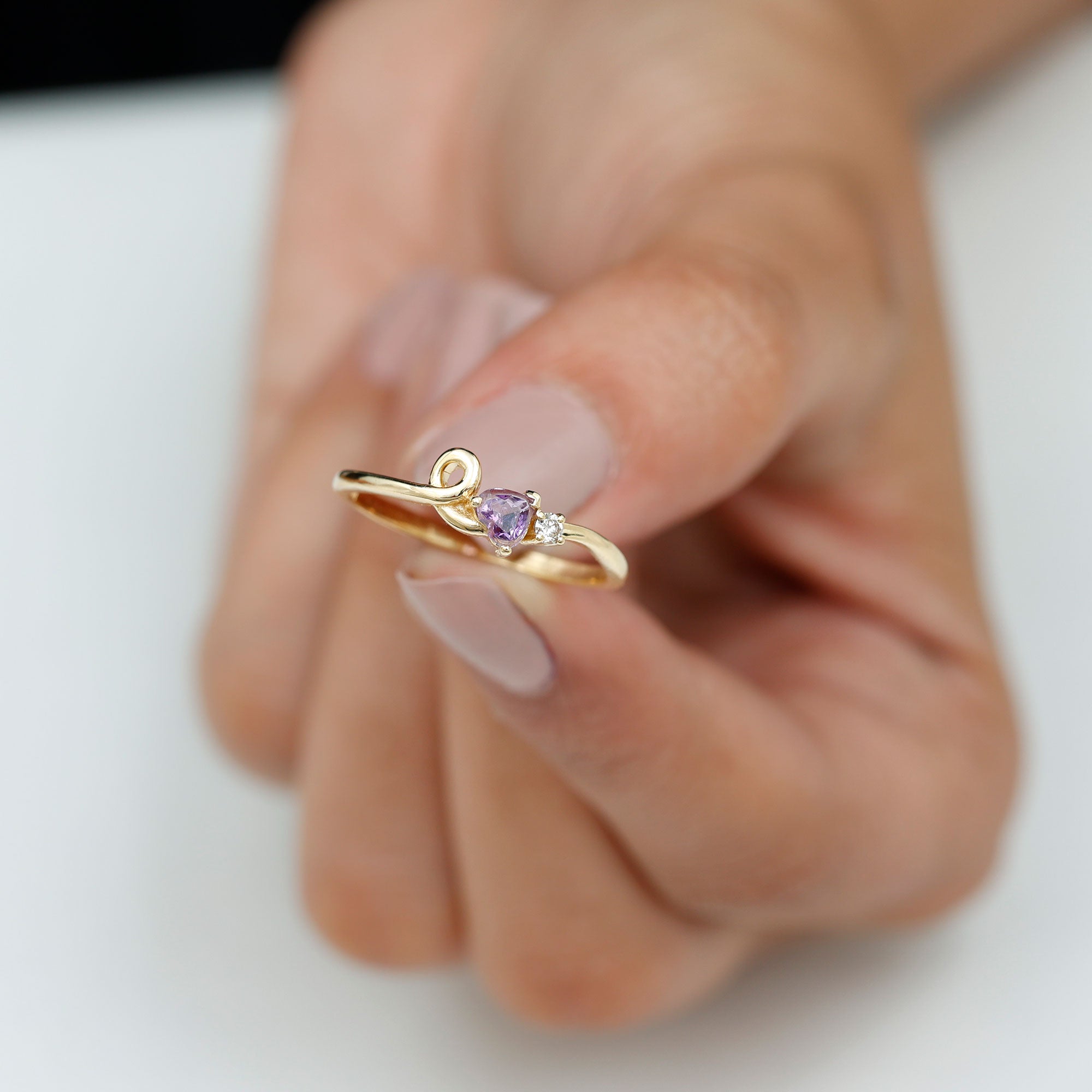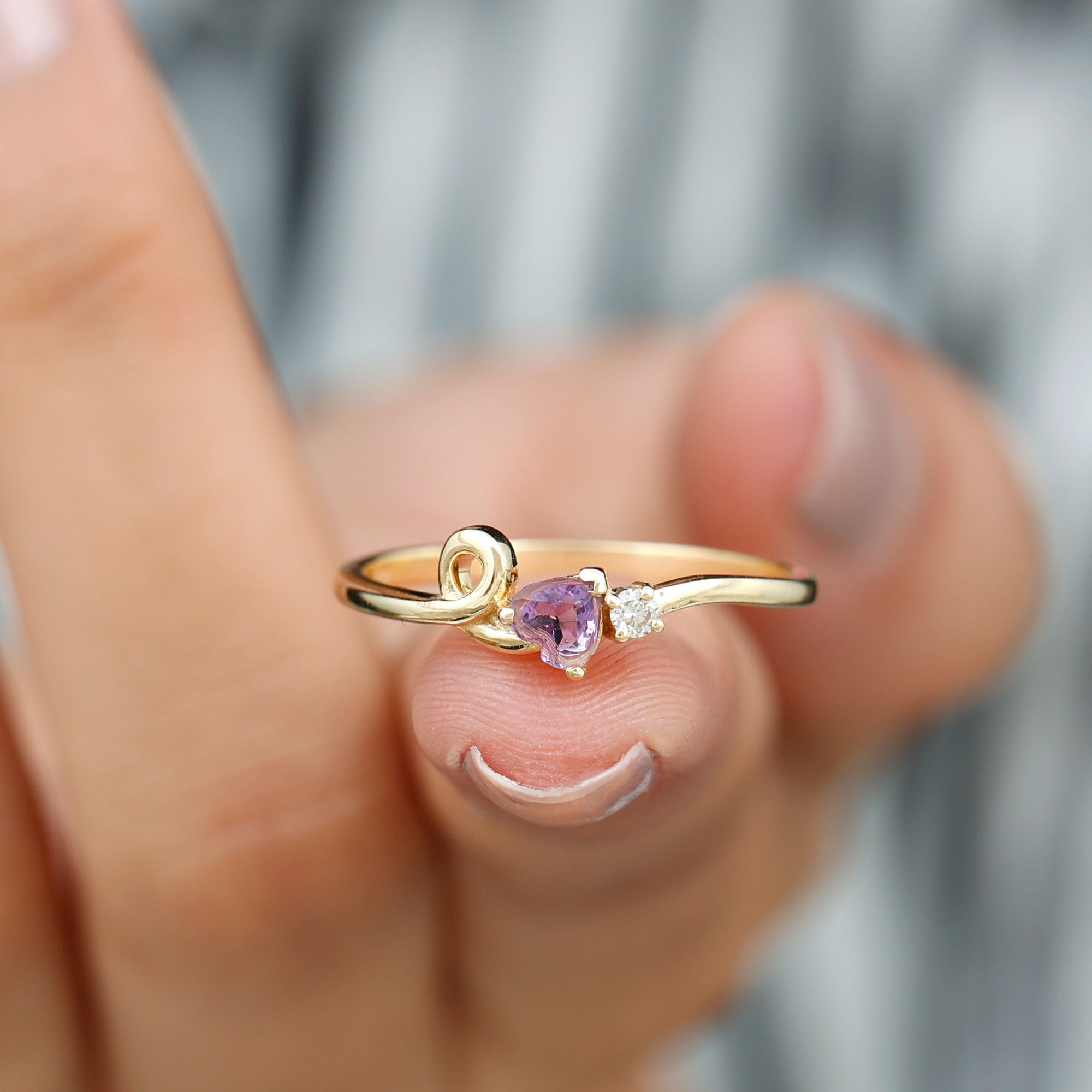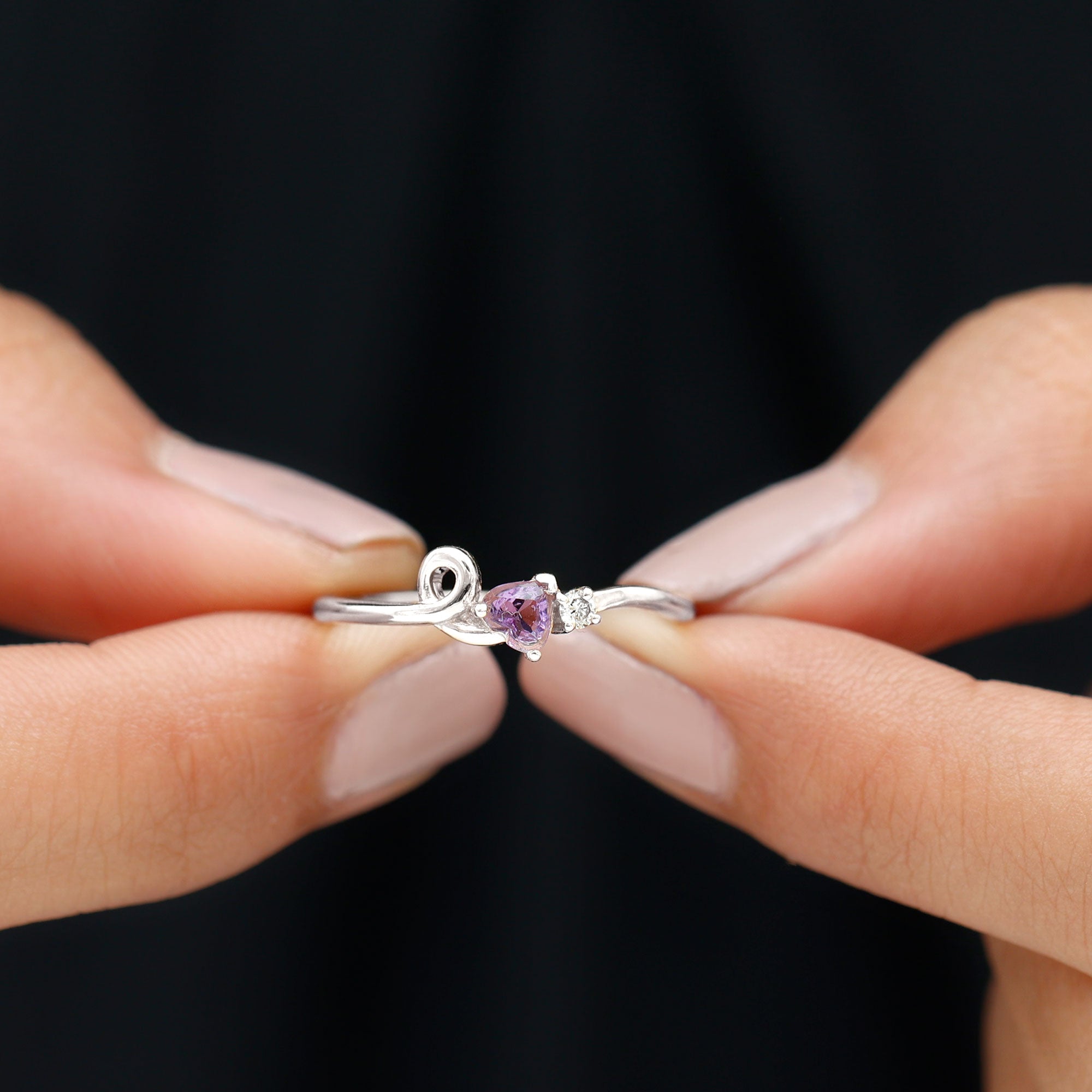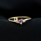 Heart Shape Real Amethyst and Diamond Twisted Promise Ring