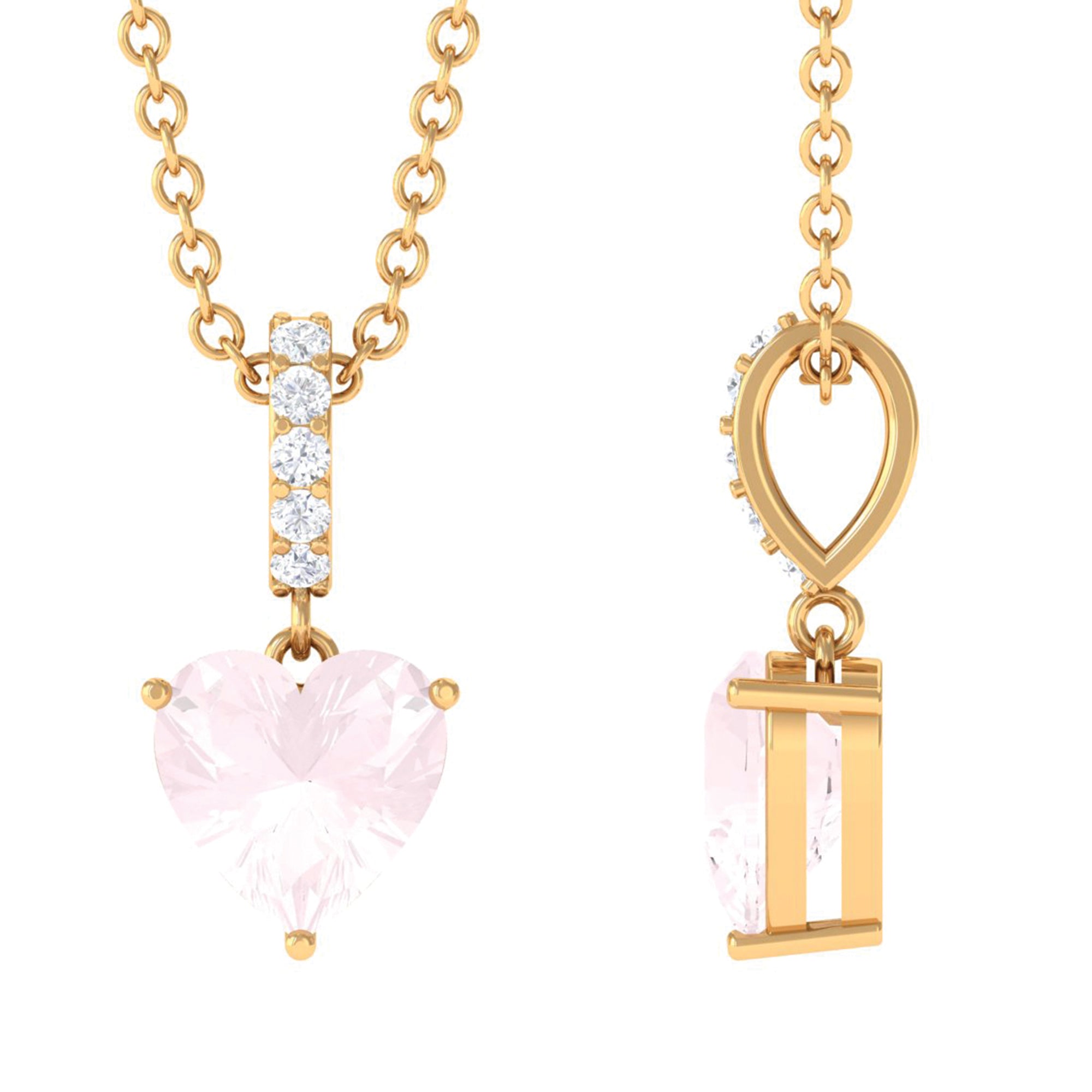 Heart Shape Rose Quartz and Diamond Solitaire Pendant