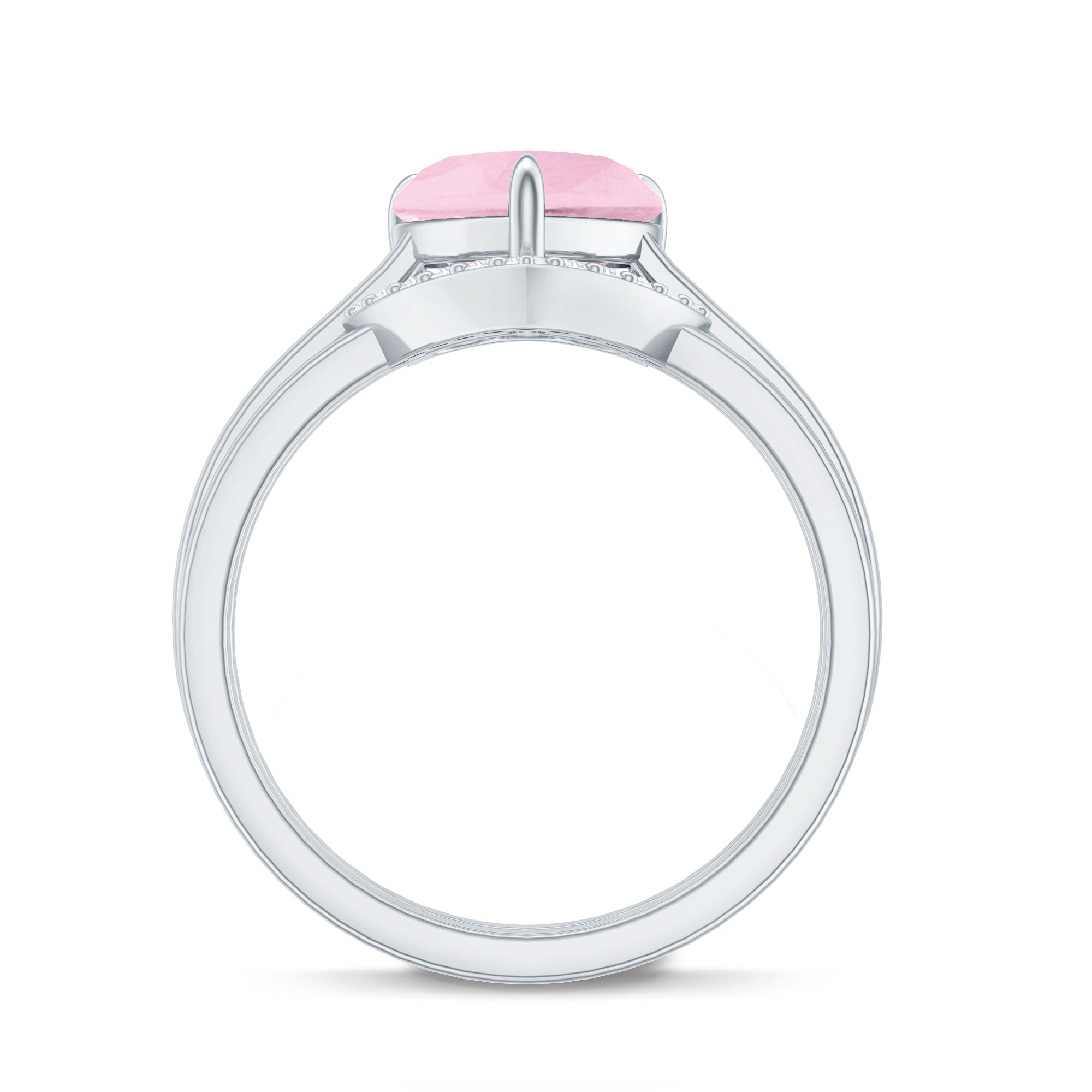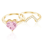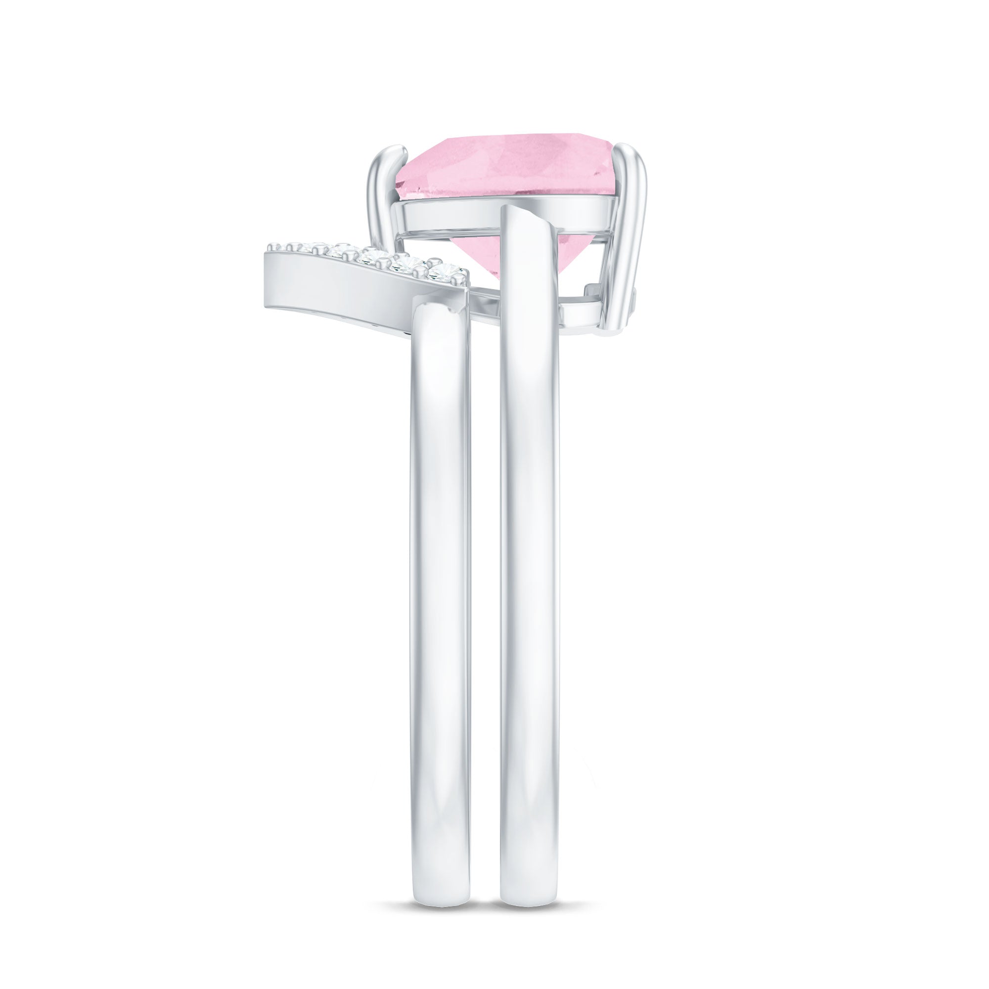 Heart Shape Rose Quartz Wedding Ring Set with Diamond