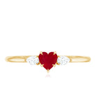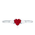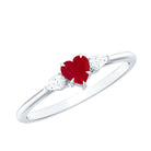 Heart Shape Ruby and Diamond 3 Stone Promise Ring