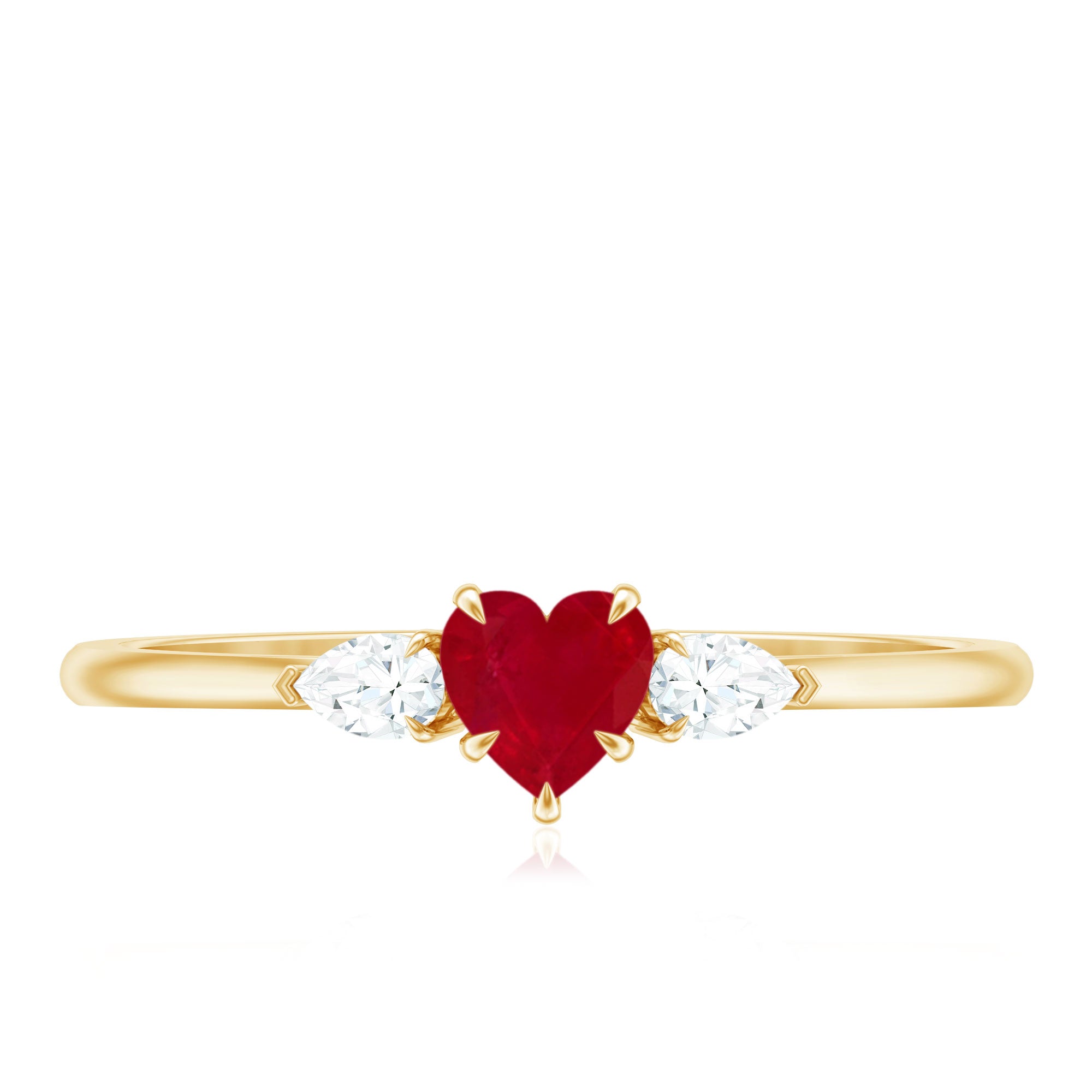 Steal the spotlight of any event with this beautiful Ruby Ring showcasing a Heart Shape Ruby in the center secured by Claw Setting flanked by Pear Shape Diamond. Create a romantic moment by presenting this Ruby Heart Ring on a special day and make her dance with happiness.
