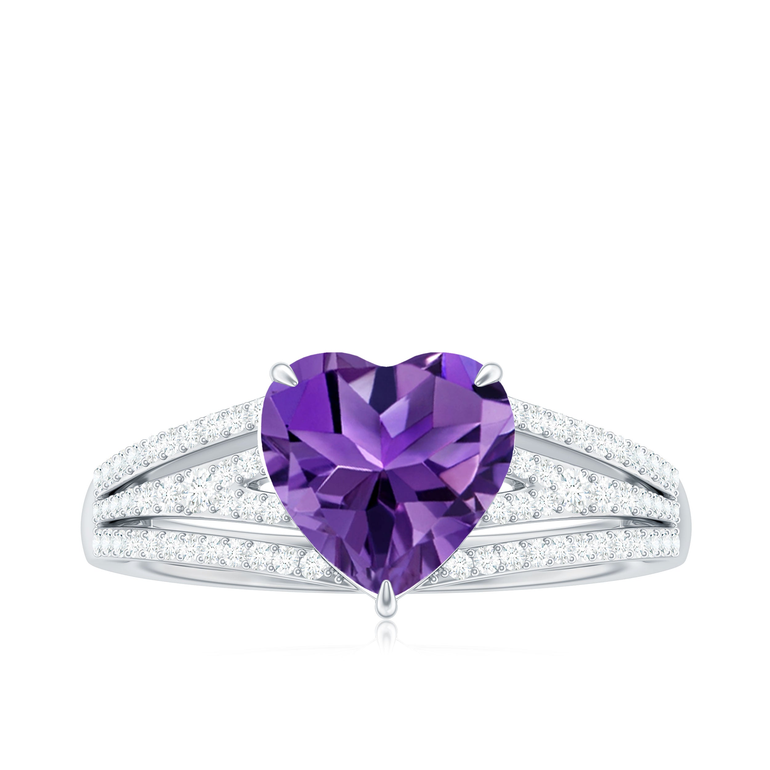 Heart Shape Solitaire Amethyst Designer Engagement Ring with Diamond