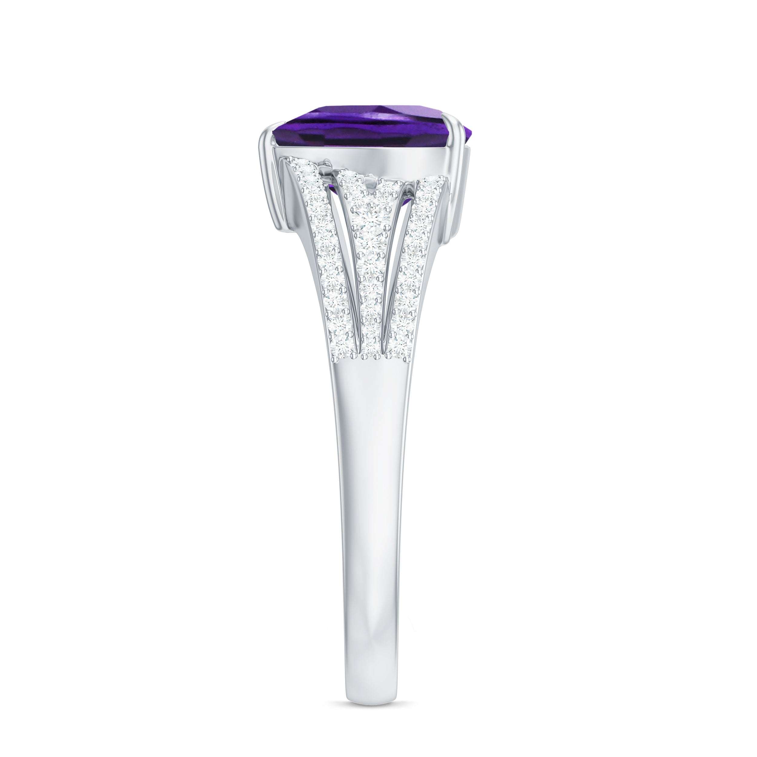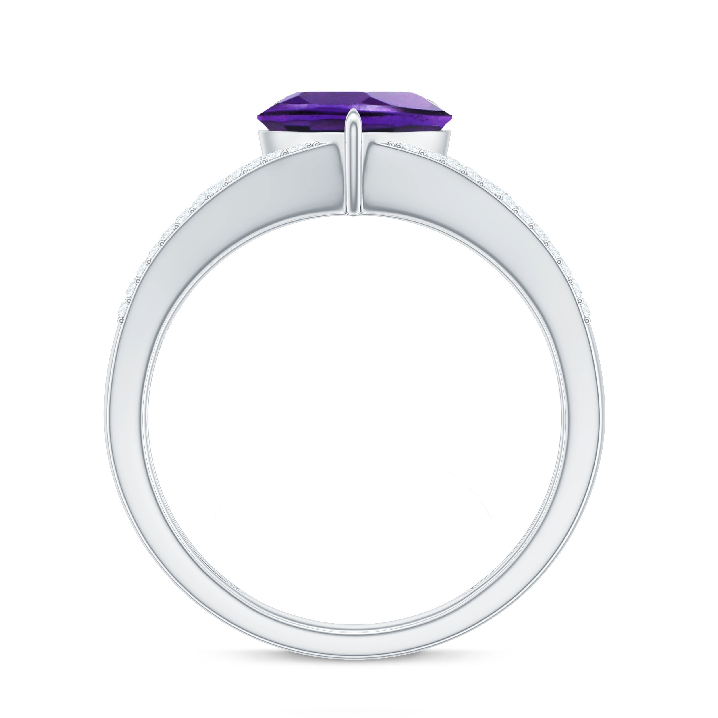 Heart Shape Solitaire Amethyst Designer Engagement Ring with Diamond