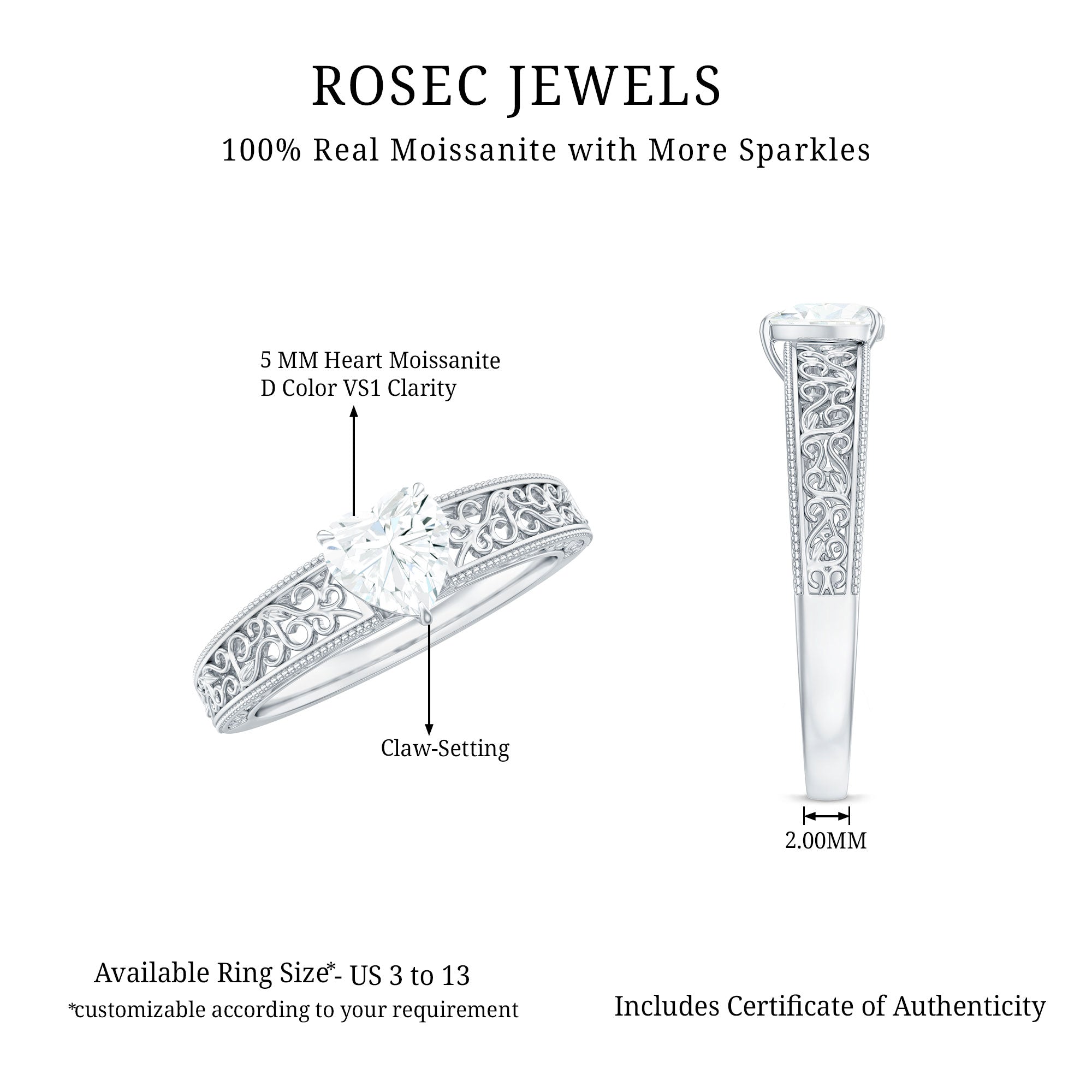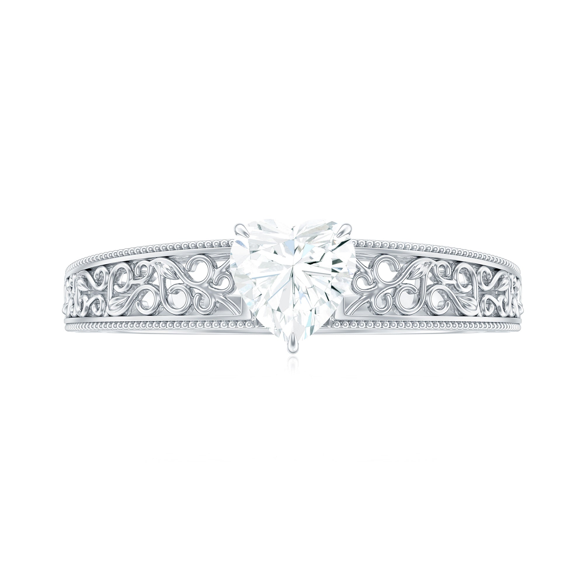 Heart Shape Solitaire Moissanite Filigree Engagement Ring