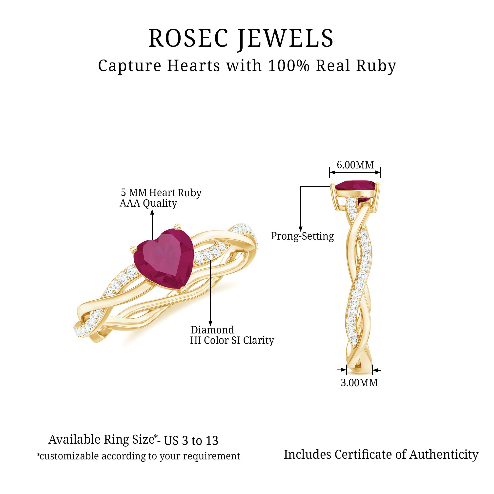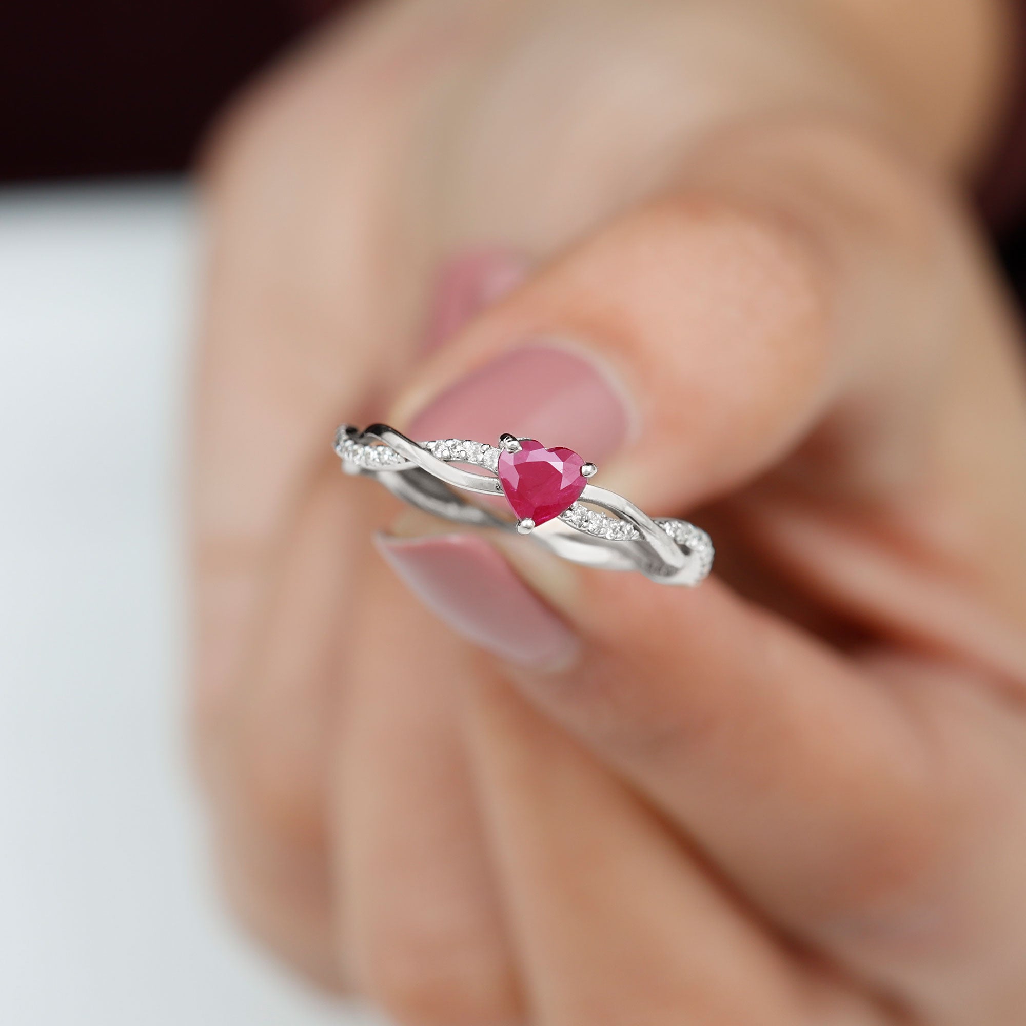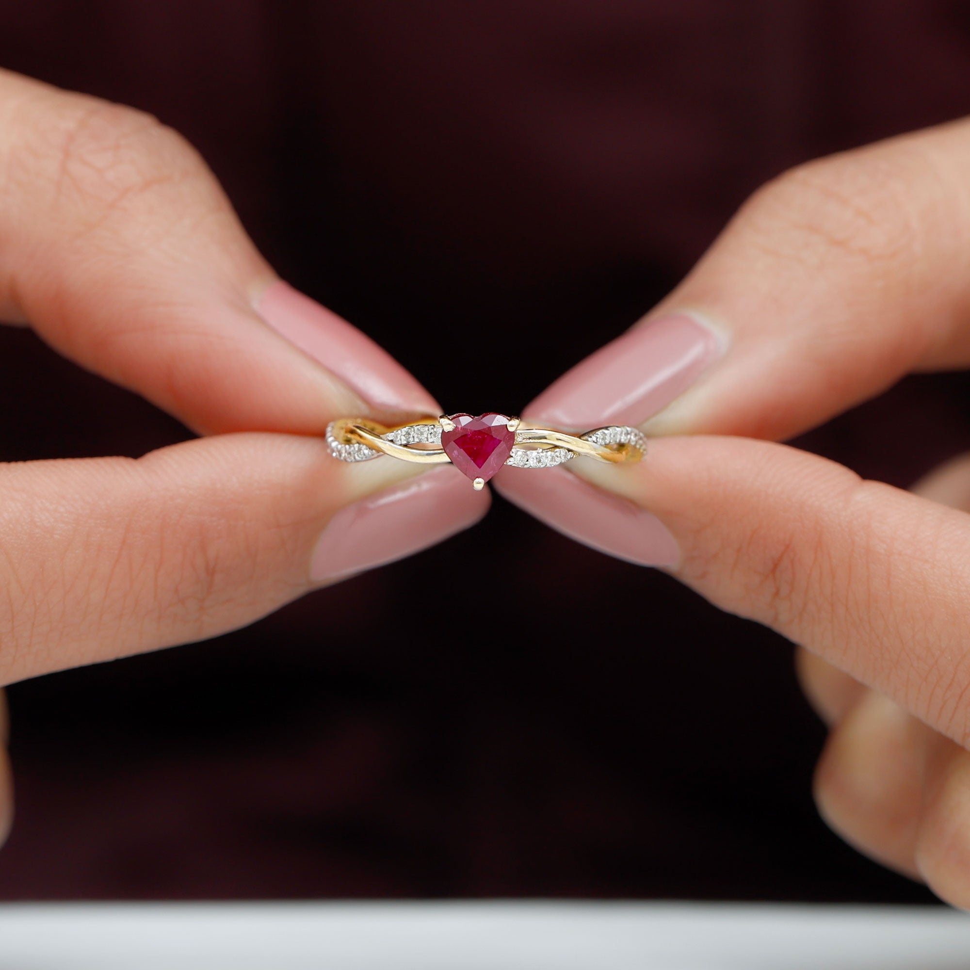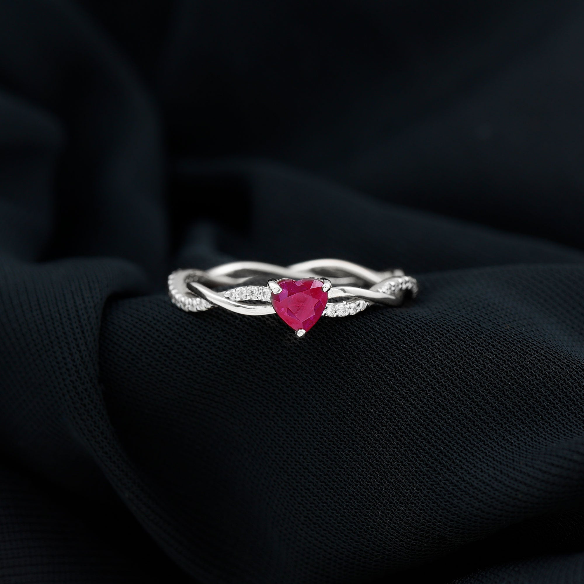Heart Shape Solitaire Ruby and Diamond Braided Promise Ring
