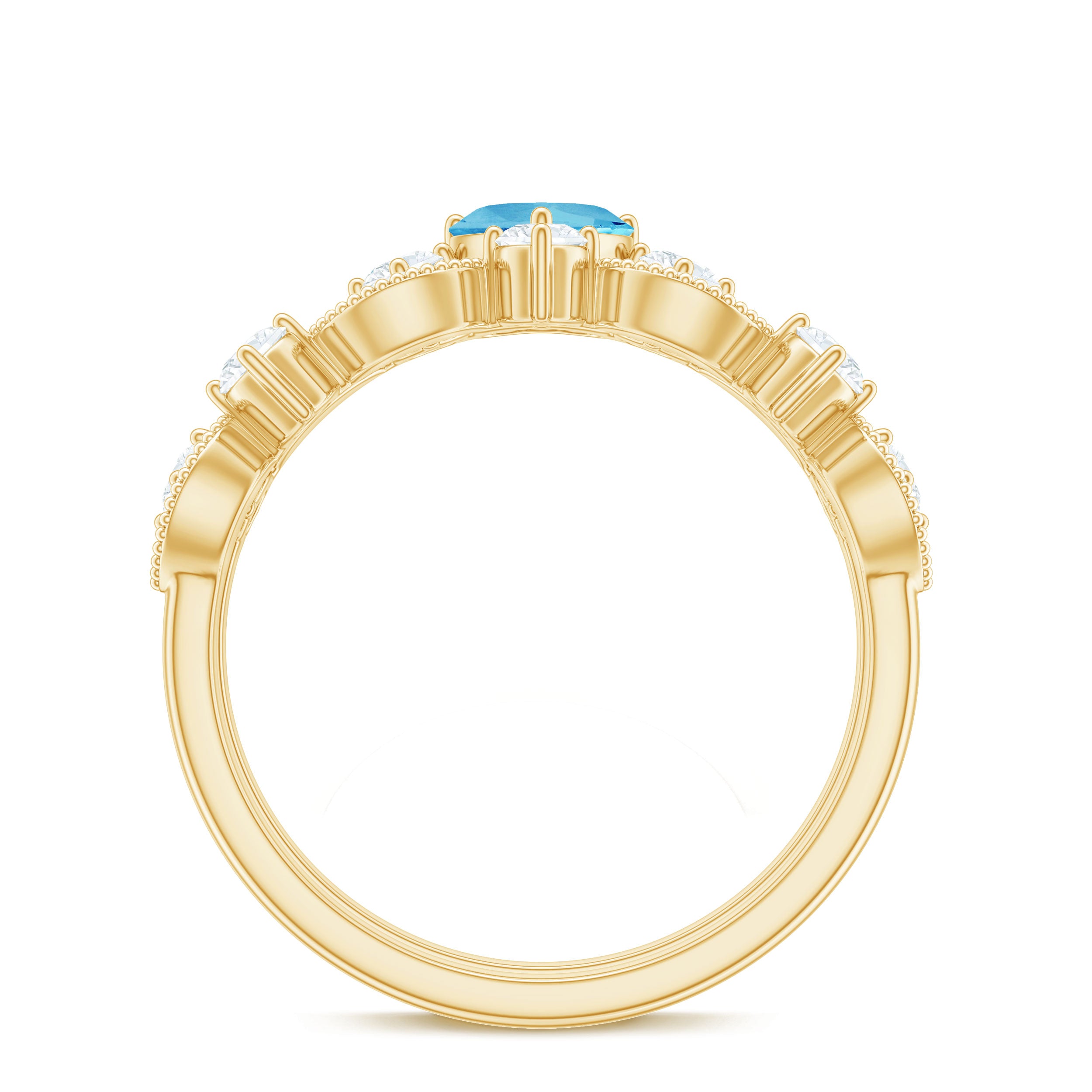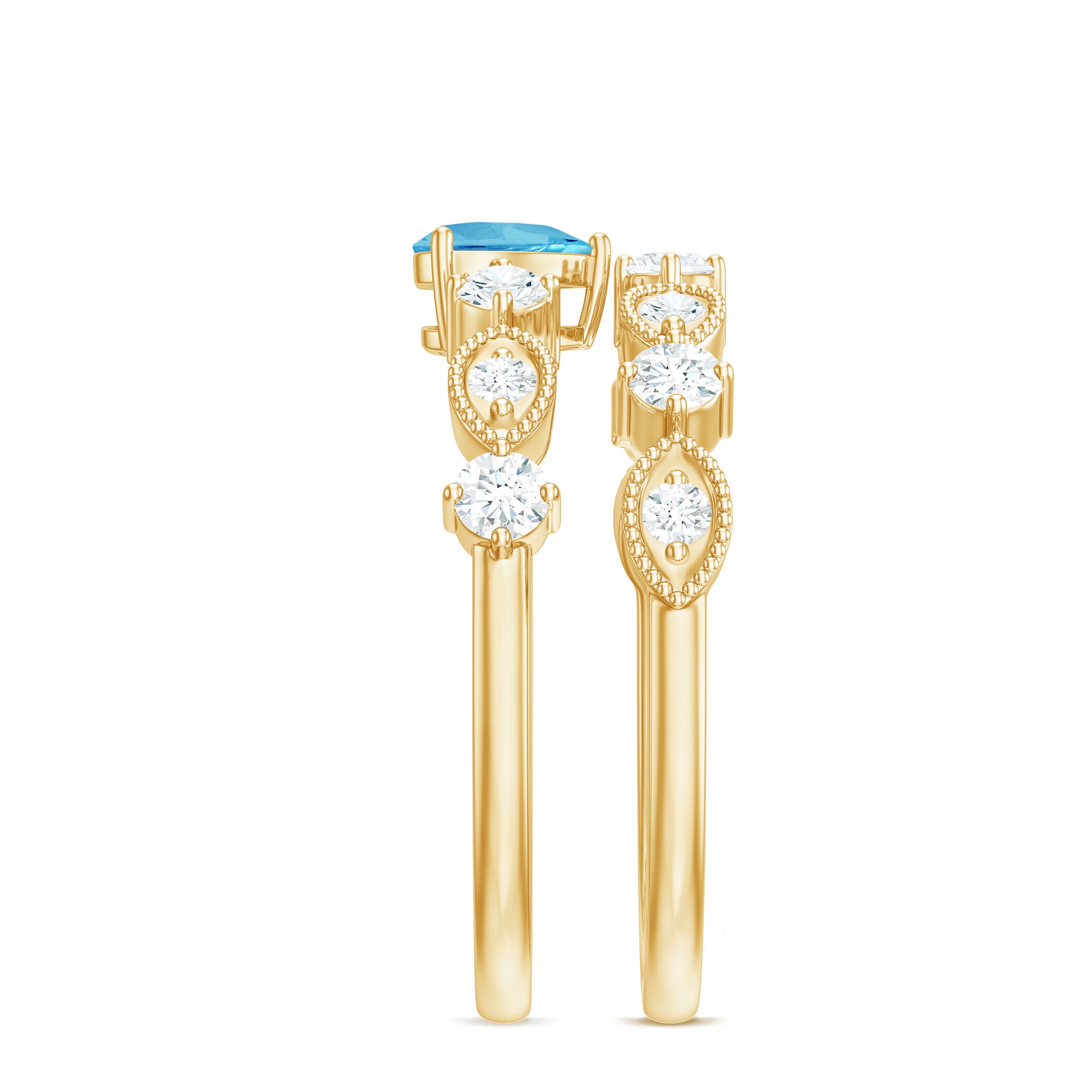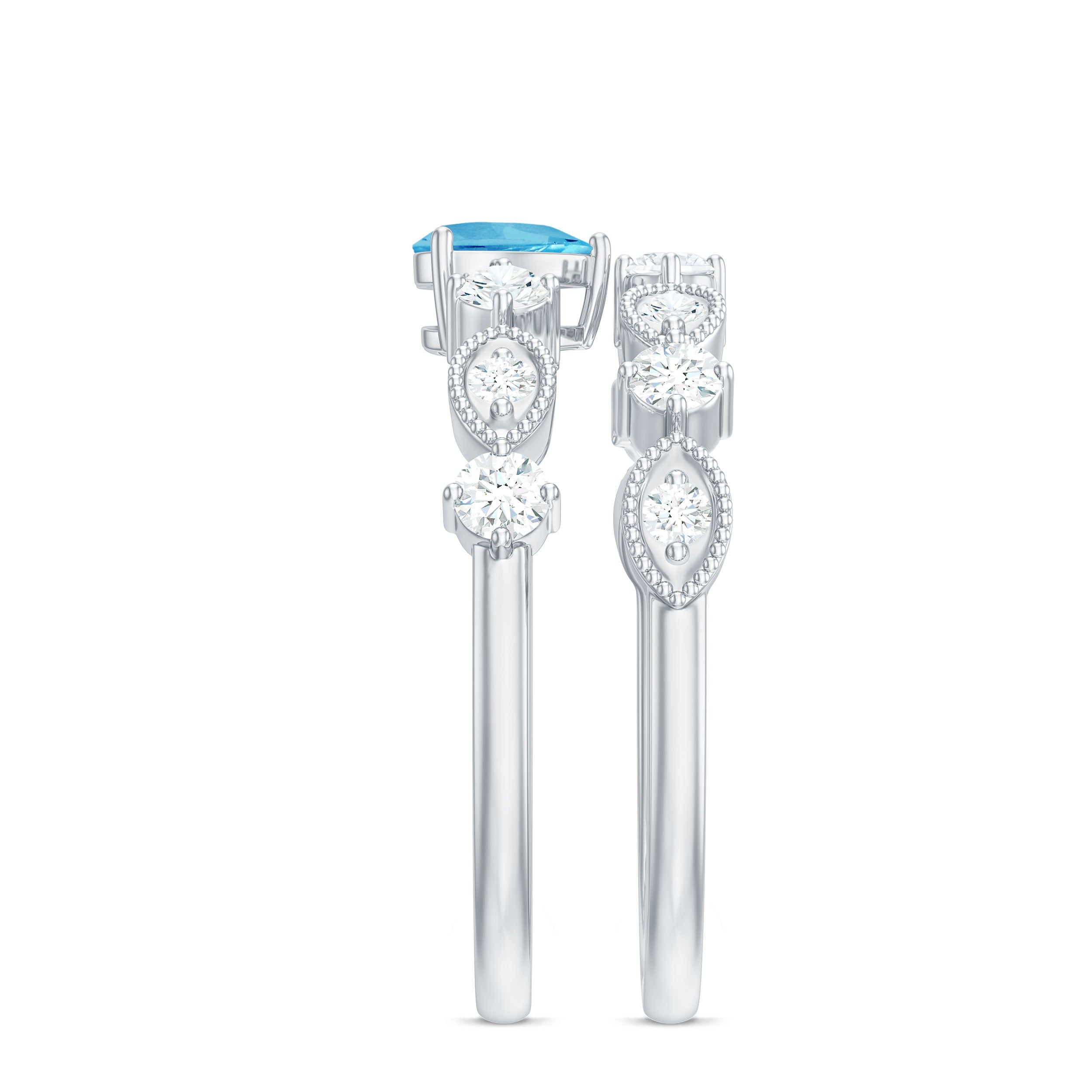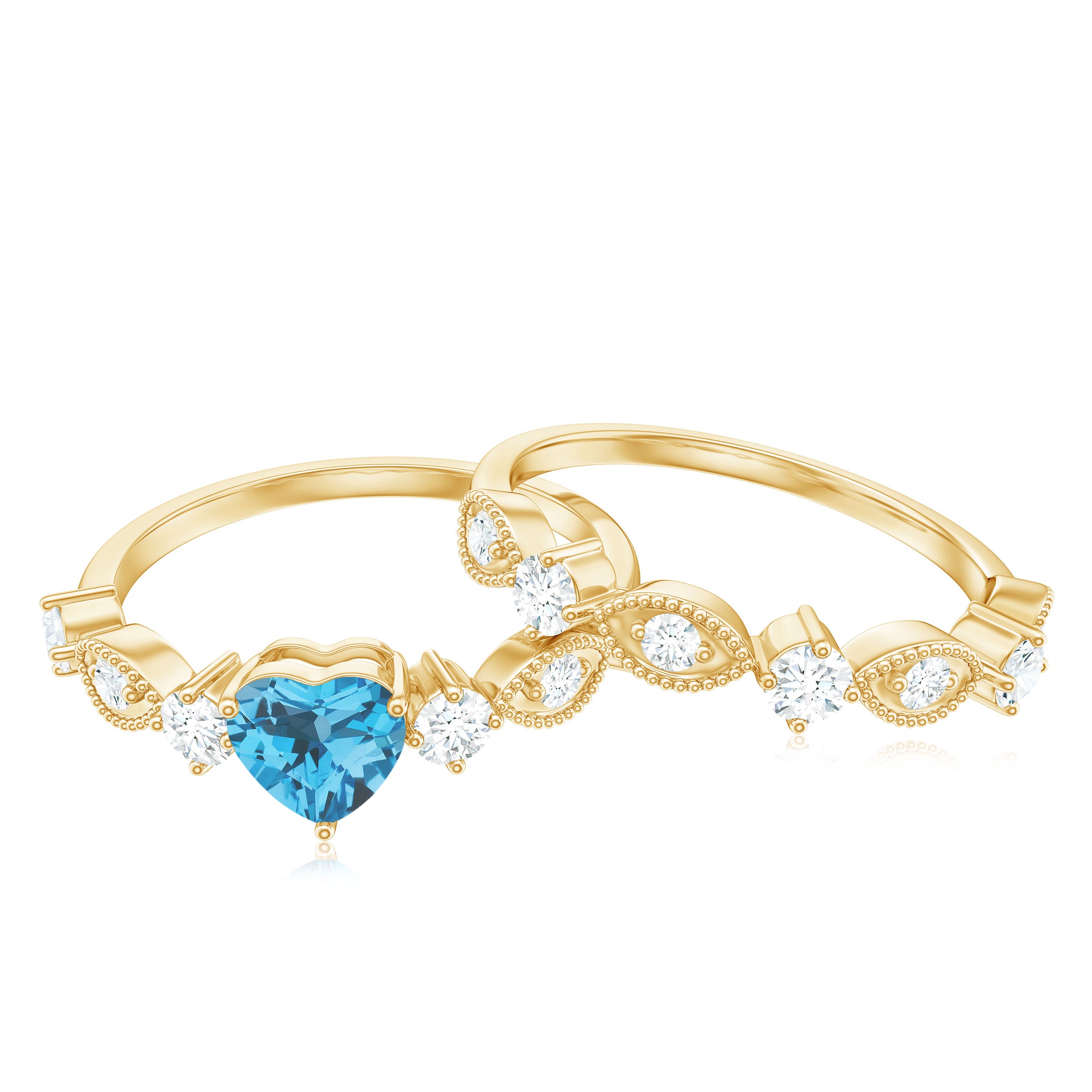 Stack your love story with this Heart Shape Swiss Blue Topaz Ring Set with Moissanite, a versatile and dazzling combination for a touch of romance.