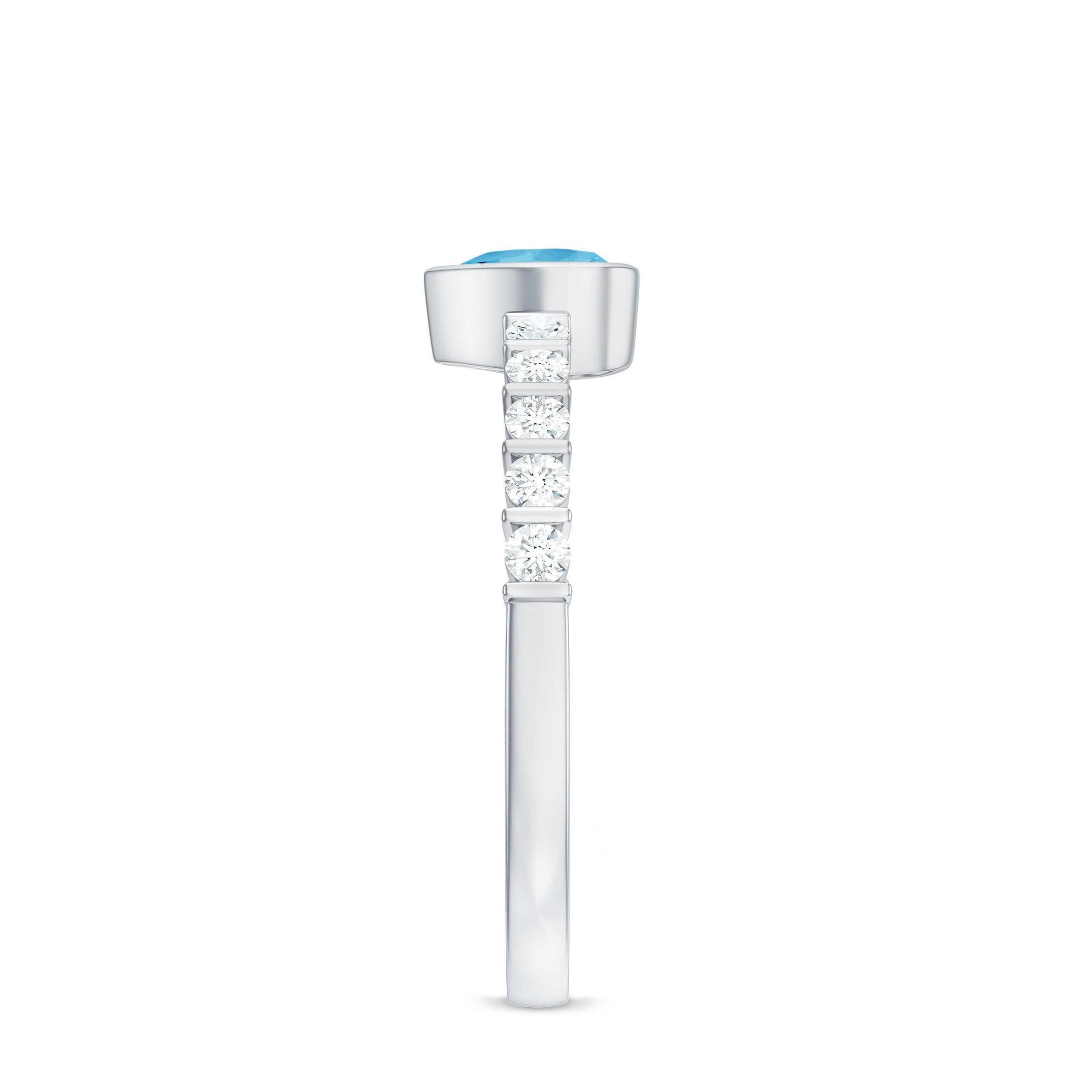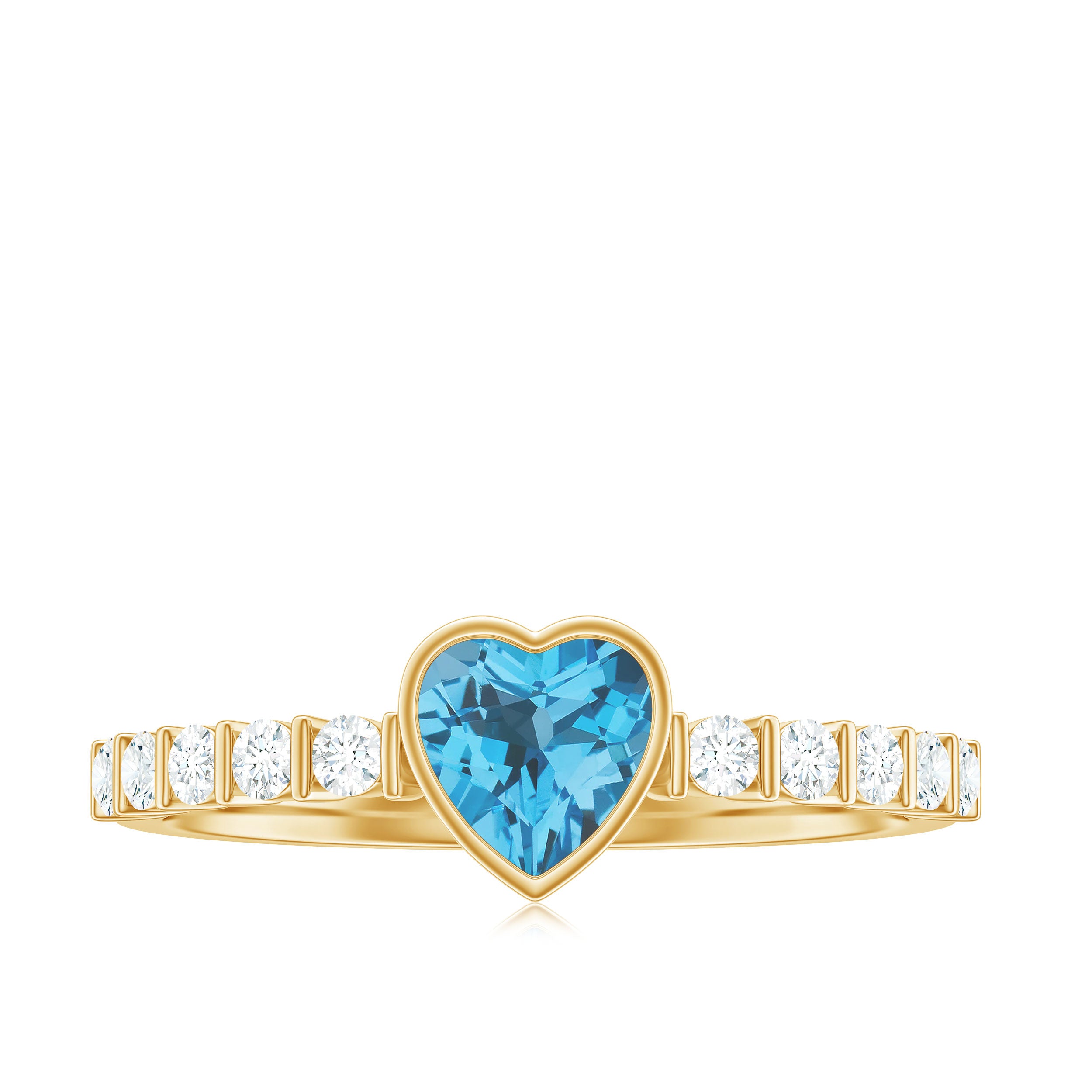 Heart Shape Swiss Blue Topaz Engagement Ring with Diamond in Bezel Setting