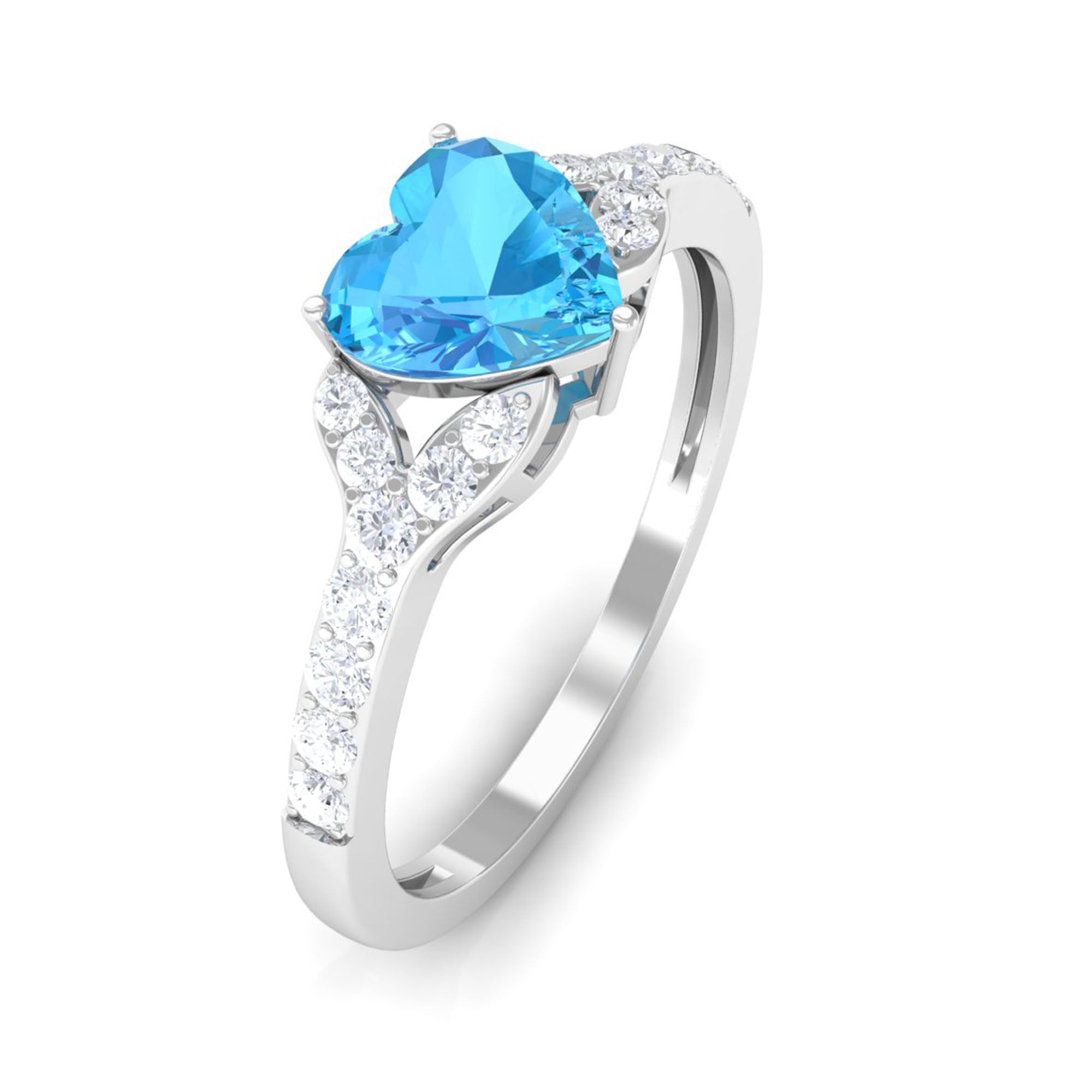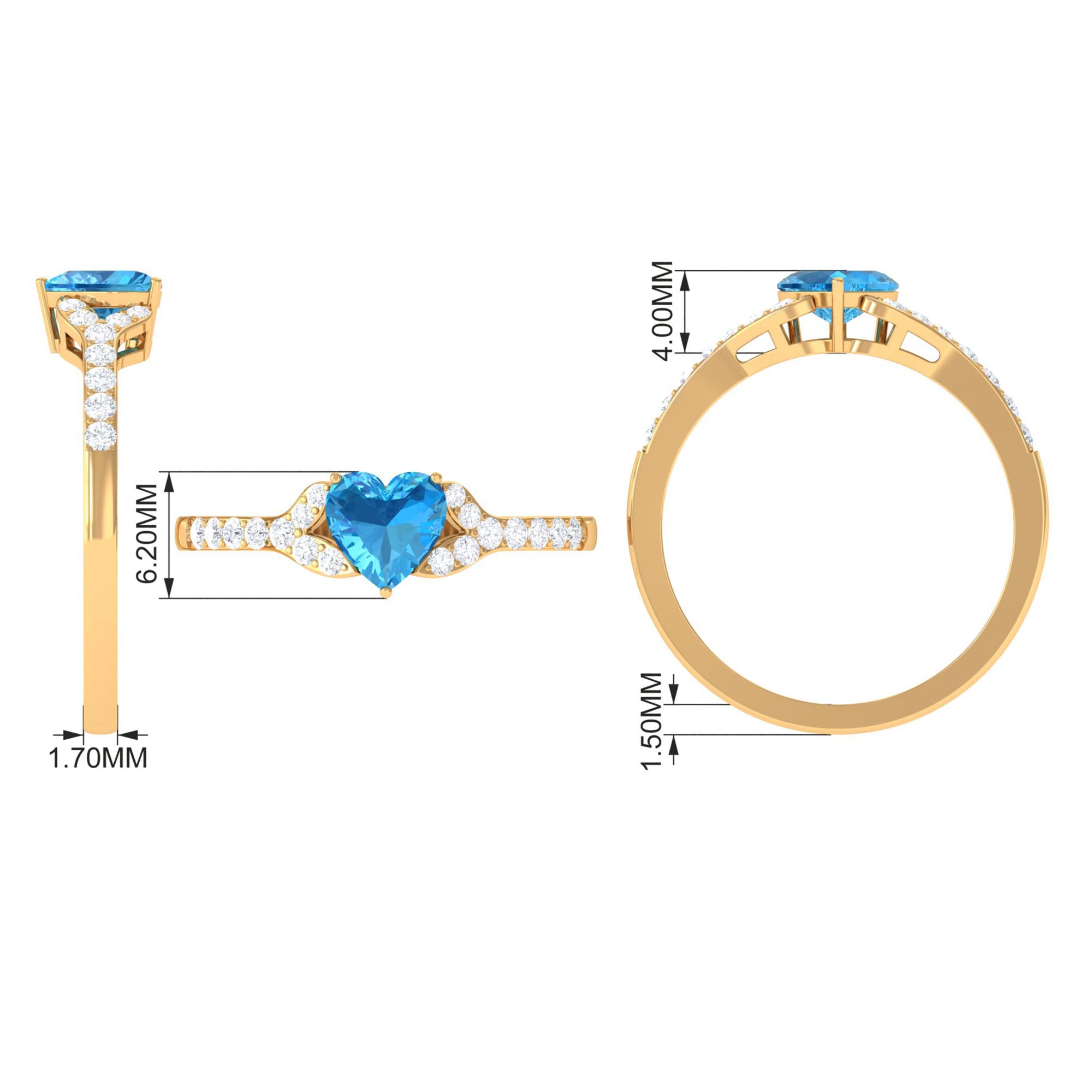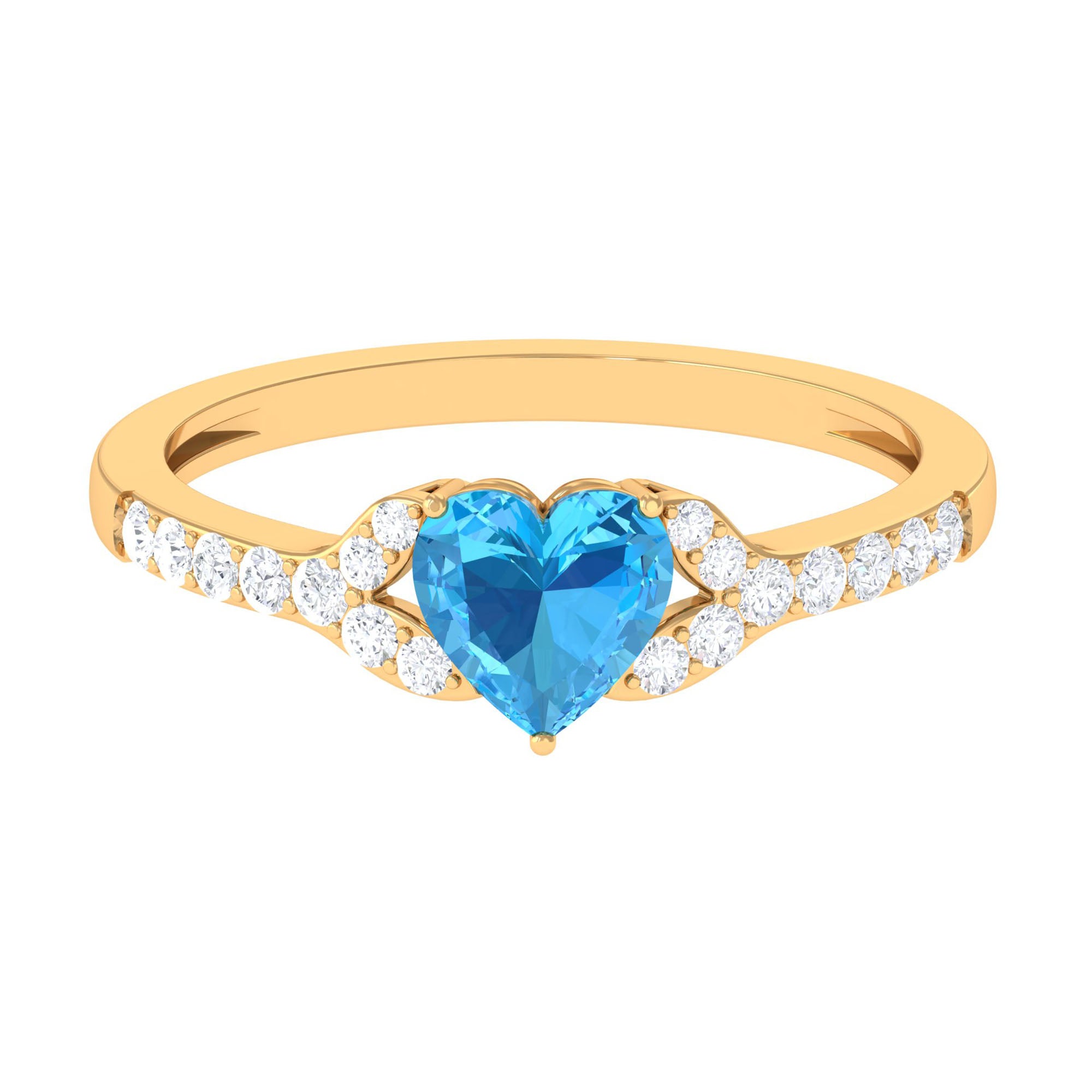 Heart Shape Swiss Blue Topaz Minimal Engagement Ring with Diamond