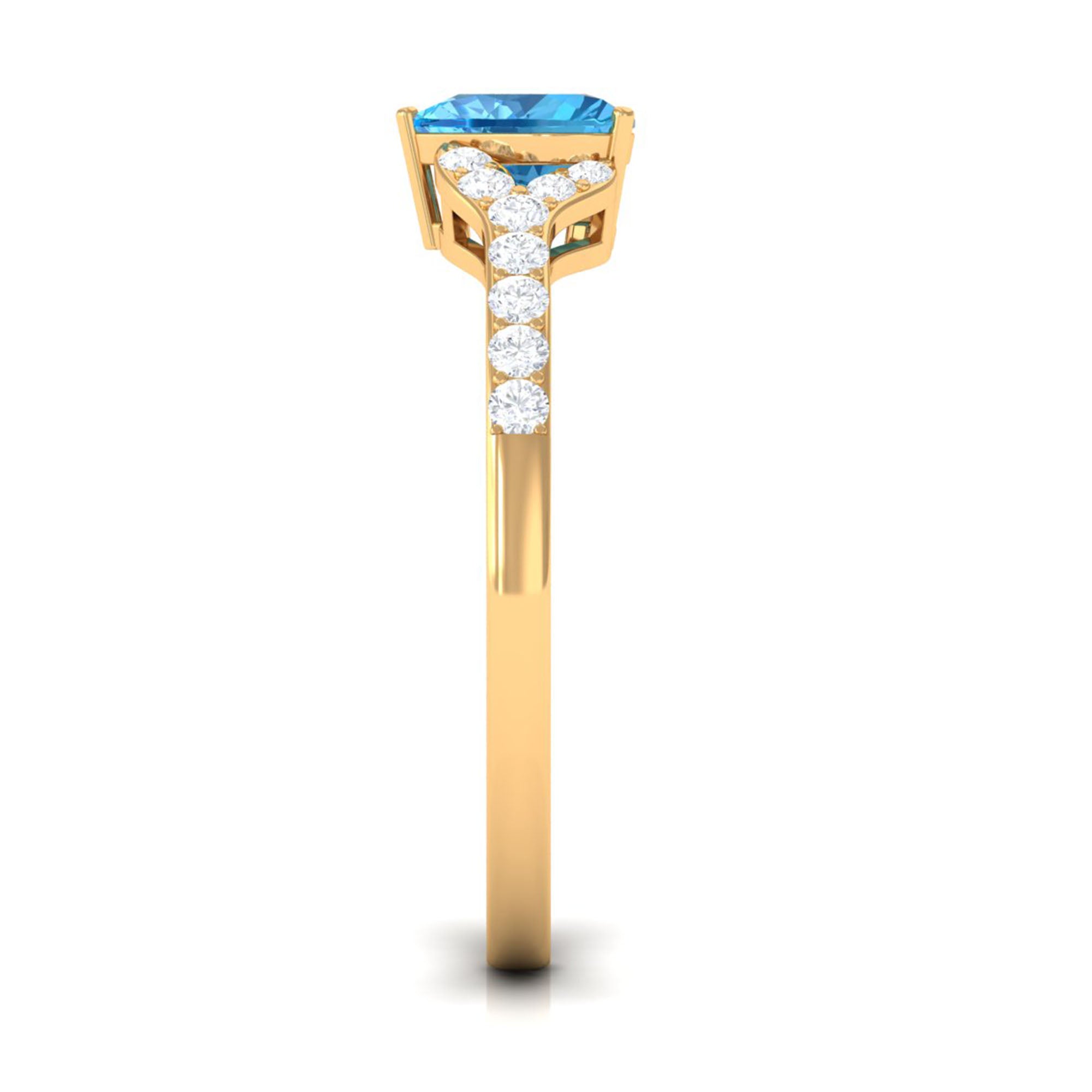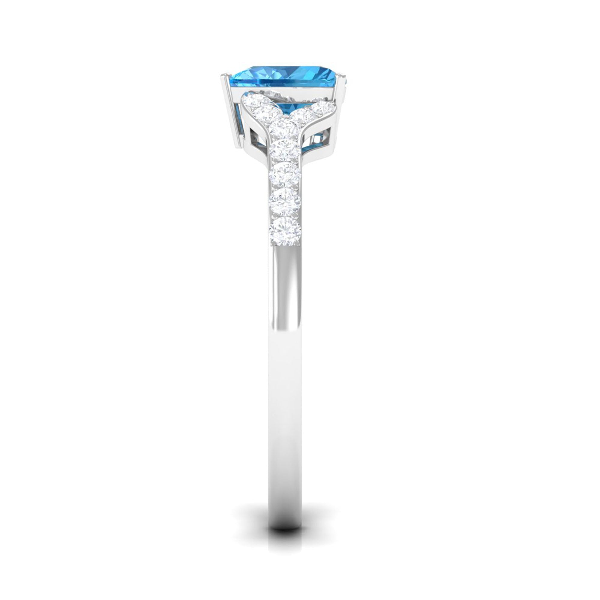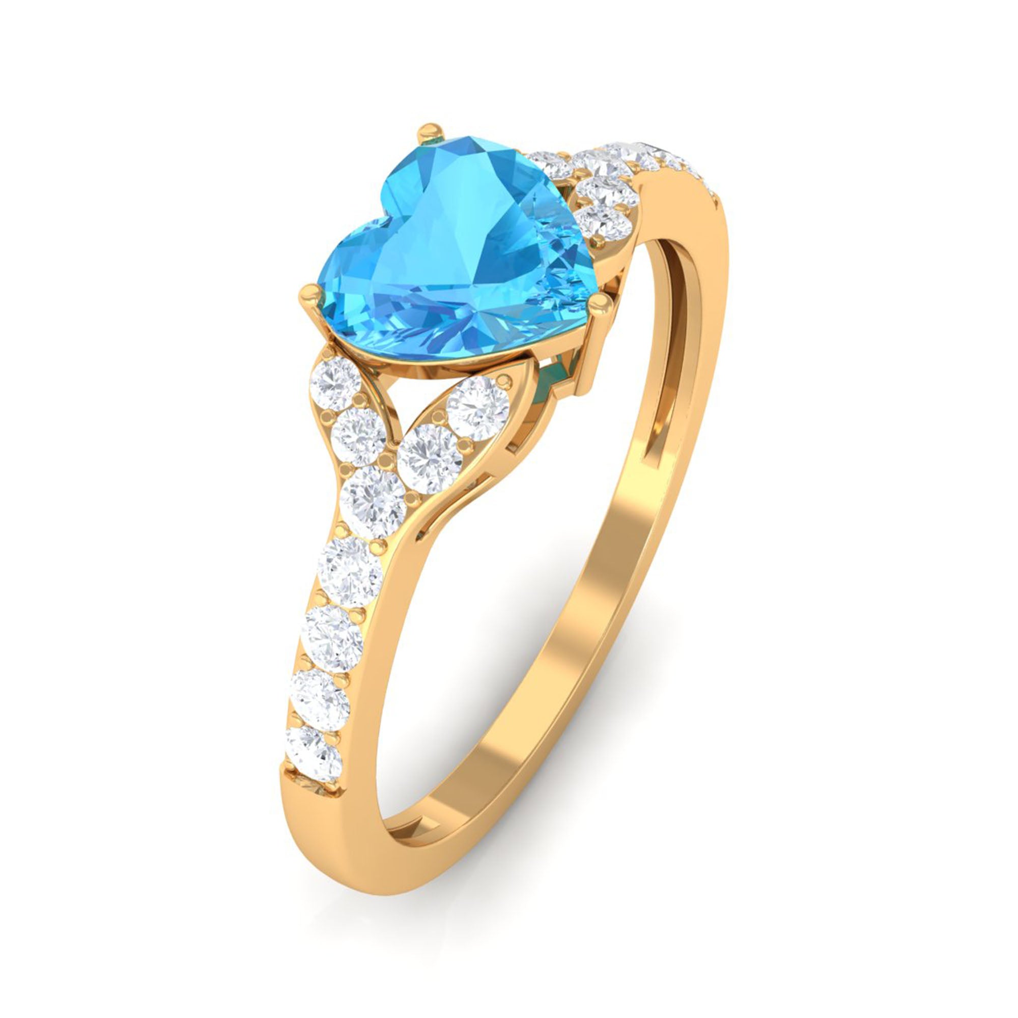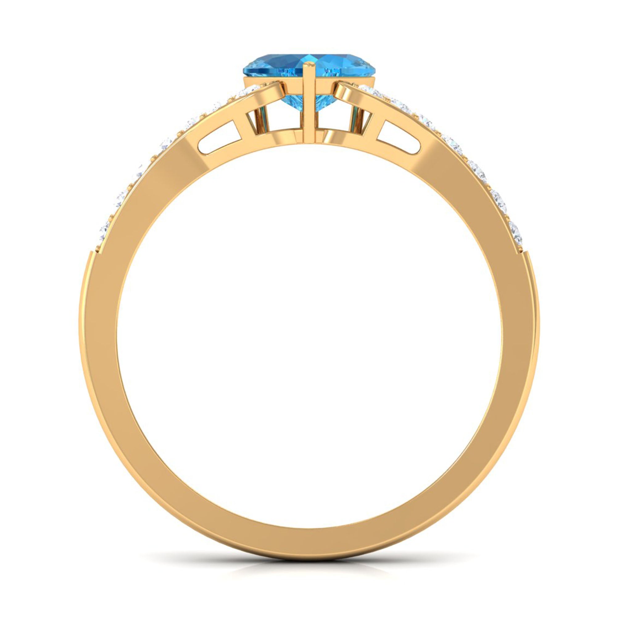 Heart Shape Swiss Blue Topaz Minimal Engagement Ring with Diamond