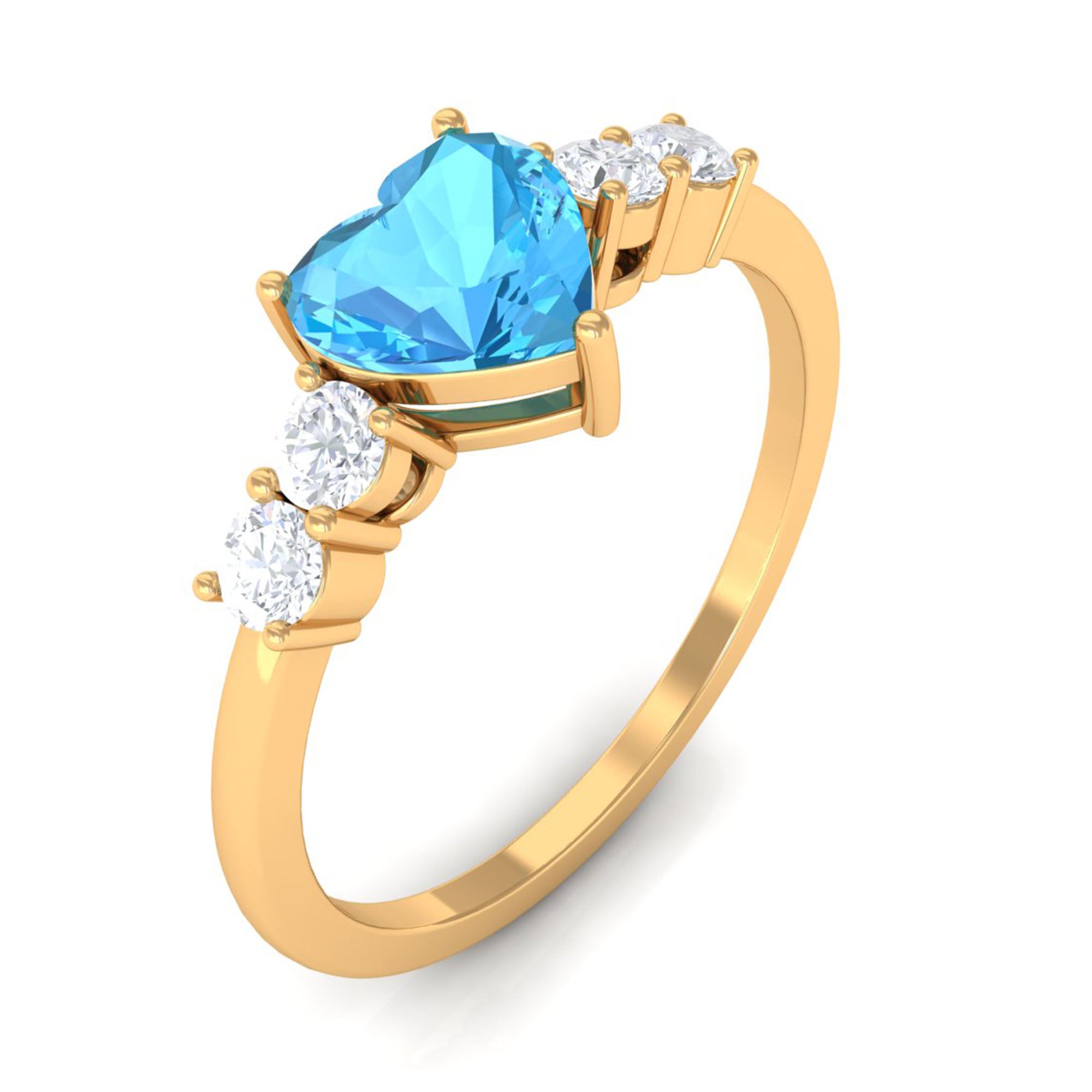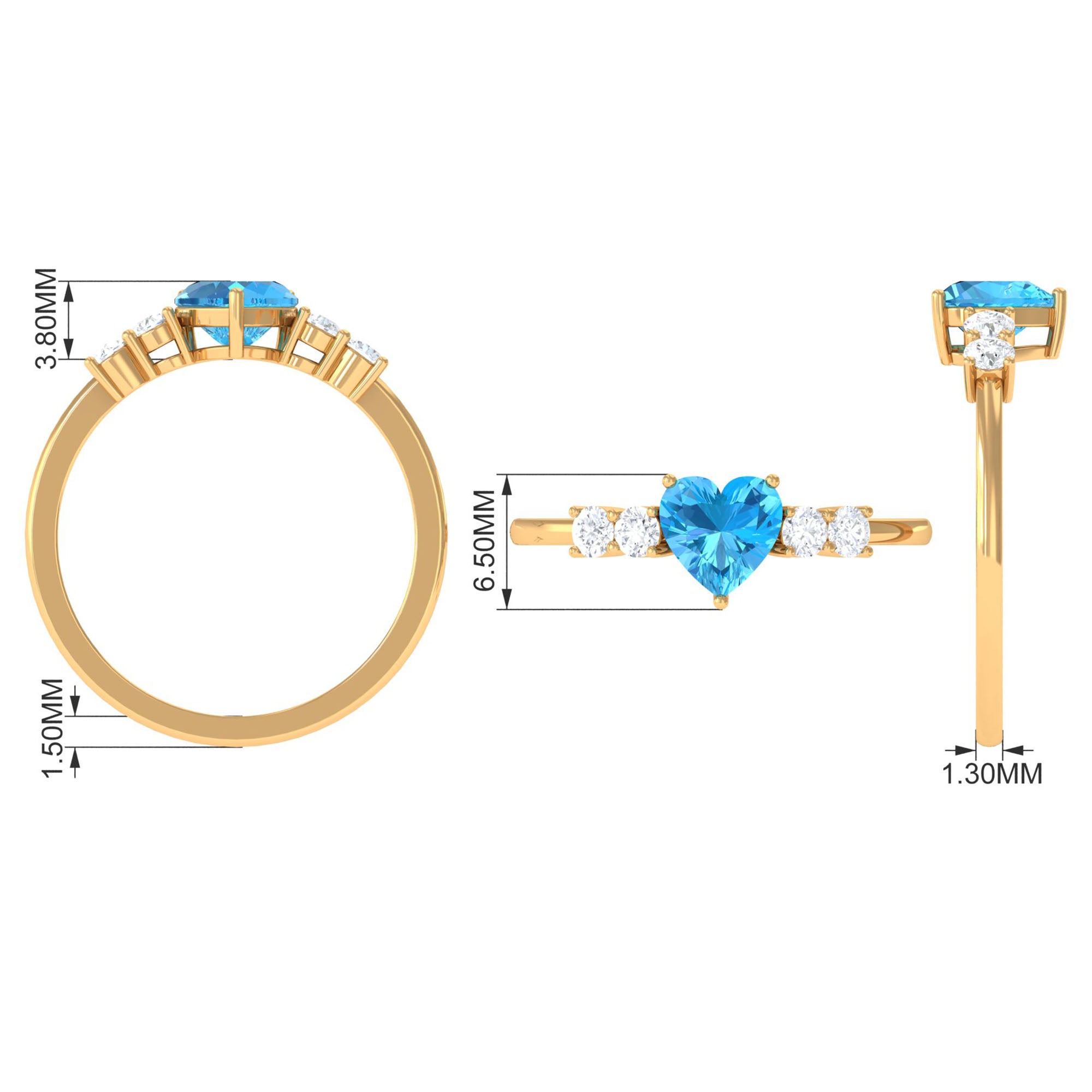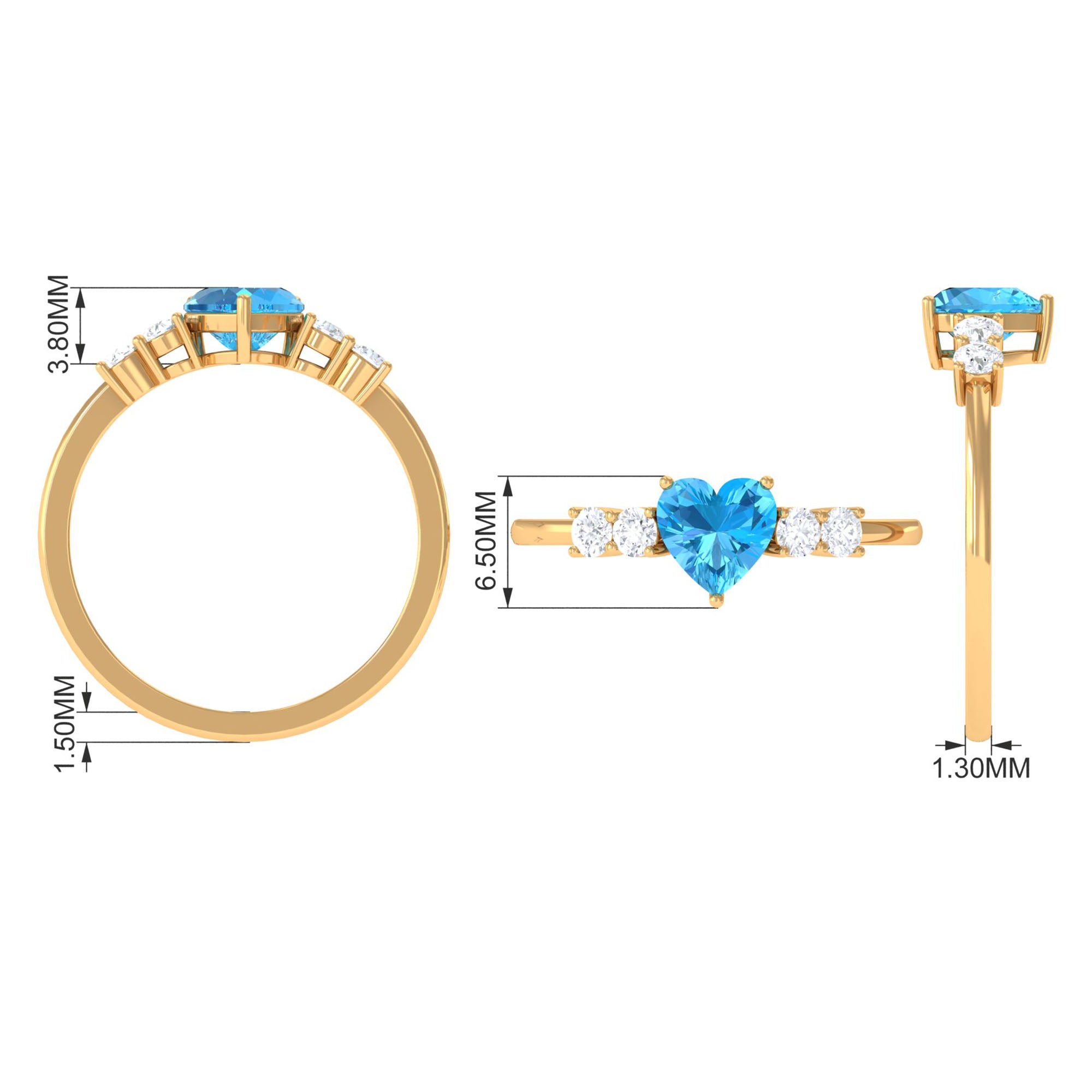 Heart Shape Swiss Blue Topaz Solitaire Promise Ring with Diamond