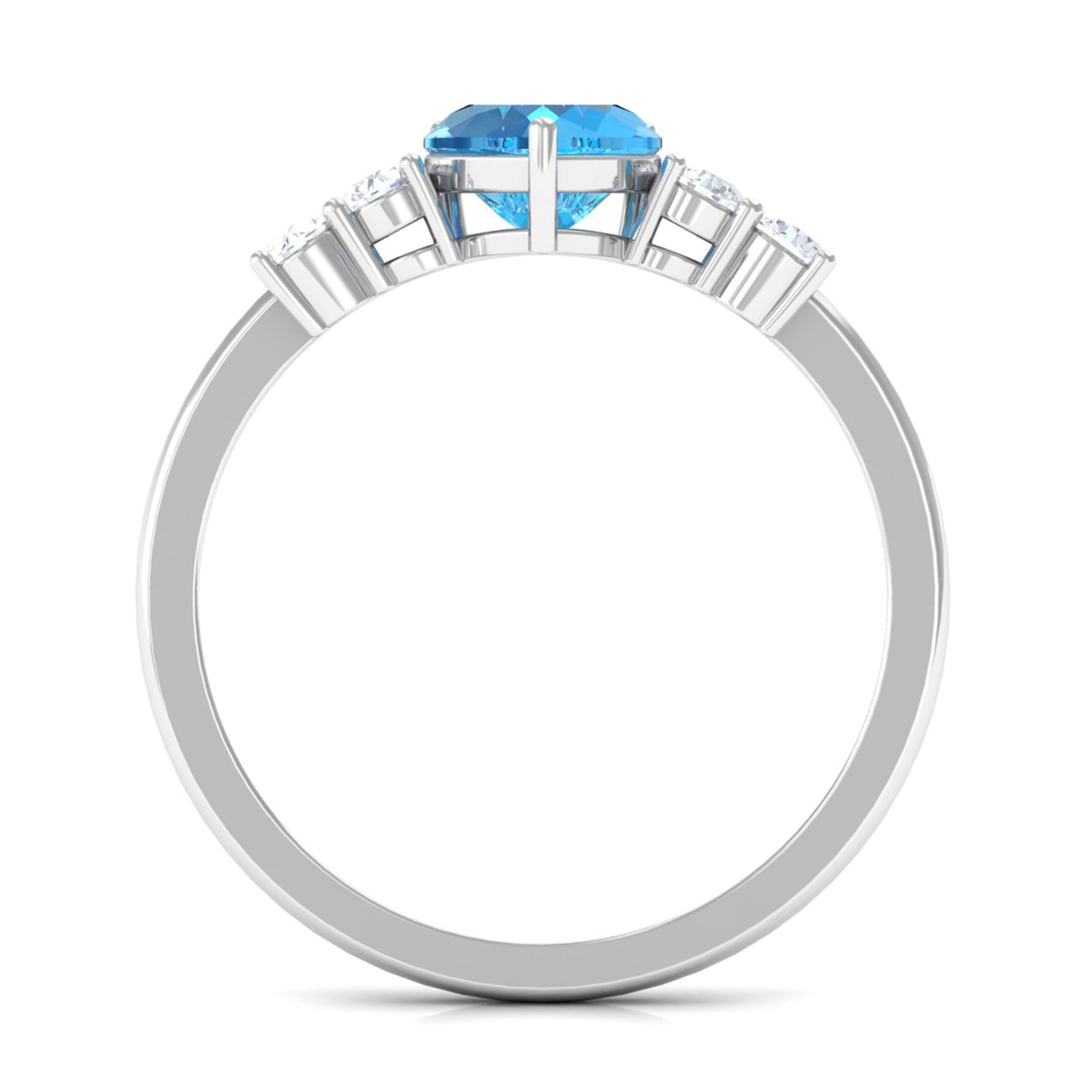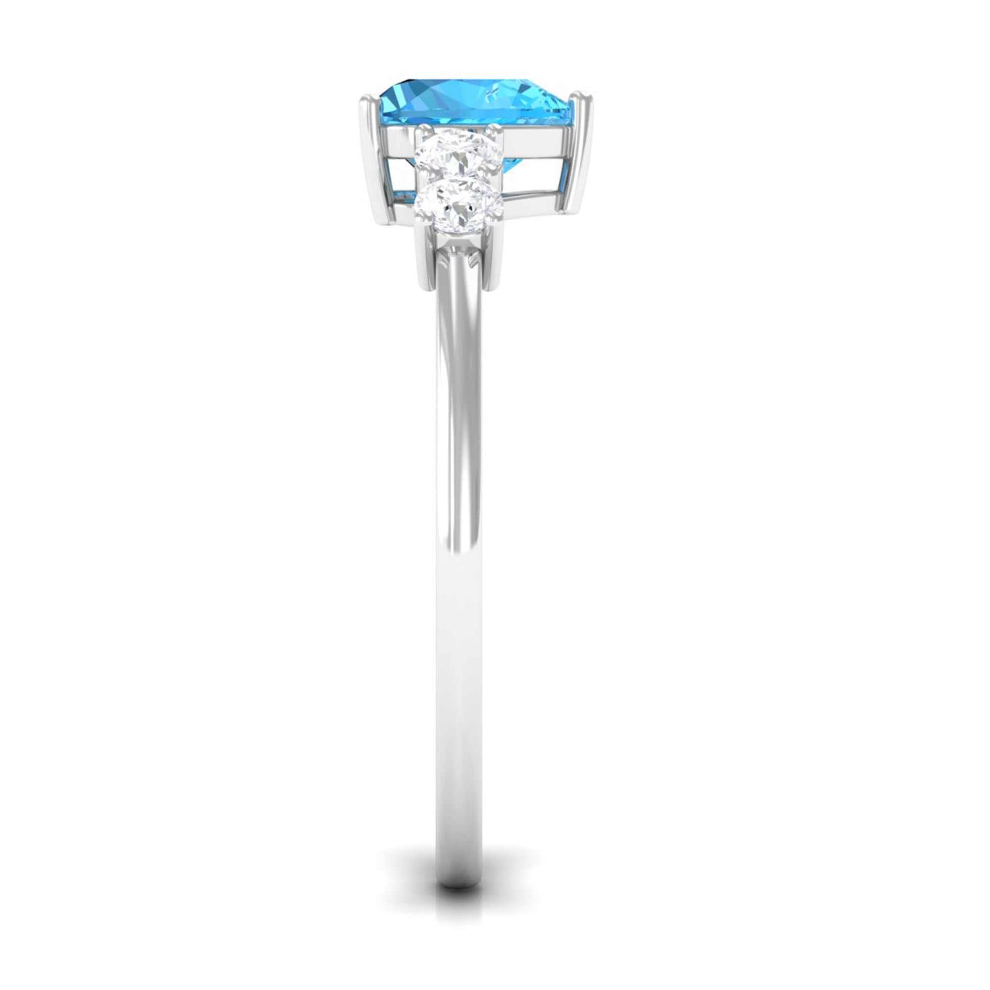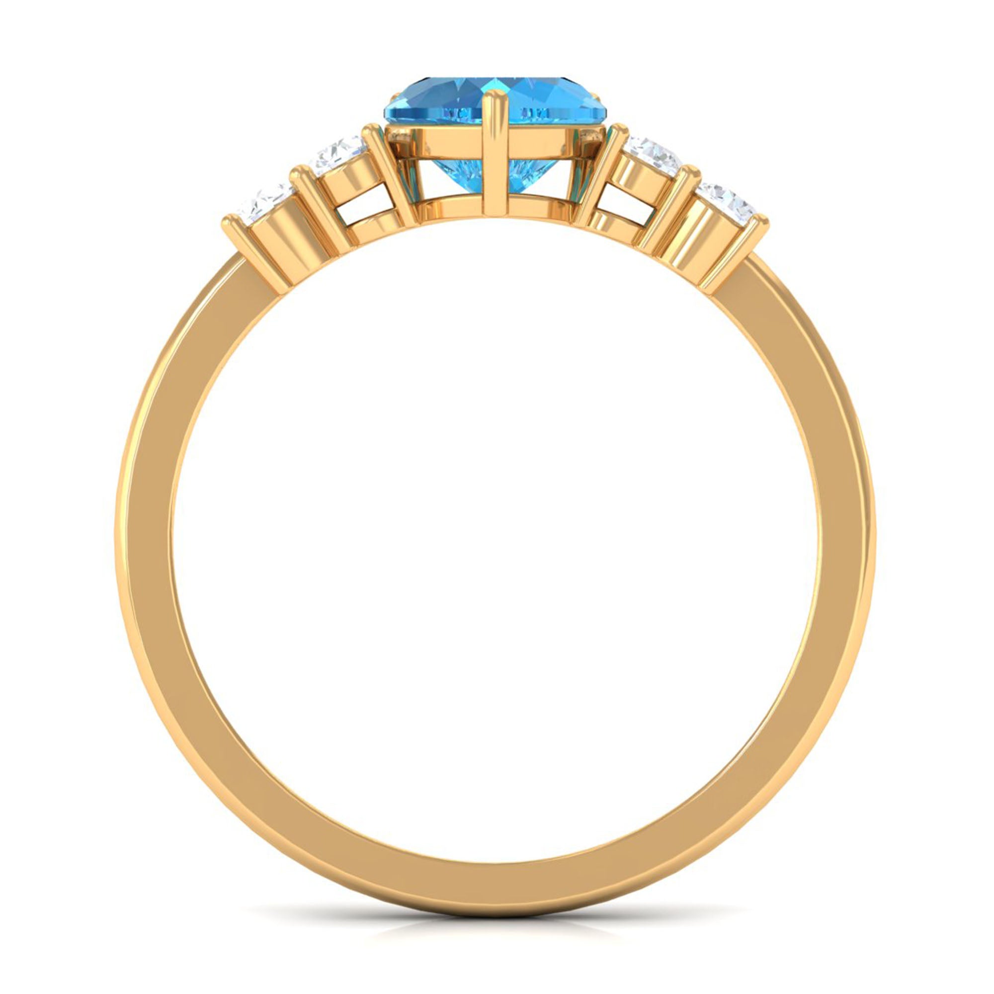 Heart Shape Swiss Blue Topaz Solitaire Promise Ring with Diamond