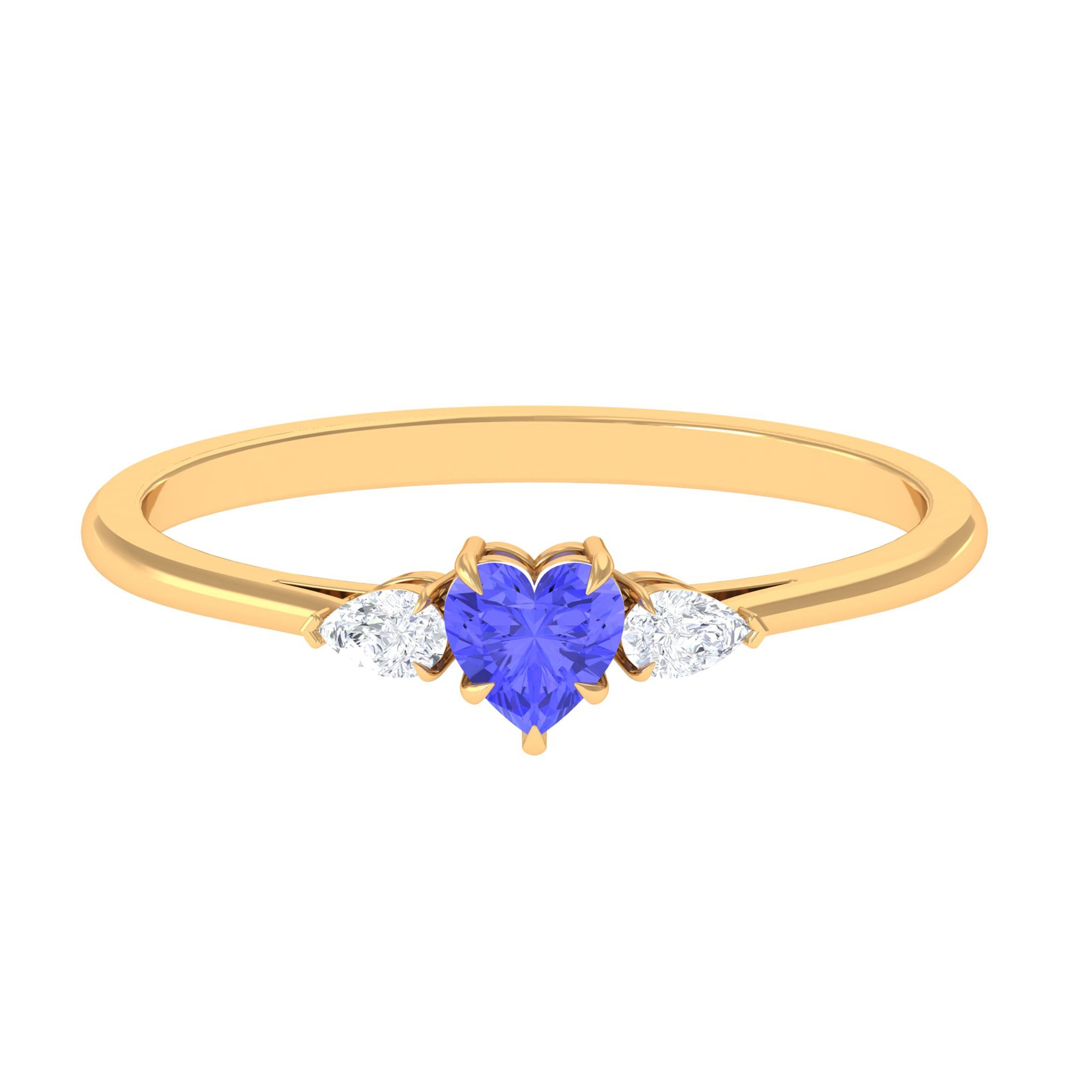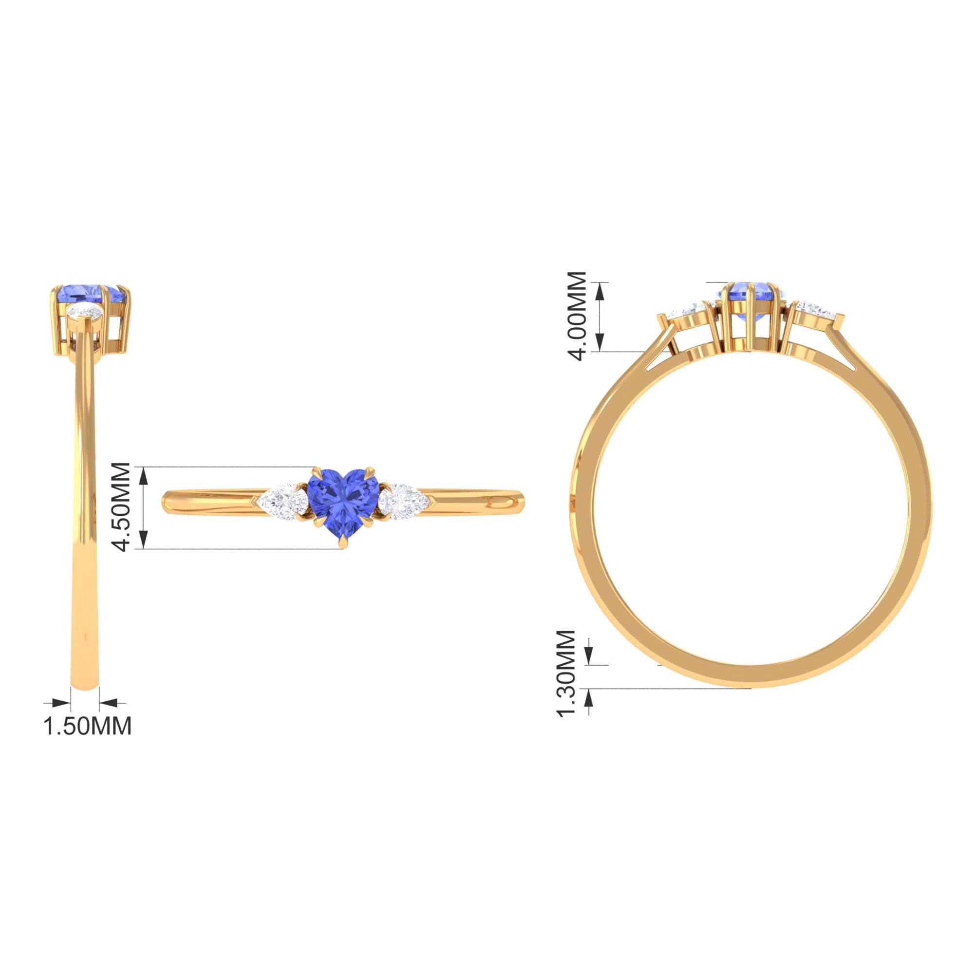 Heart Shape Tanzanite 3 Stone Promise Ring with Diamond