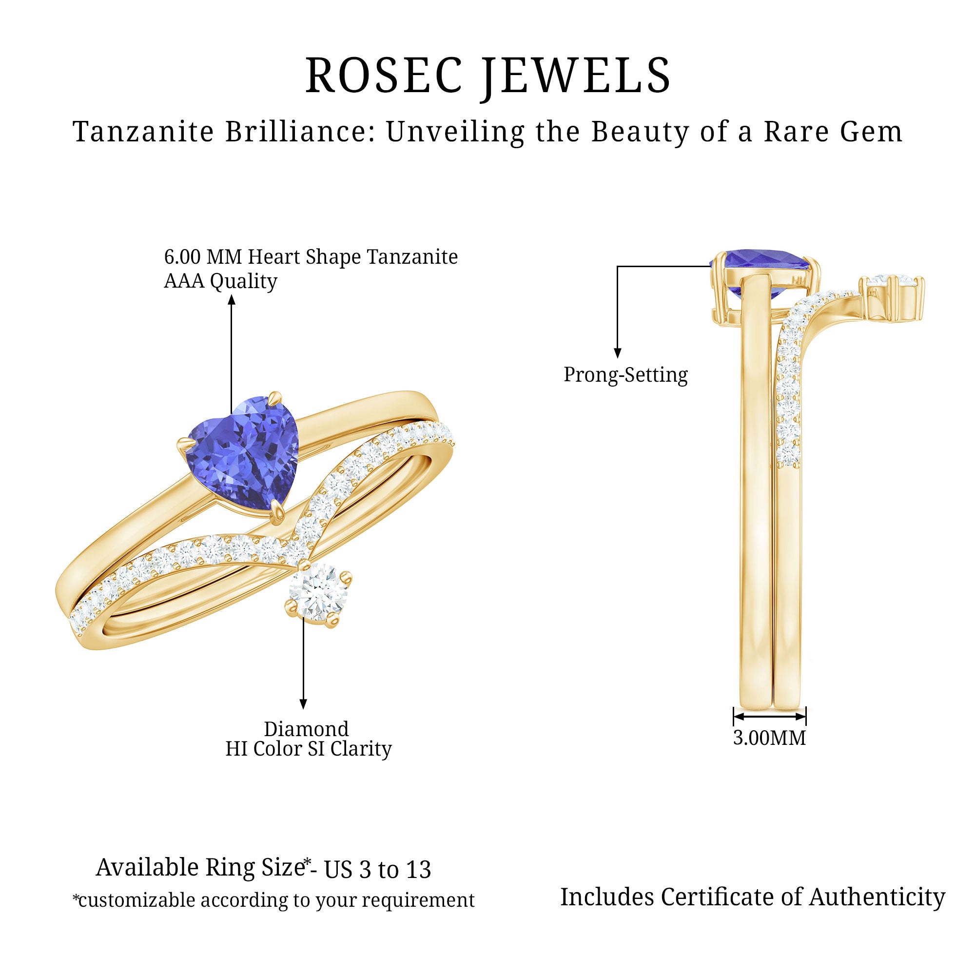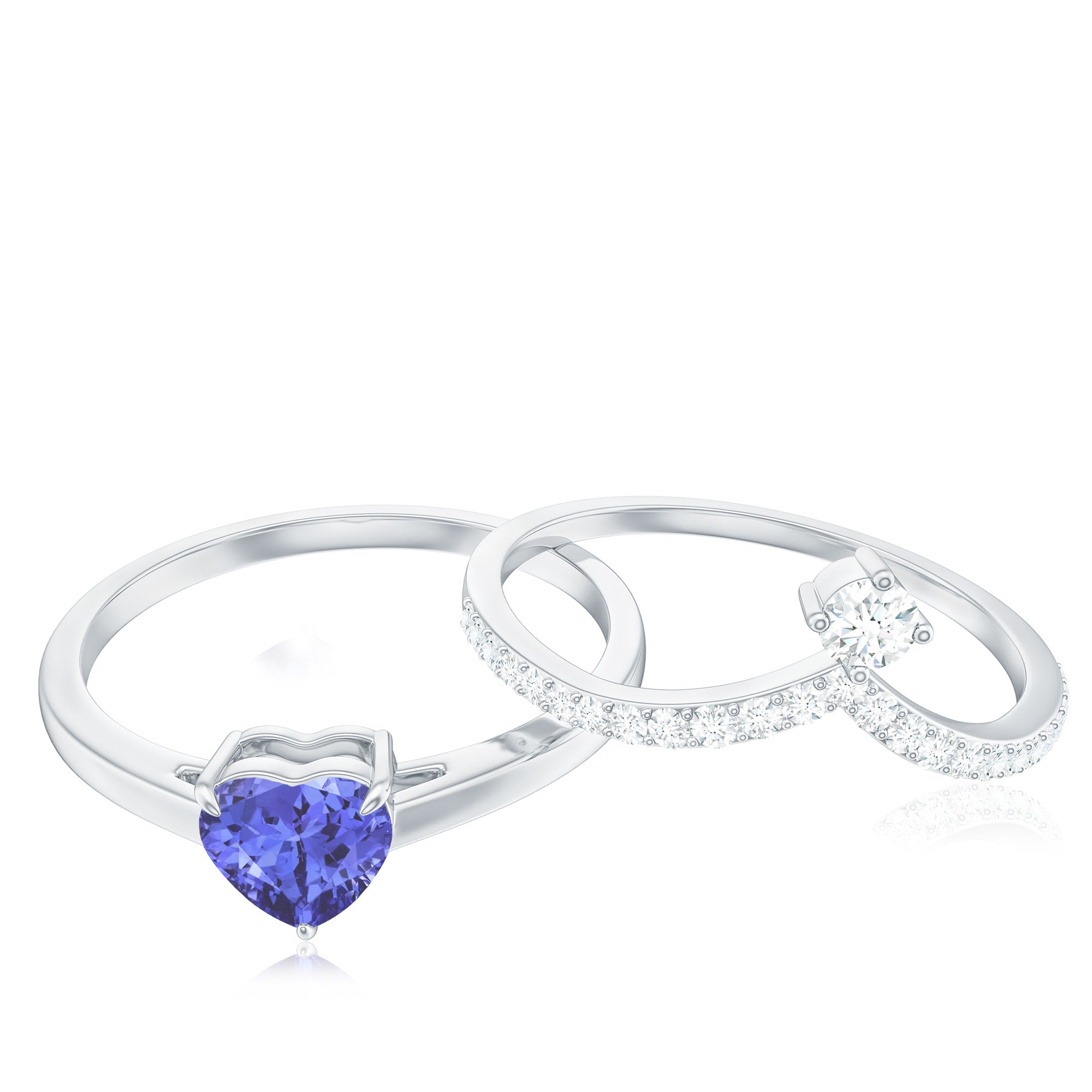 Cherish the symbol of love with this exquisite Heart Shape Tanzanite Ring Set, accentuated by sparkling Diamond gemstones.