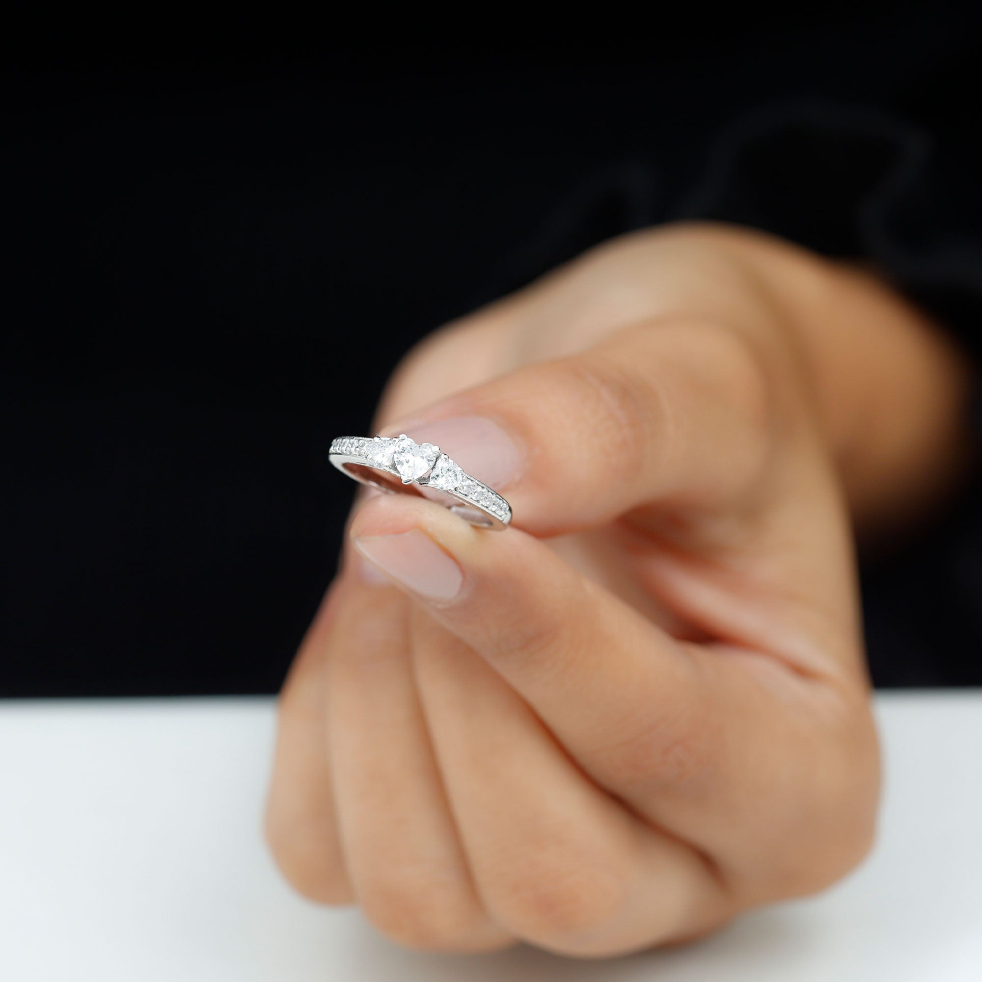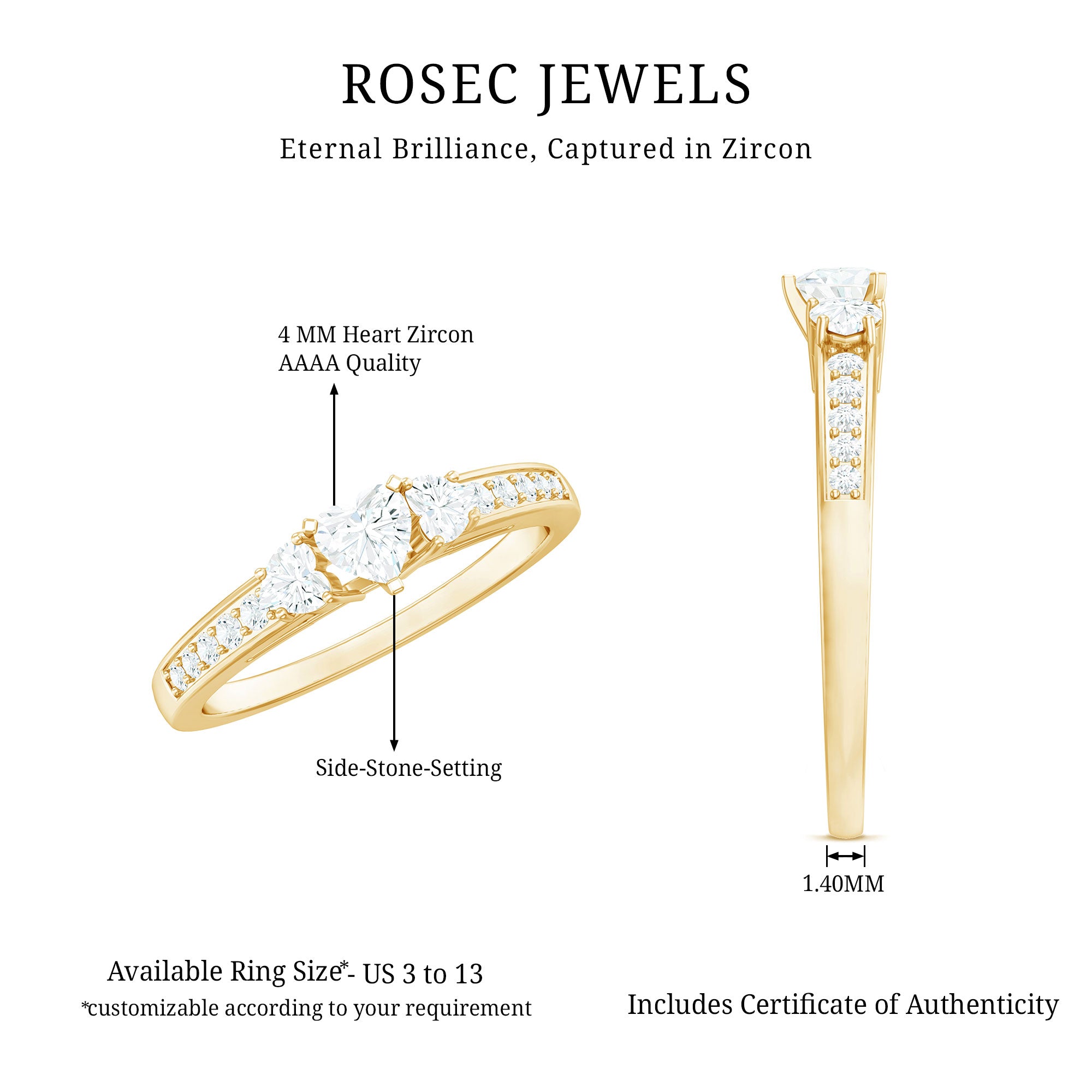 Heart Shape Zircon Anniversary Ring with Side Stones