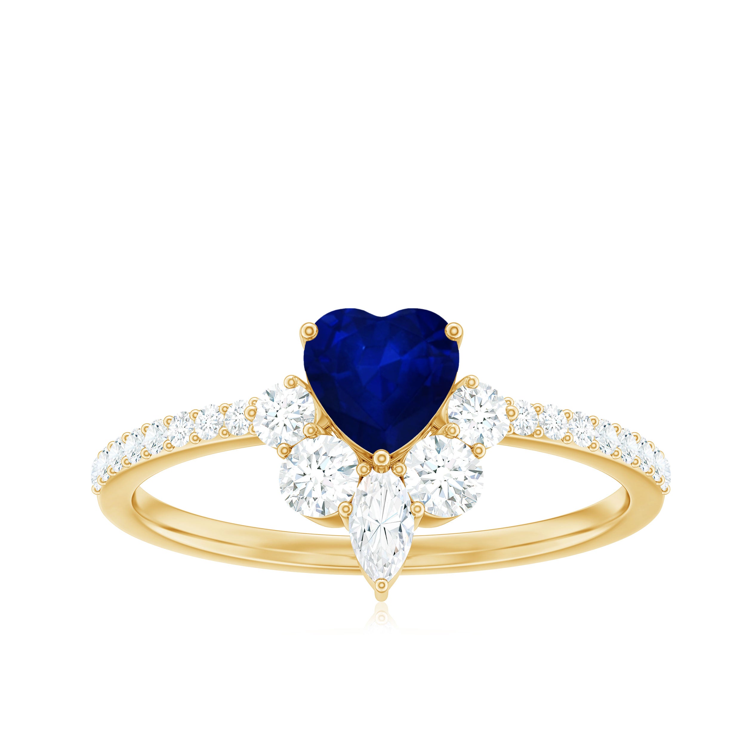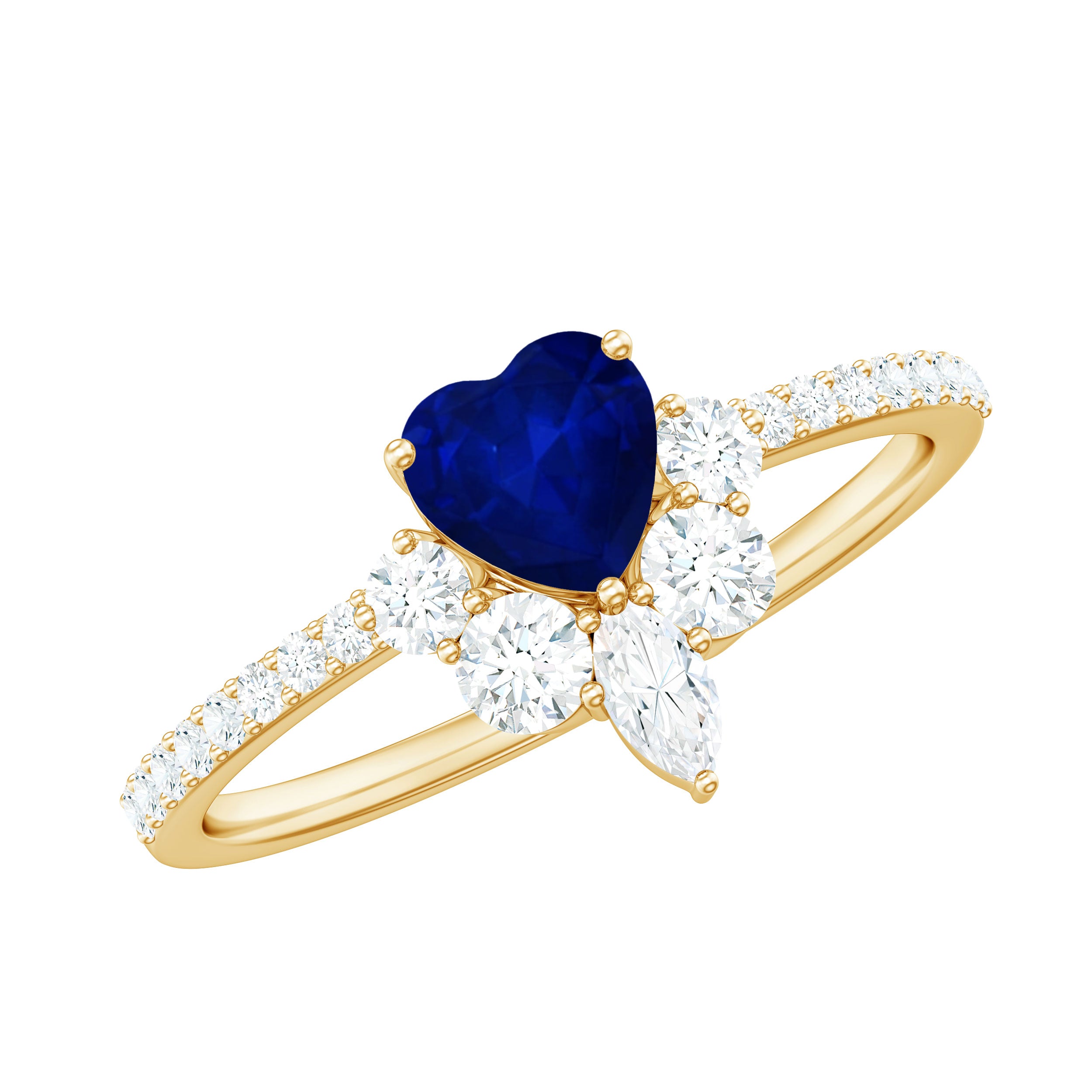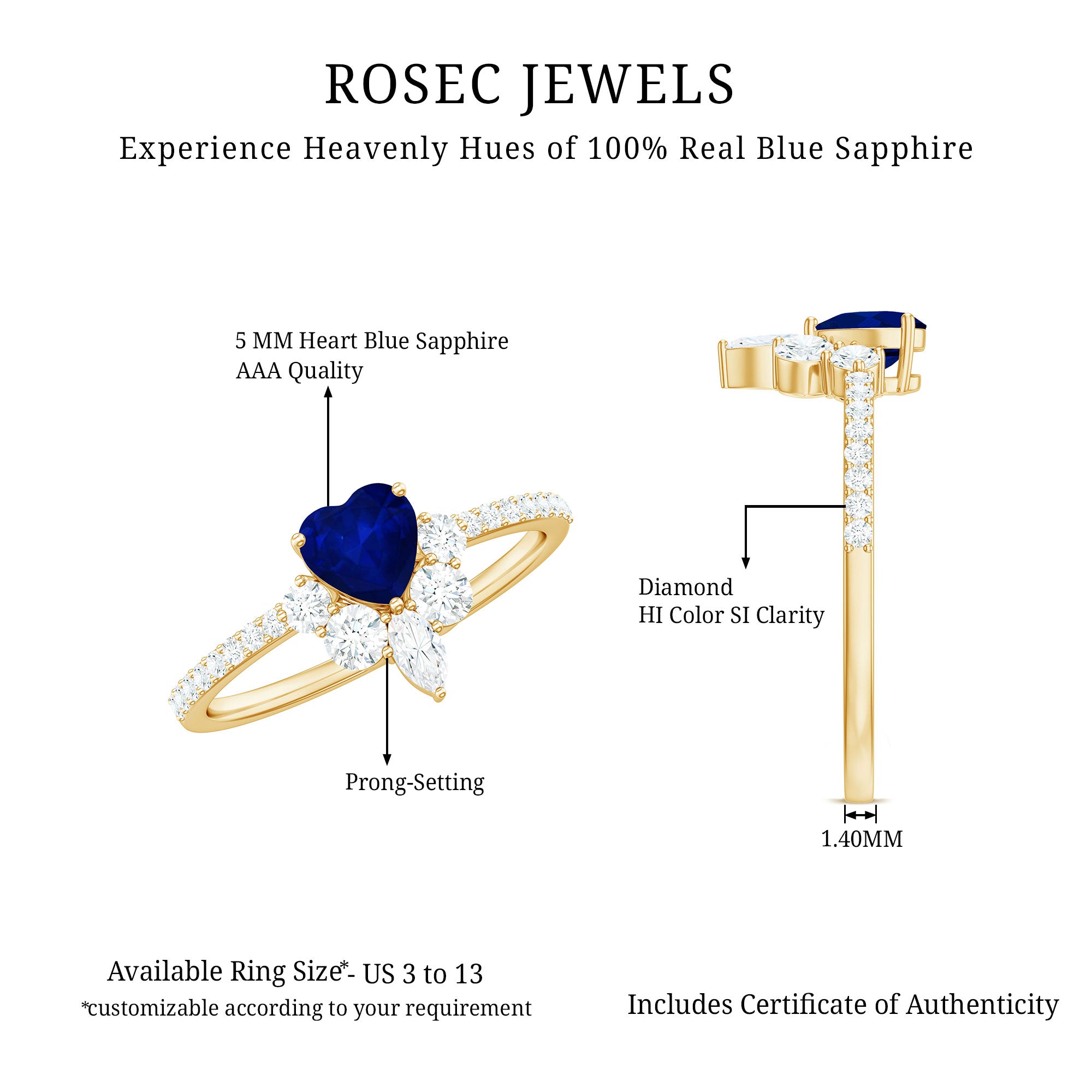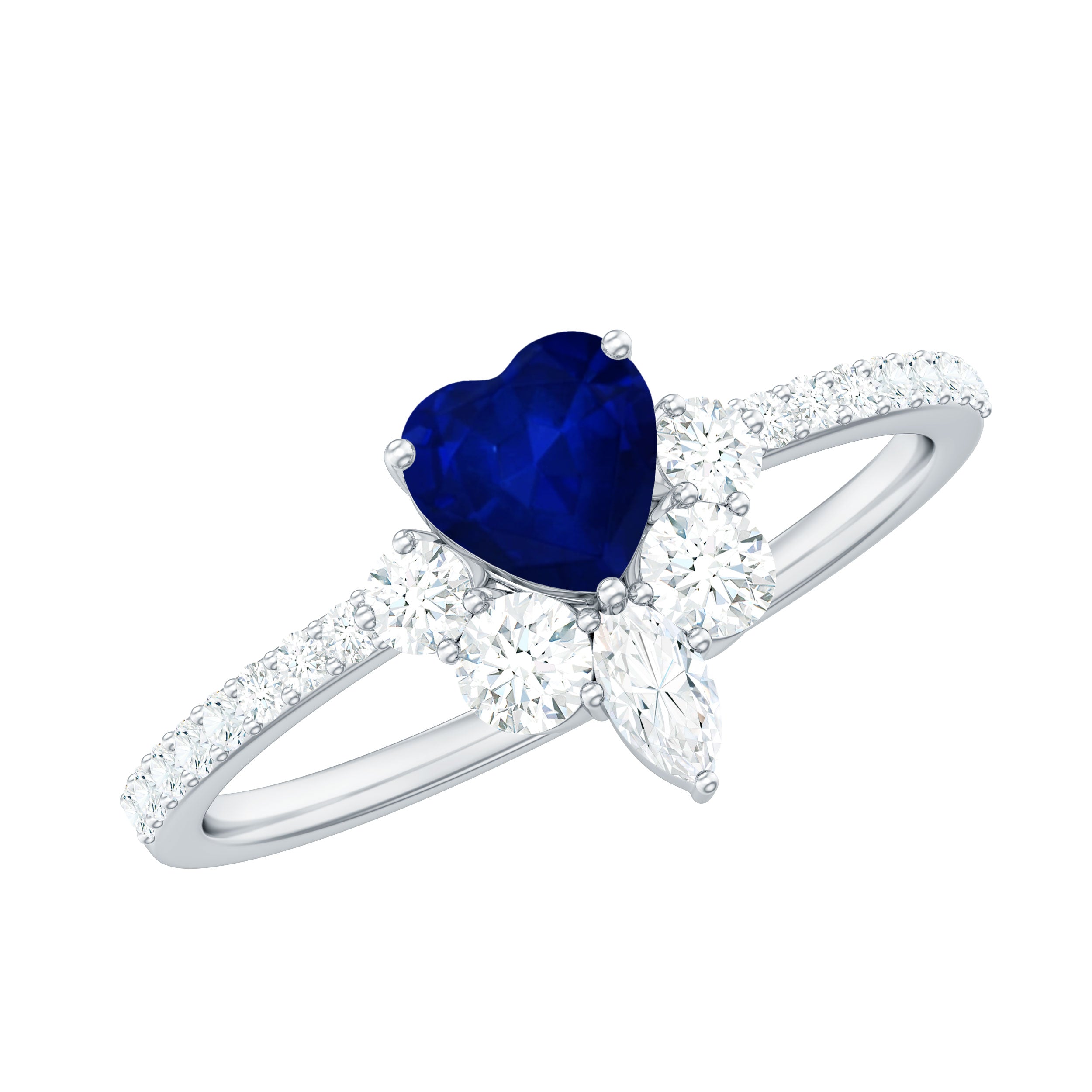 Elevate your identity with the radiant beauty of this Heart Shape Ring, adorned with exquisite Marquise and Round Shape Diamond stones, along with additional side stones, to create a mesmerizing and sparkling effect. This Blue Sapphire Designer Engagement Ring is meticulously handcrafted in various metal types, adding a touch of opulence and luxury to its overall allure. Embrace the captivating charm of this stunning ring, a symbol of love and commitment, sure to make your engagement truly memorable and special.
