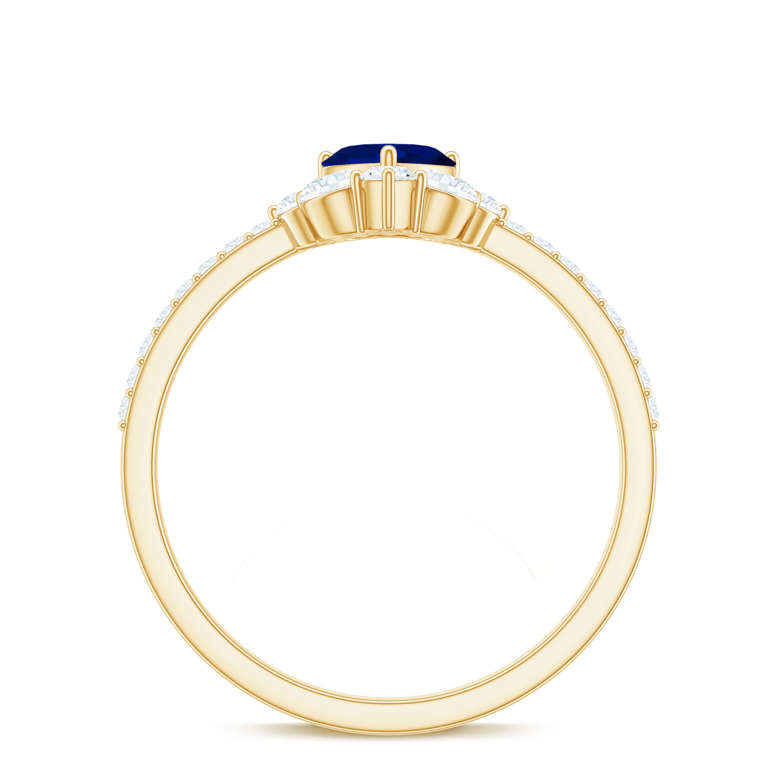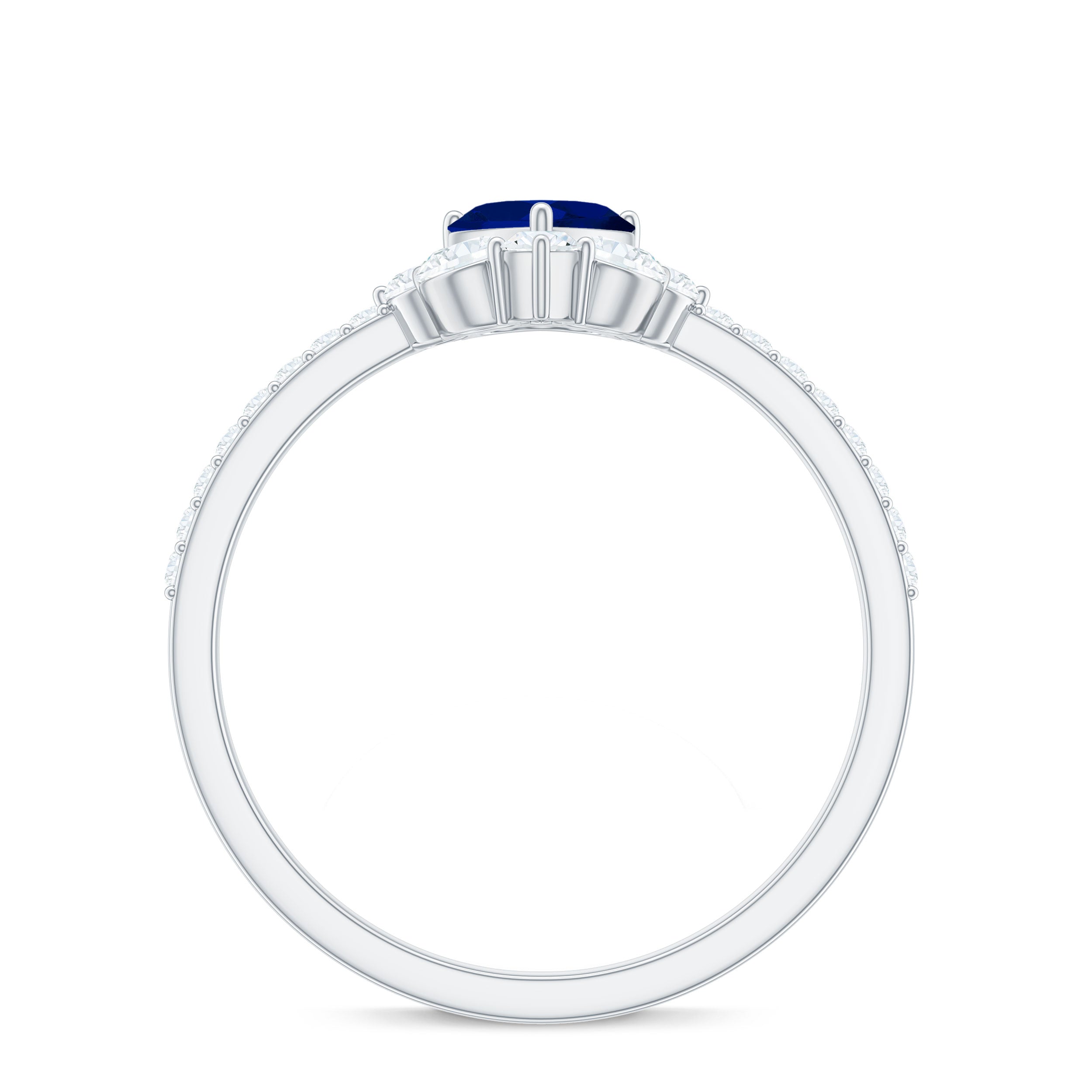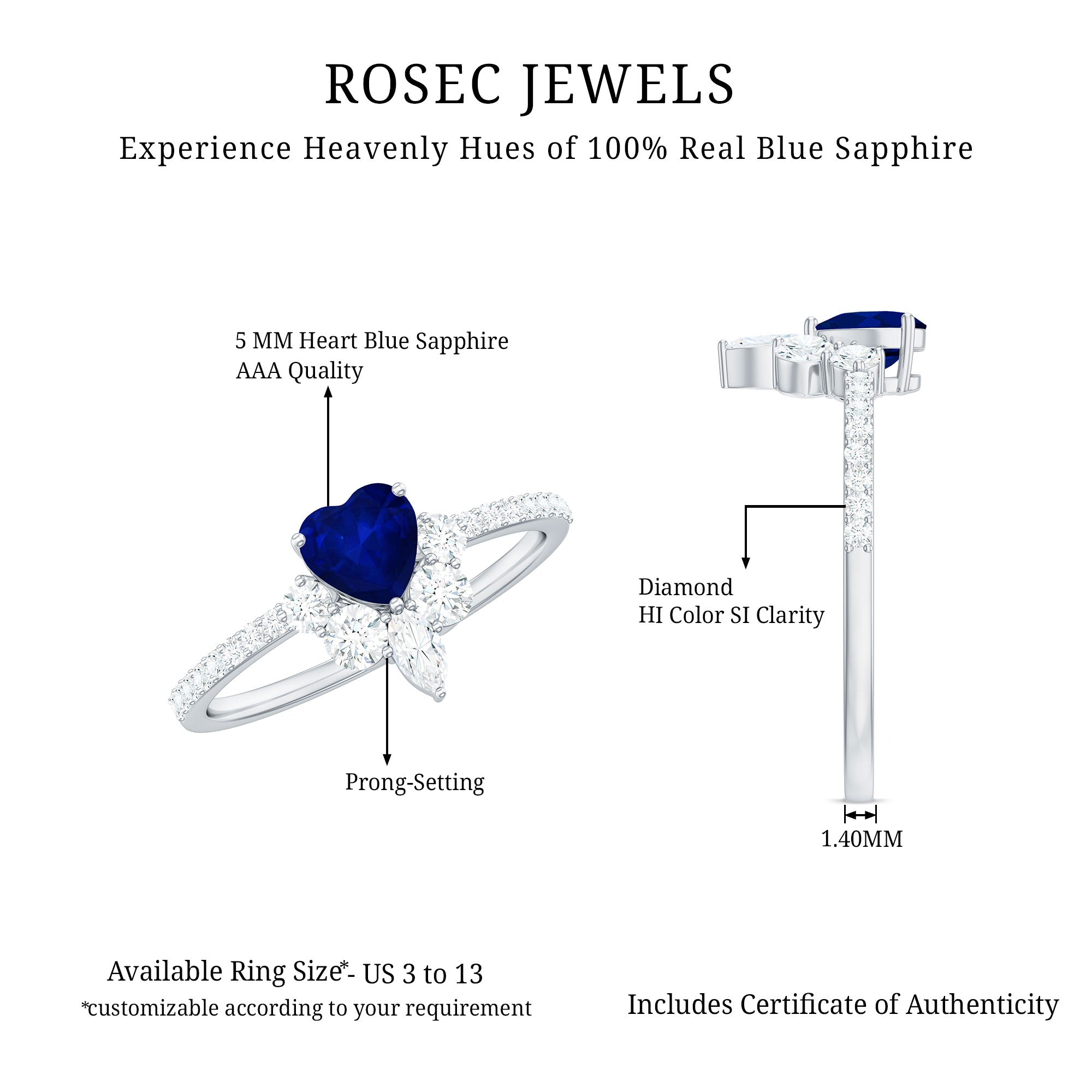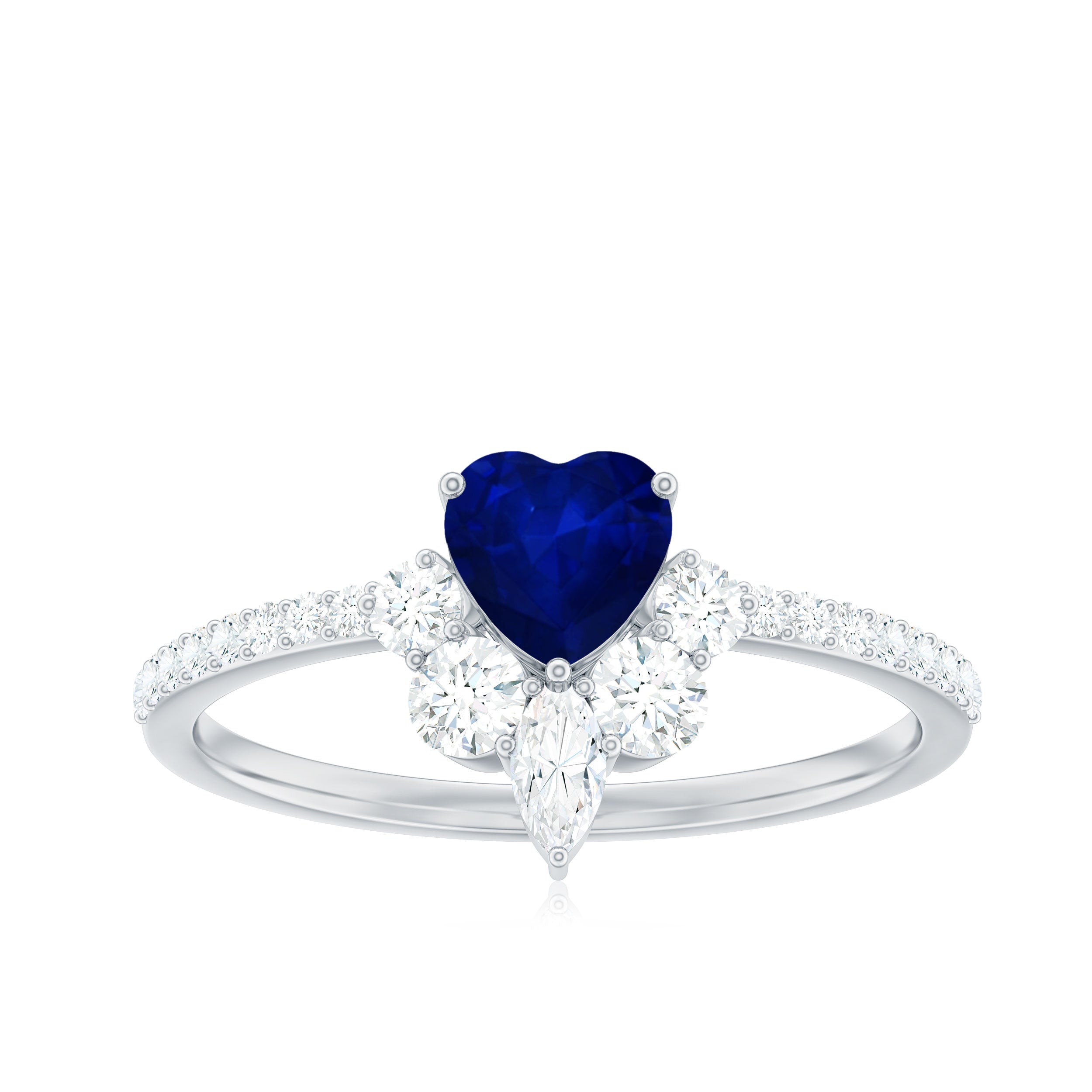 Heart Shaped Blue Sapphire Designer Ring with Diamond Half Halo