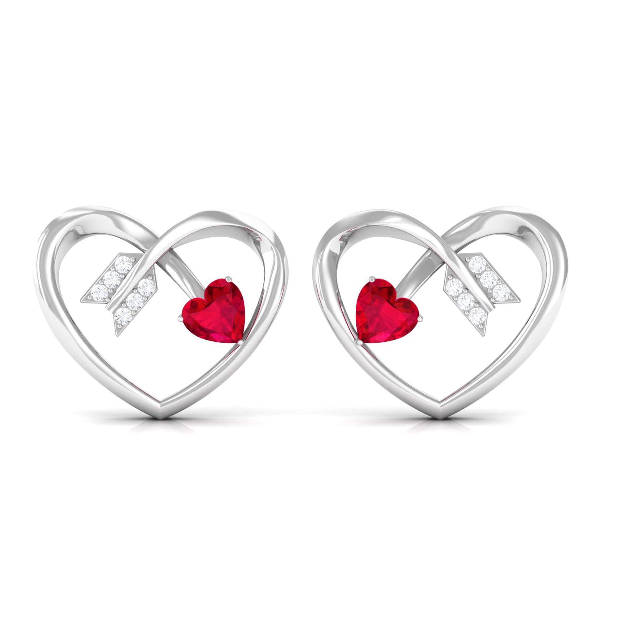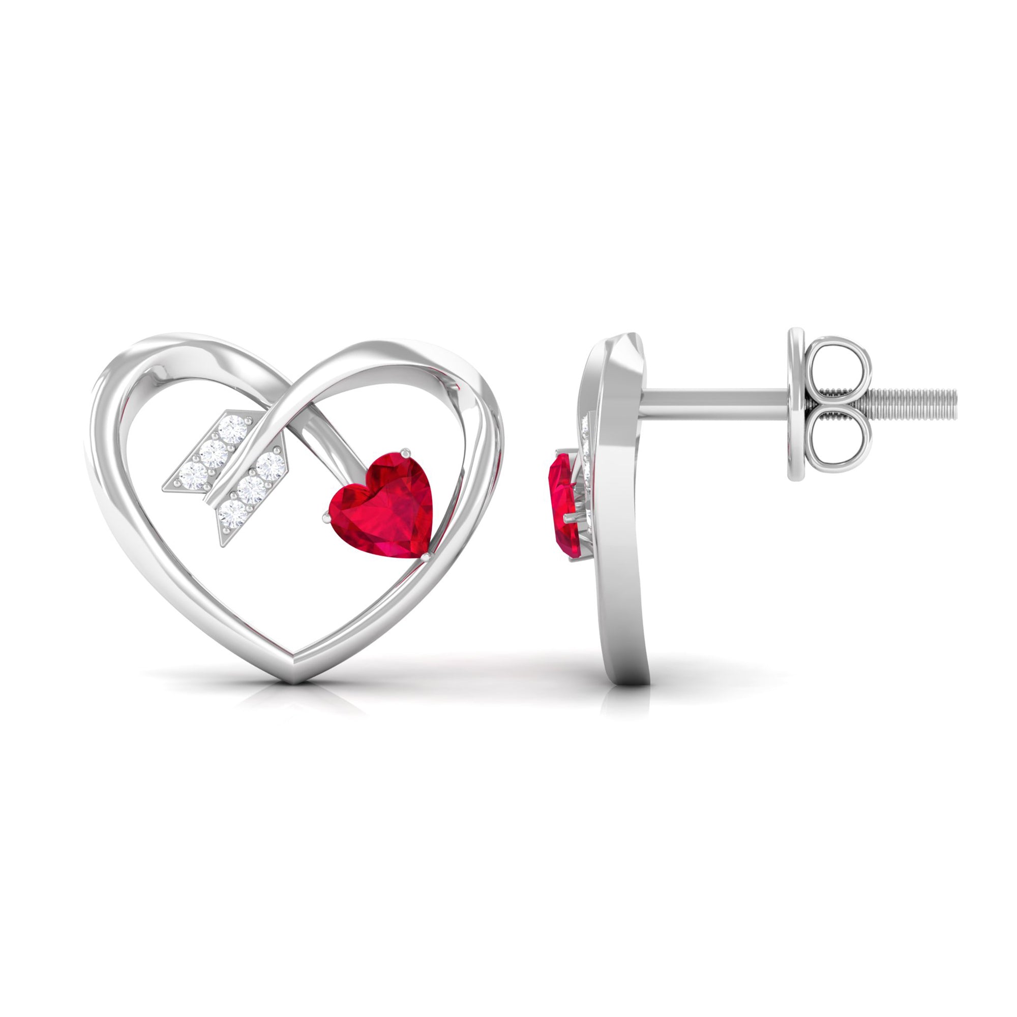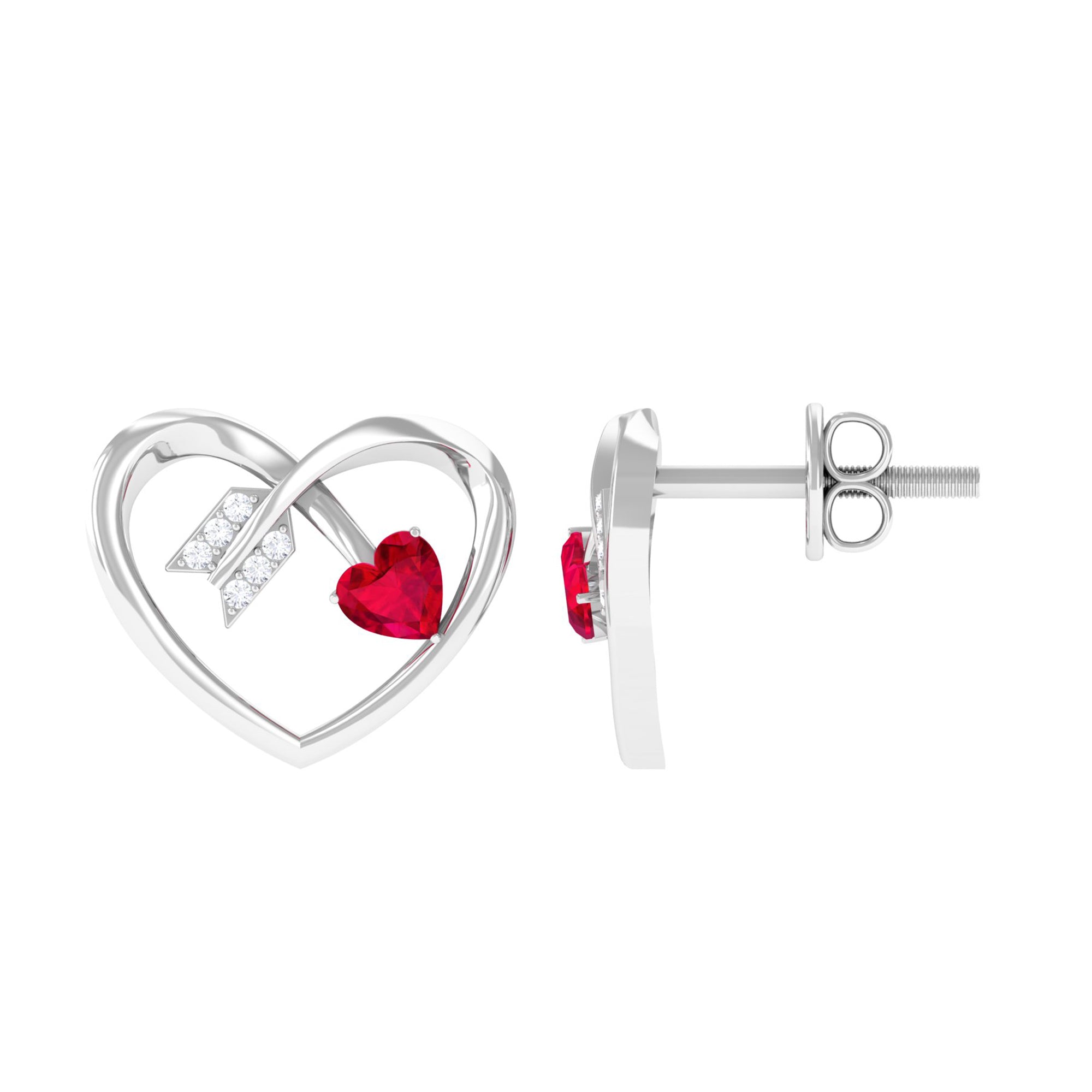 Heart Stud Earrings with Lab Created Ruby and Diamond