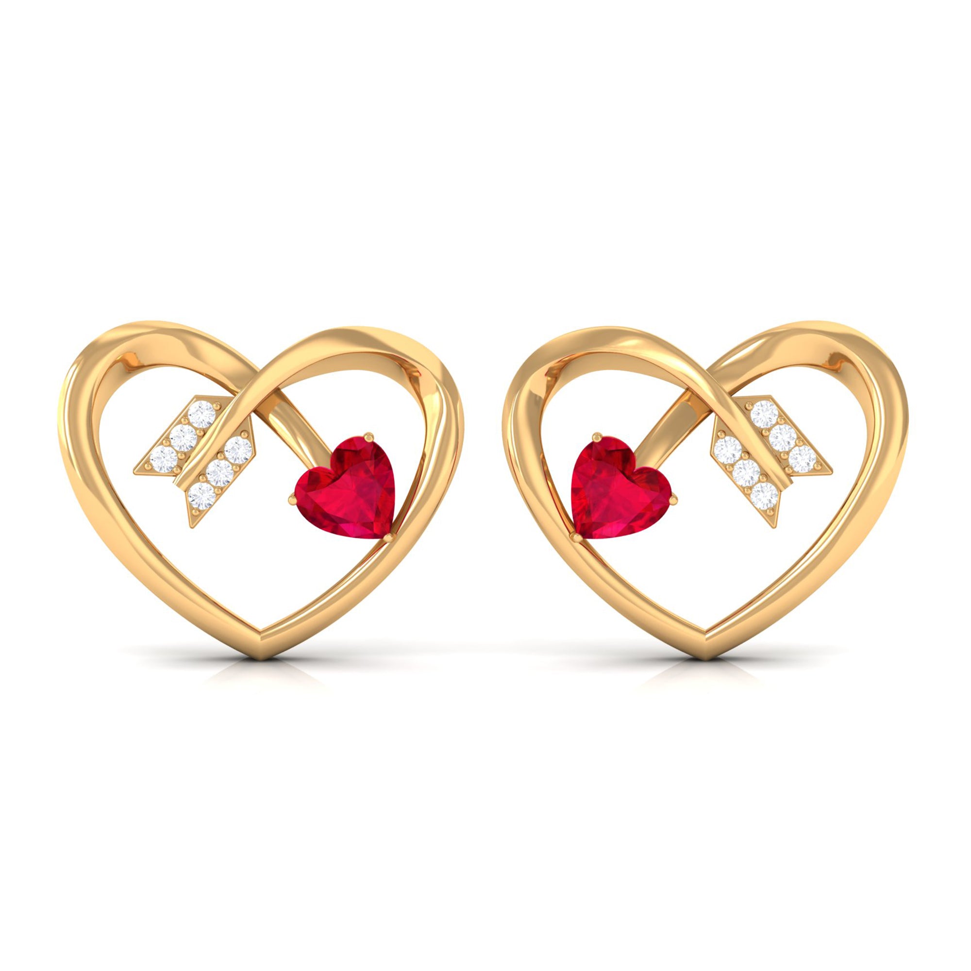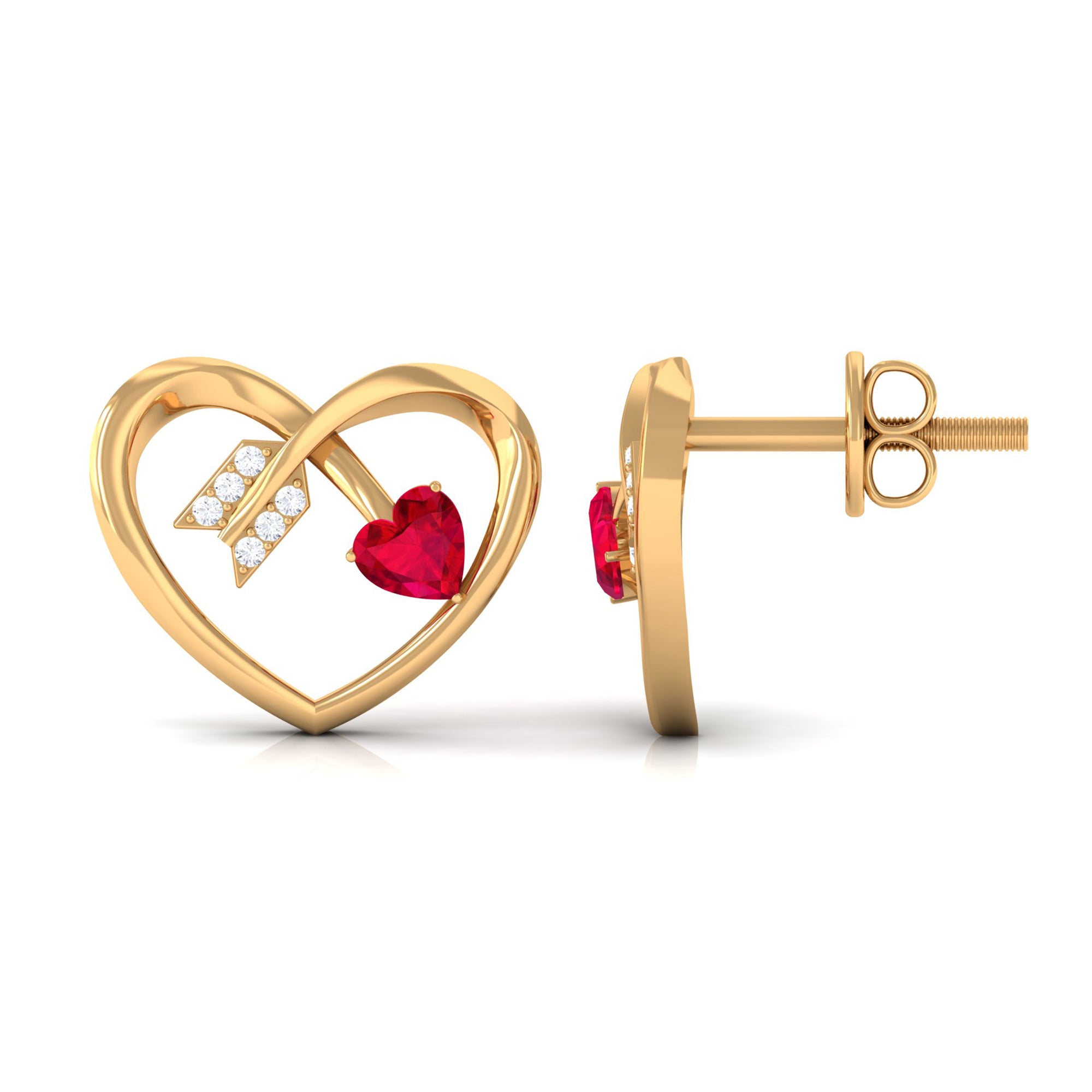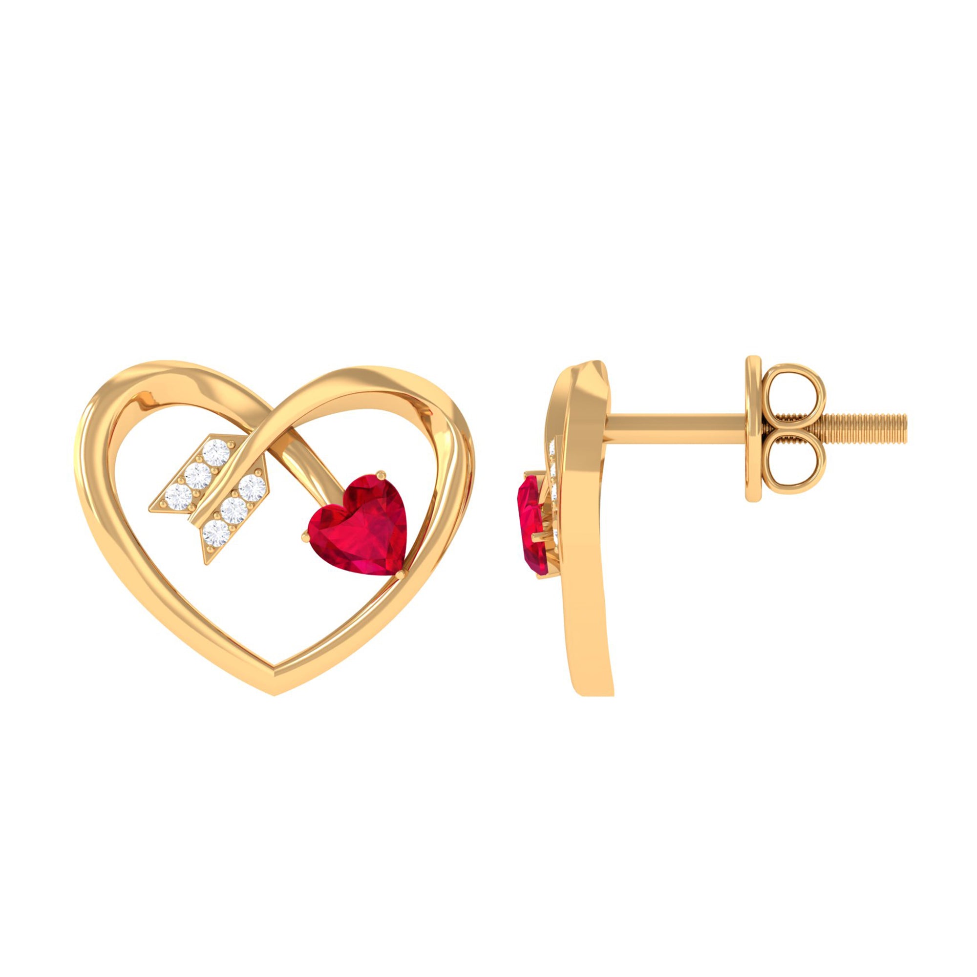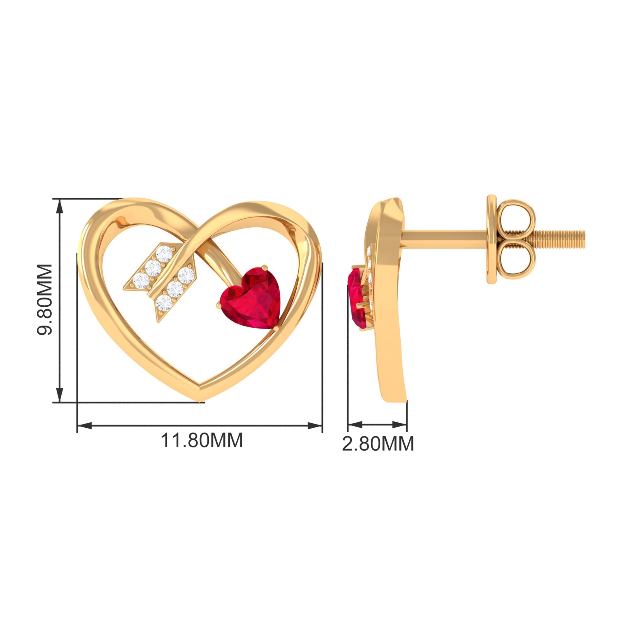Heart Stud Earrings with Lab Created Ruby and Diamond