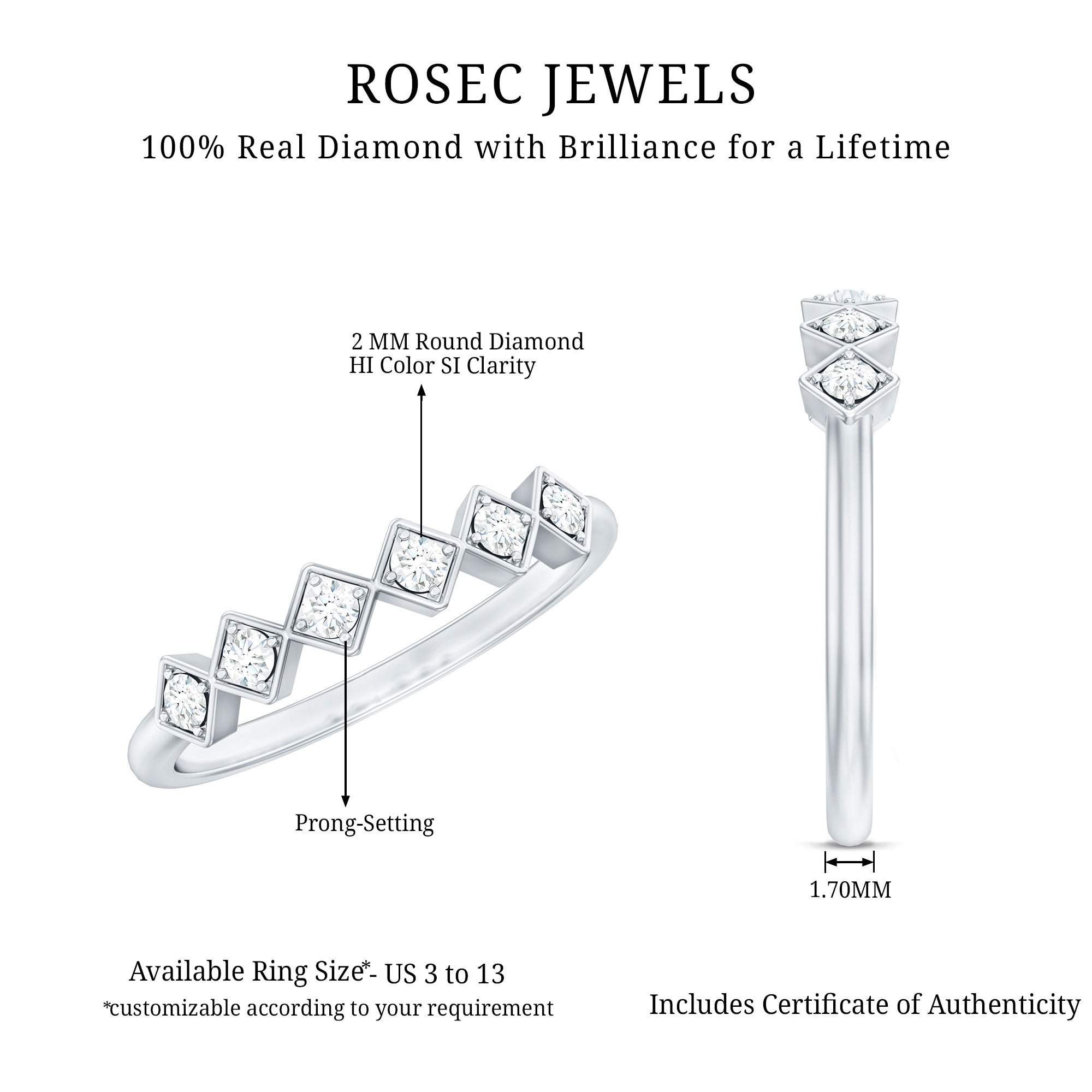 Shimmering and Shiny Diamond Half Eternity Band consists of six brilliant round cut diamond engraved in a square frame is set in a Prong Setting which also looks like zig-zag design. Marvelous Women Ring is crafted in 14K Rose Gold, White Gold, and Yellow Gold. Diamond Ring is best for people whose birthday coming soon. Amazing and innovative design grabs everyones attention.