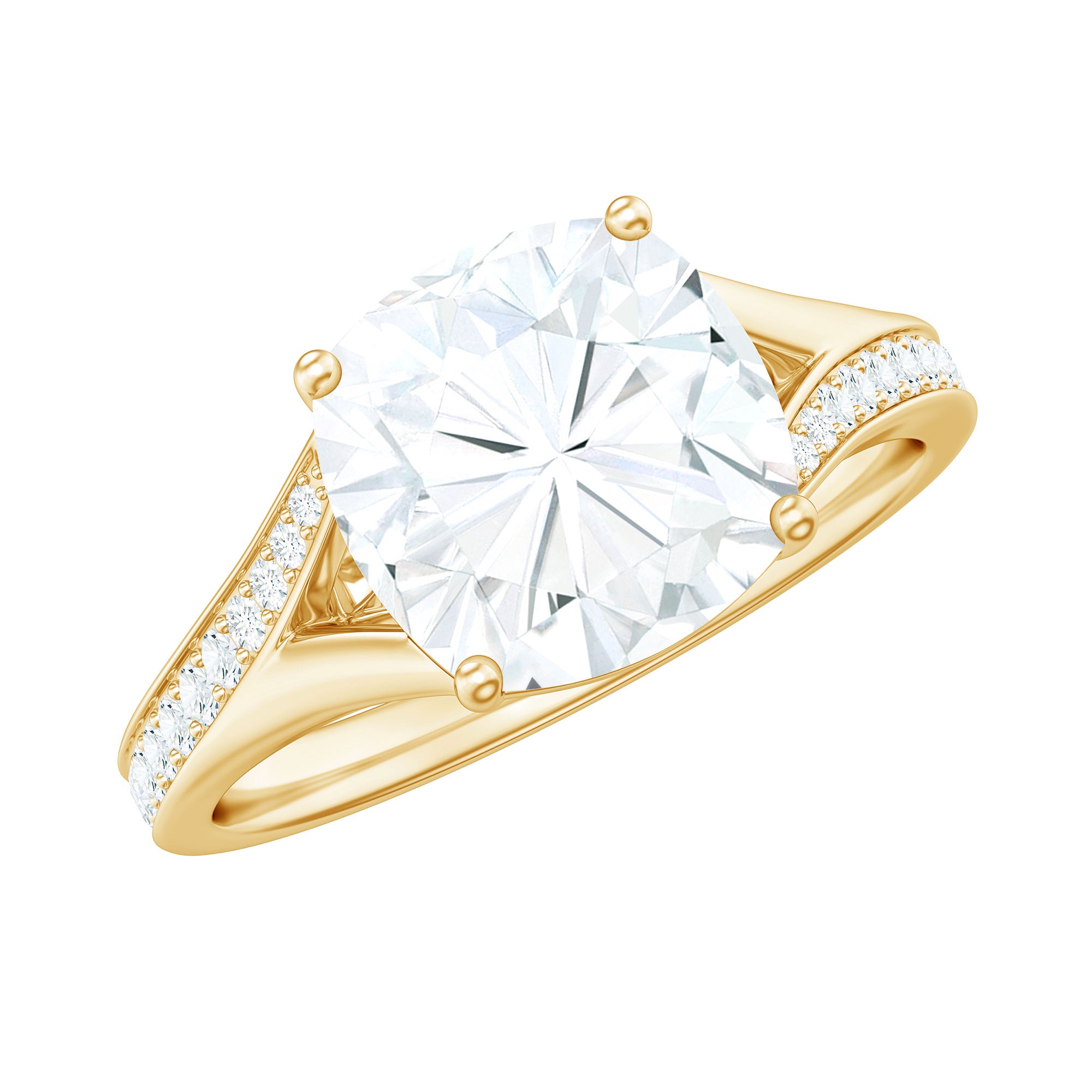 Huge Cushion Cut Moissanite Engagement Ring with Split Shank