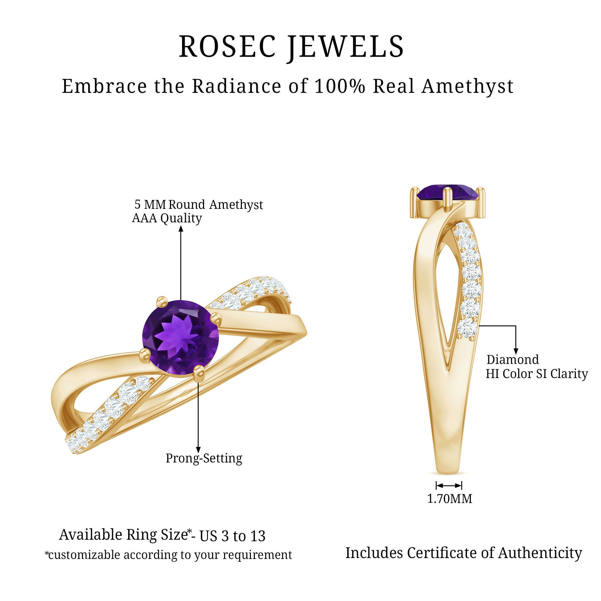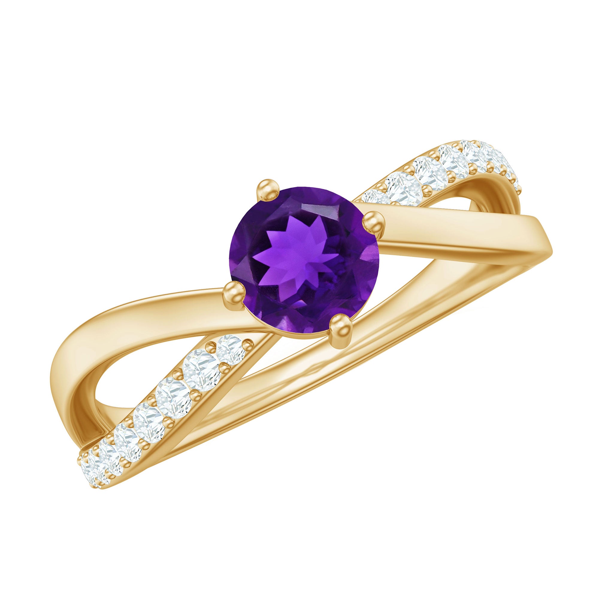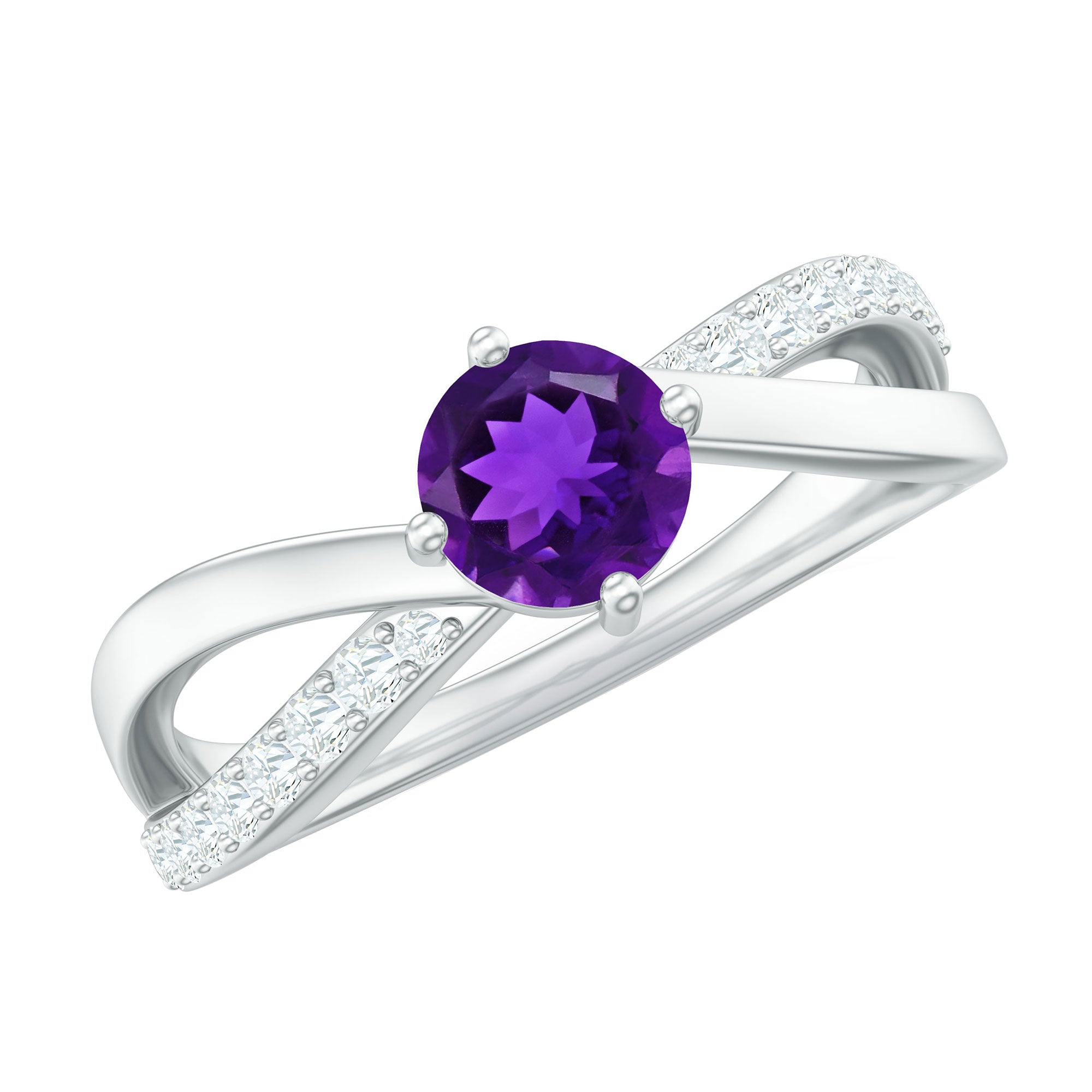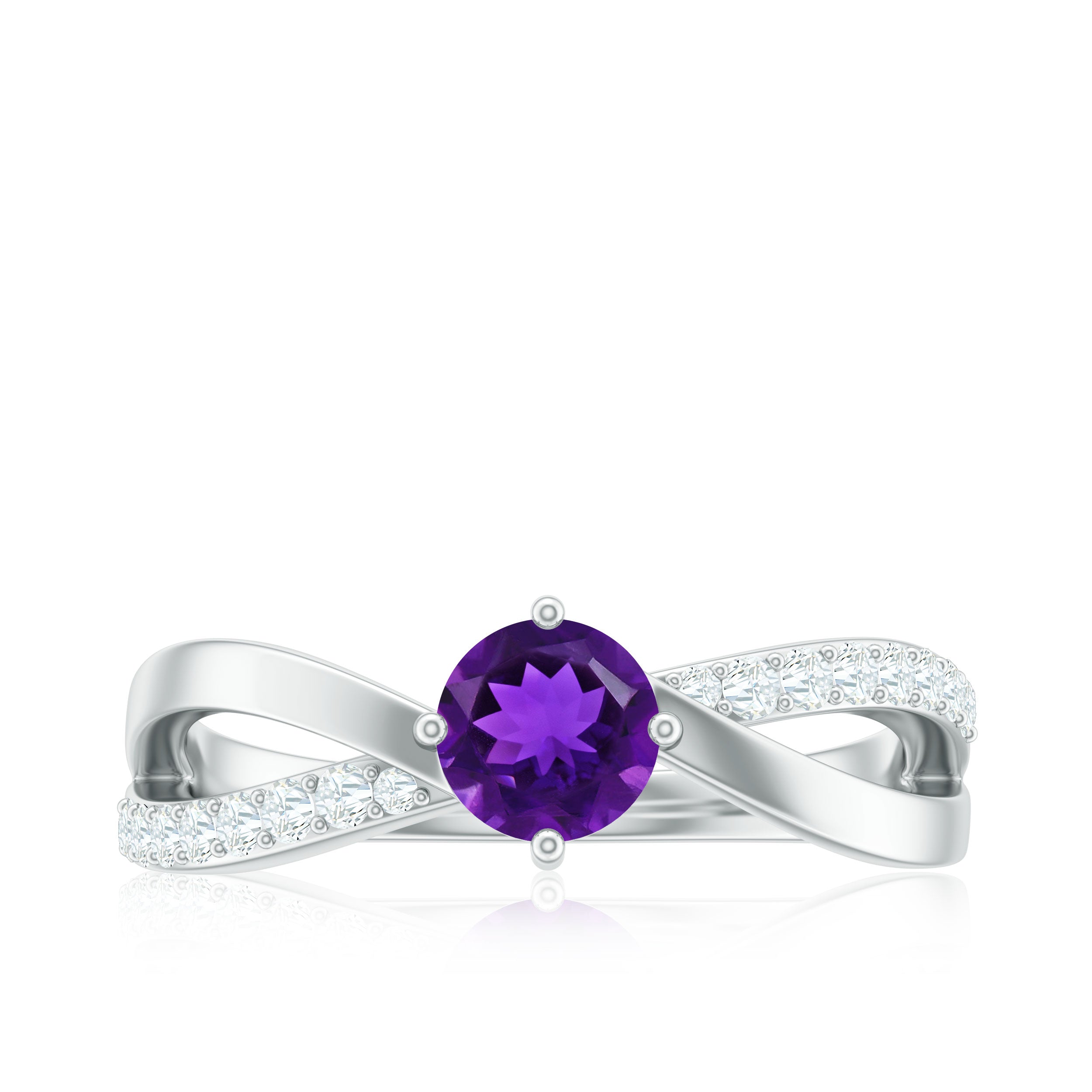 Infinity Shank Amethyst Solitaire Ring with Diamond