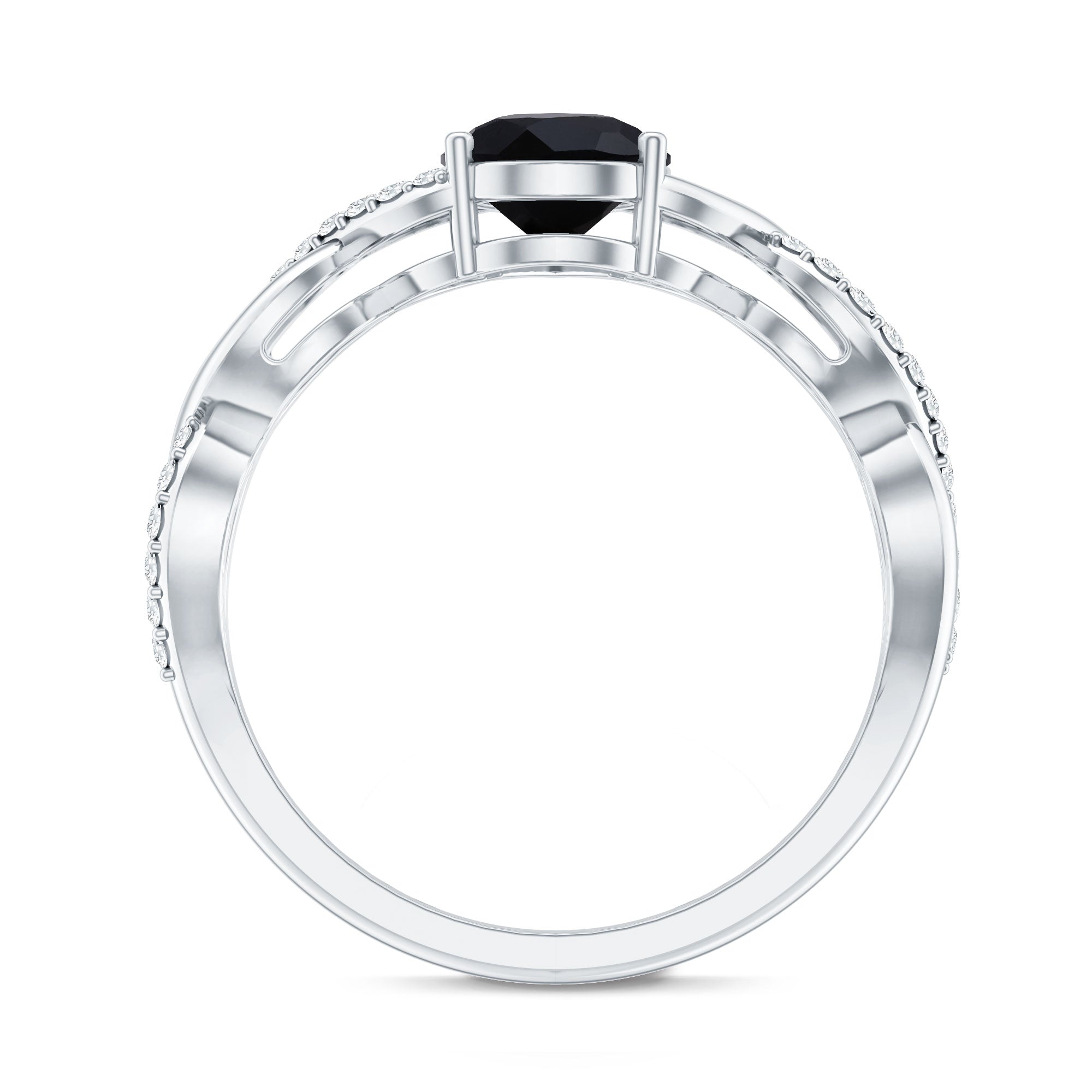 Infinity Shank Created Black Diamond and Diamond Solitaire Engagement Ring