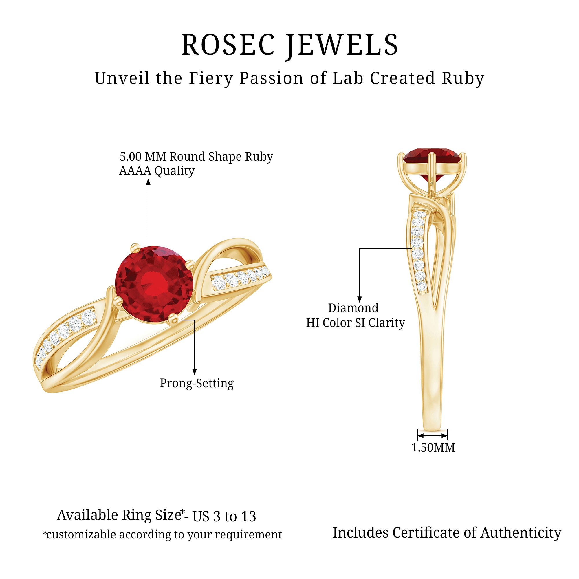 Make a statement that speaks straight from the heart with this Ruby and Diamond Engagement Ring, it is full of meaning and style. Curated with a 5 MM round lab created ruby shines brightly, set securely in 4-Prong-Diagonal-Setting. The infinity shaped band adds a special touch, decorated with sparkling diamonds that wrap around, symbolizing endless love and connection. This Infinity Engagement Ring is not just beautiful, it is a promise and a symbol of commitment that leaves a lasting impression. Perfect as a pre-engagement or promise ring, its simple yet powerful design makes it a piece you can wear every day or save for those meaningful moments. The combination of the rich red ruby and shimmering diamonds creates a look that is both classic and modern, fitting effortlessly with any outfit. This infinity band represents a strong bond and an unbreakable connection between two people. Crafted with care and attention to quality, the Lab Created Ruby Engagement Ring tells a story of love that lasts forever. Whether you are giving it as a gift or treating yourself, this Ruby Solitaire Ring is a beautiful way to show how deep your feelings truly are.