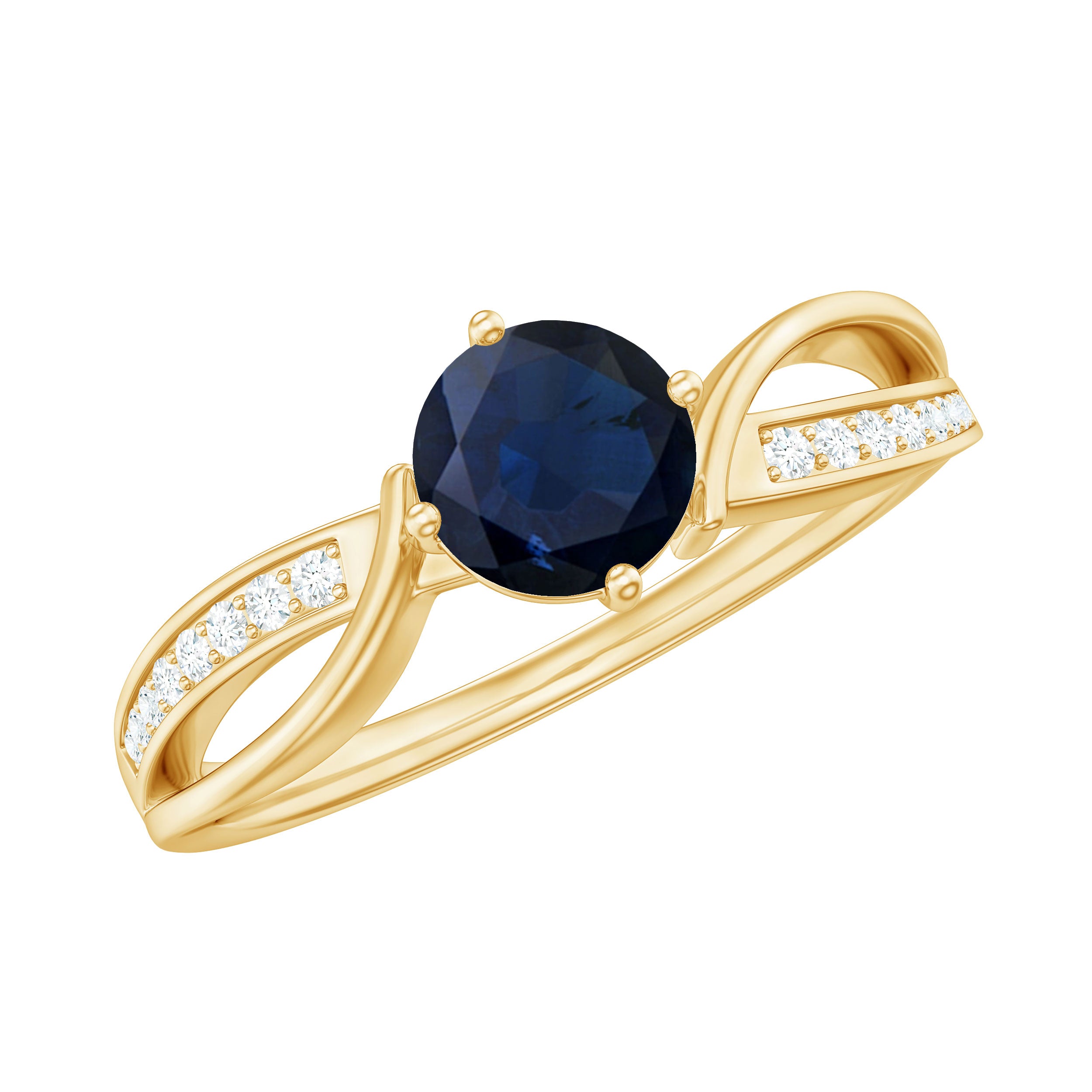 Infinity Shank Round Blue Sapphire Engagement Ring with Diamond