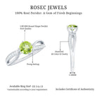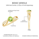 This stunning peridot engagement ring is a symbol of everlasting love and commitment. The center stone, a bright and cheerful peridot, is Round Shape and set in 4 prong diagonal setting, showcasing its natural beauty and vibrant green color. The infinity shank design is a perfect representation of the infinite love and commitment that you share with your partner. The shank is also adorned with sparkling Diamond stones, adding extra brilliance and glamour to the piece. Elegant and timeless, this ring is the perfect choice for those who appreciate classic style and modern design with a touch of joyful energy.