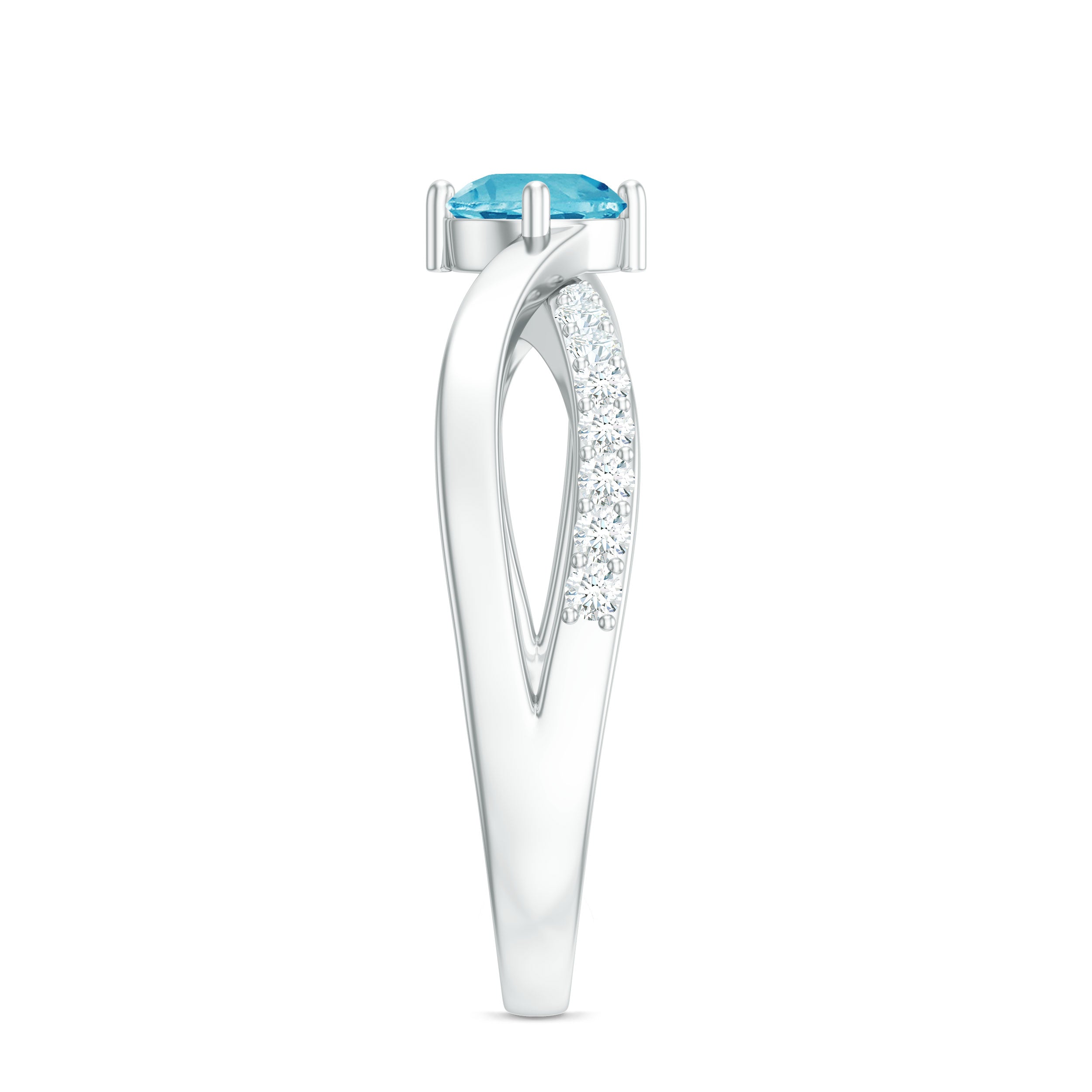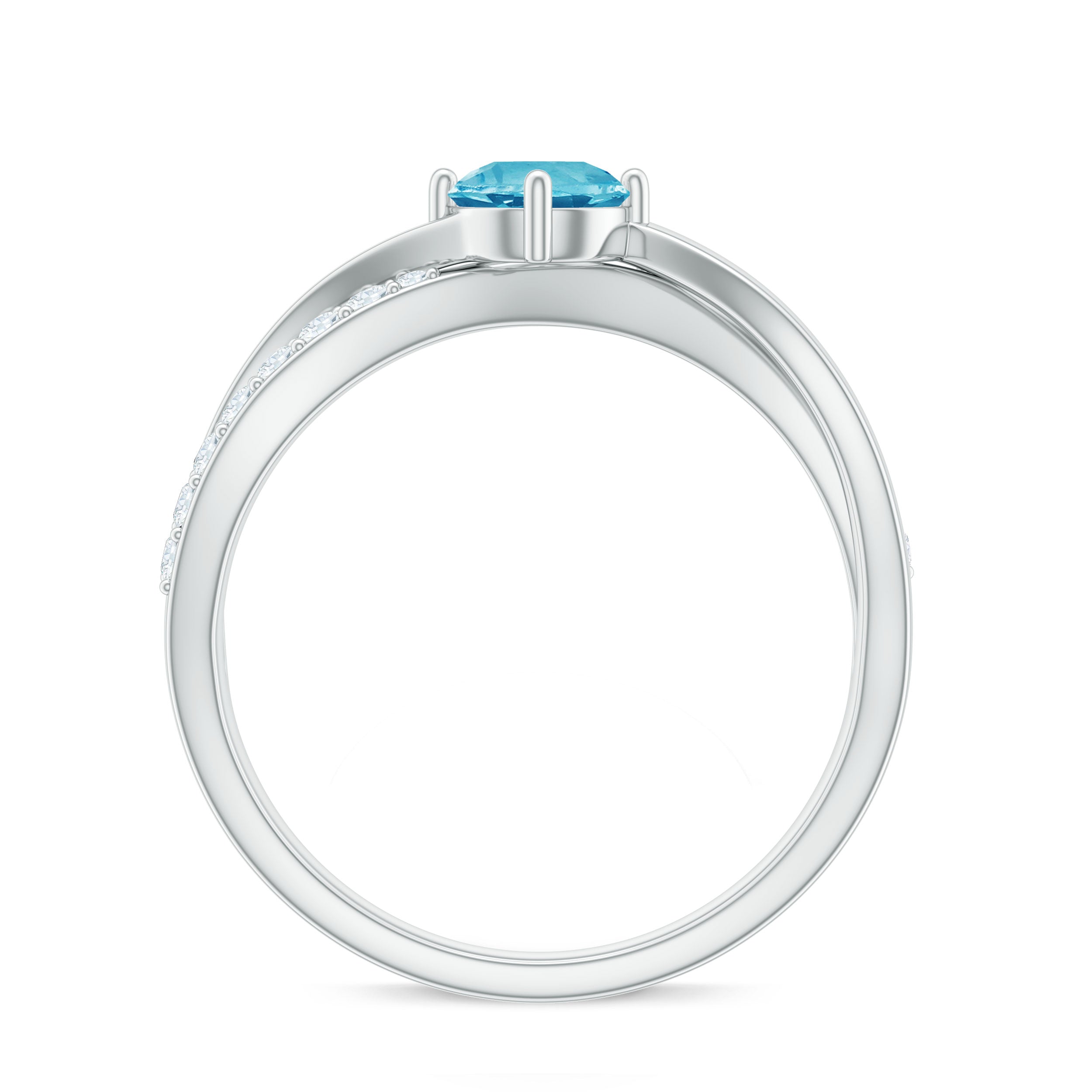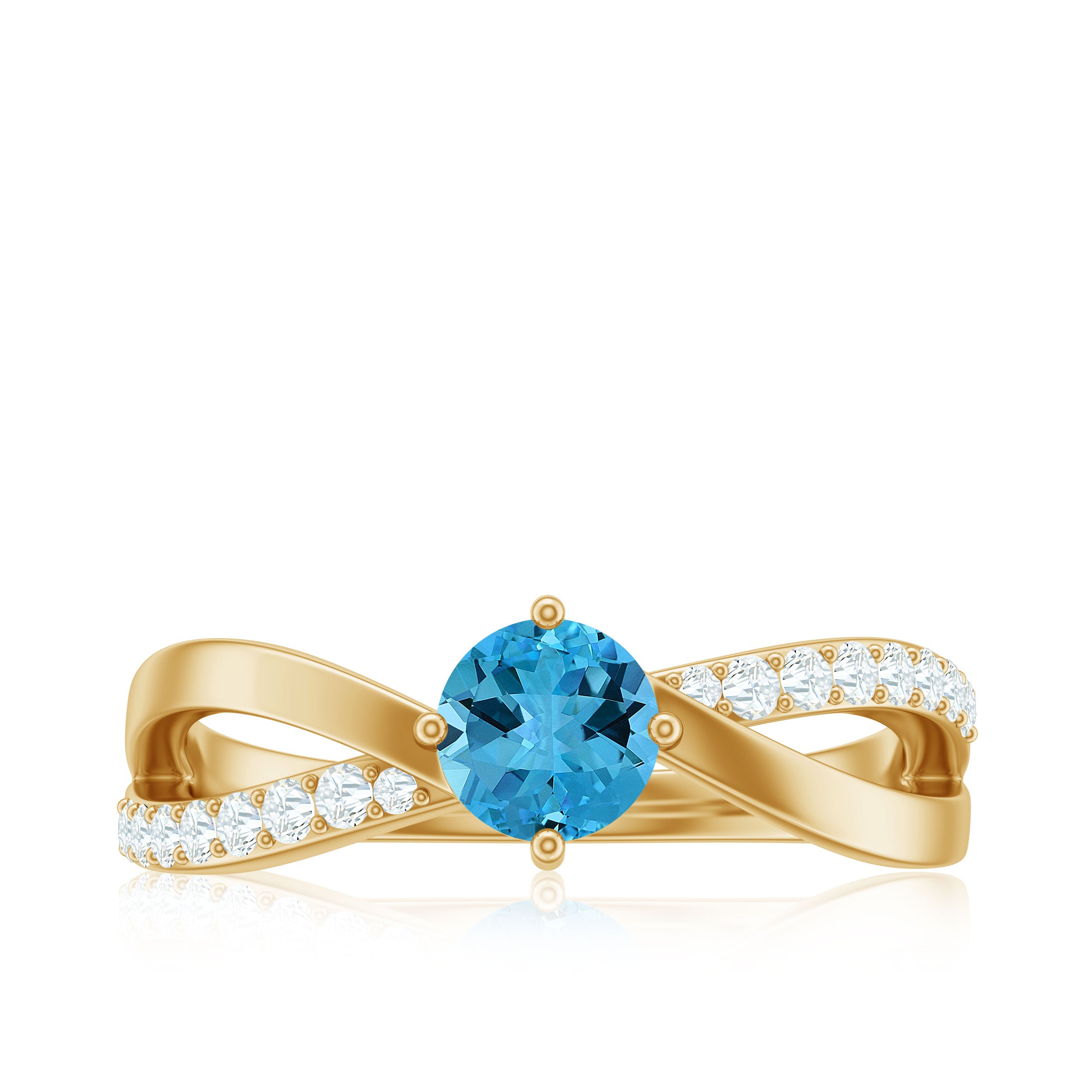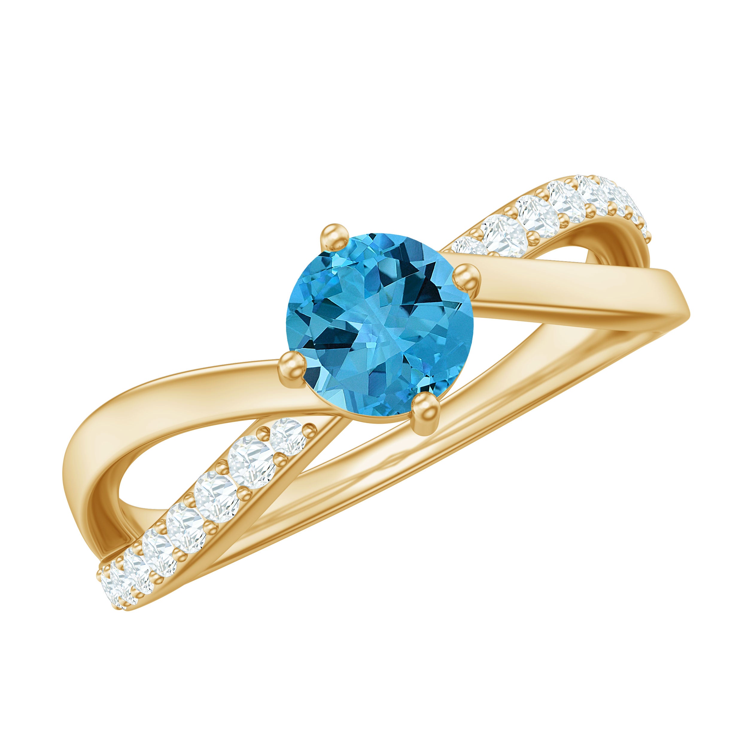 Infinity Shank Round Swiss Blue Topaz Engagement Ring with Diamond