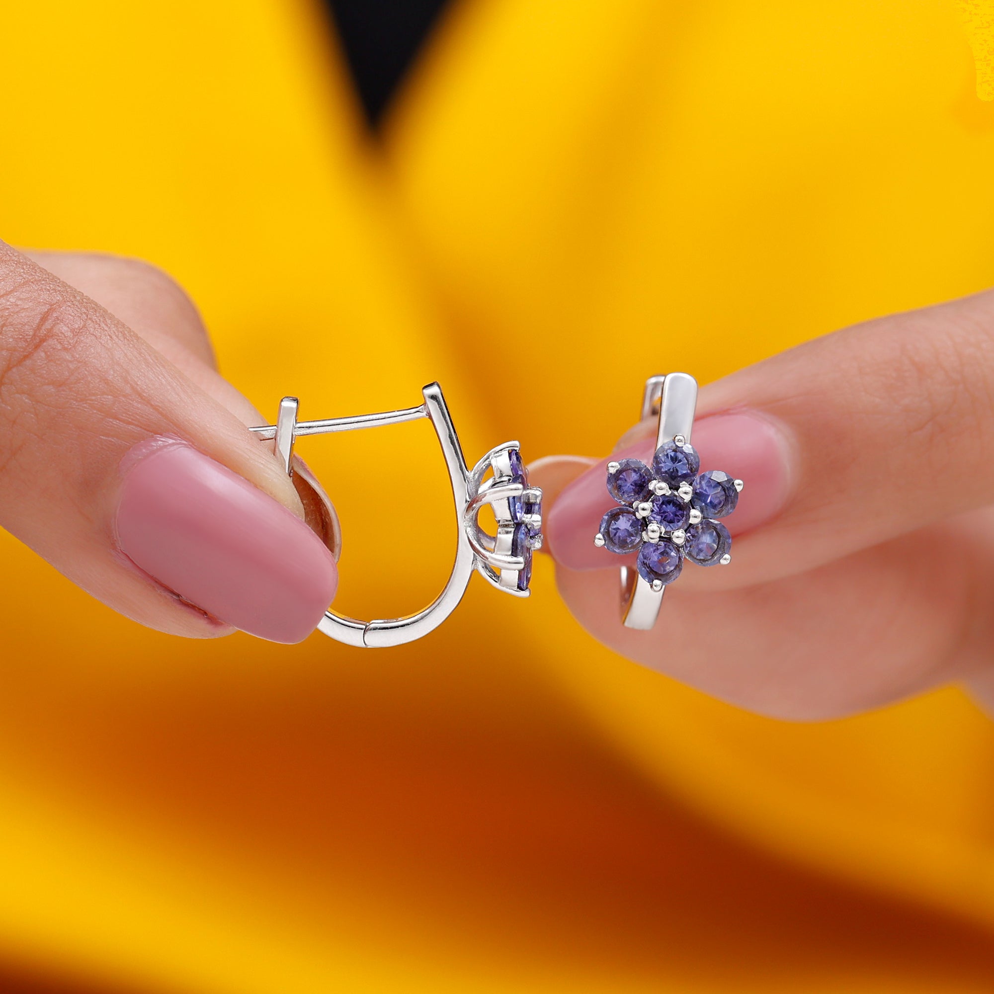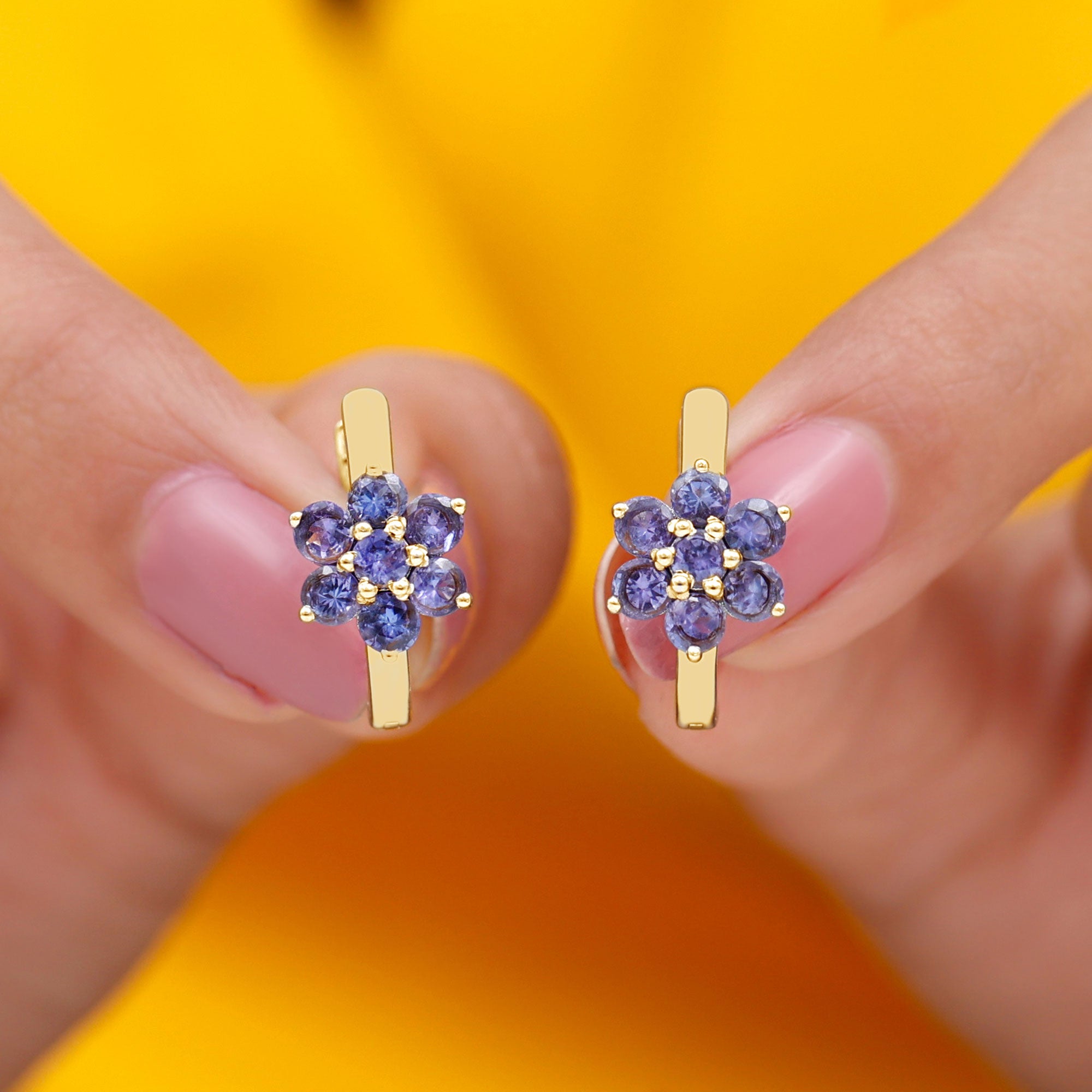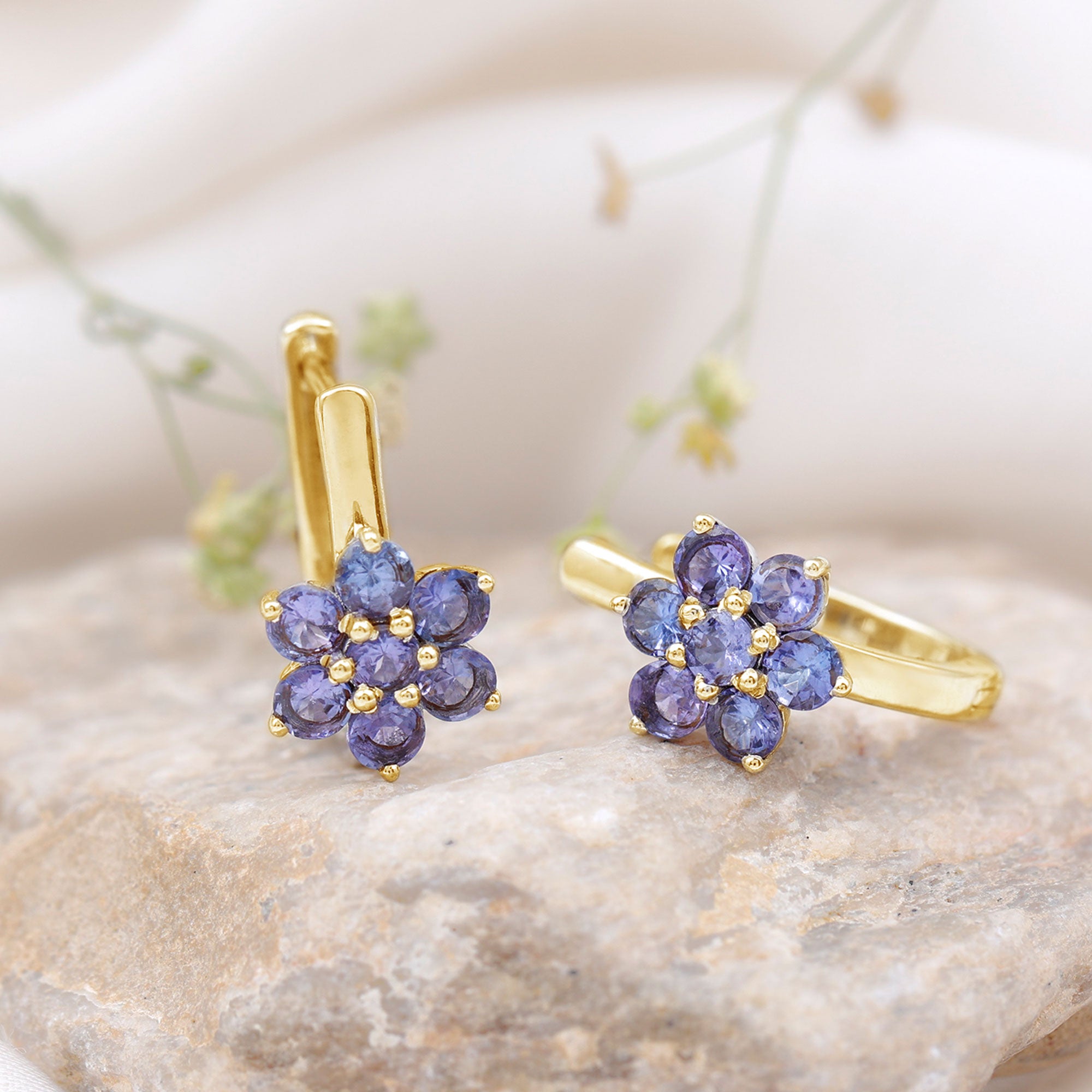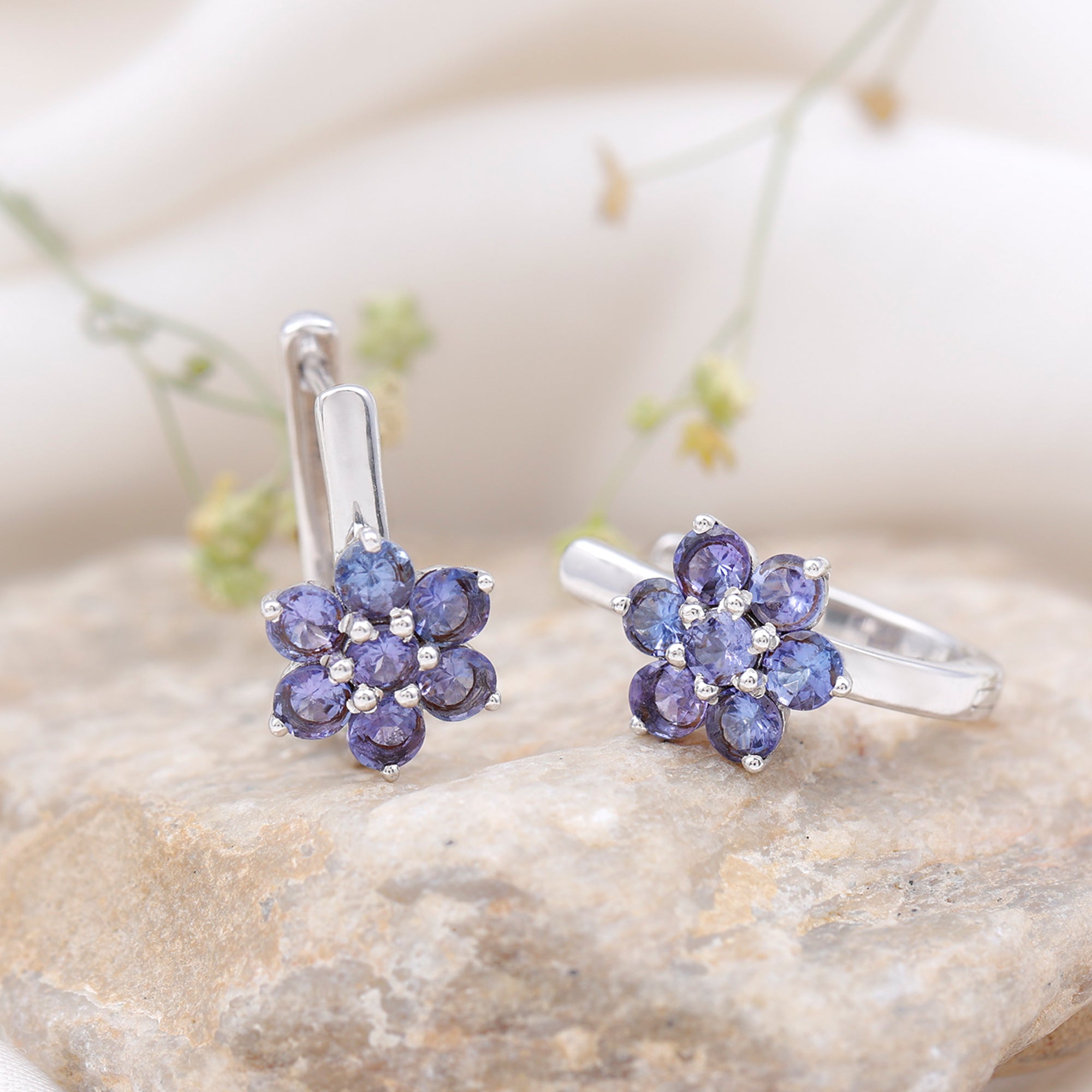 J Hoop Floral Earrings with Round Shape Tanzanite