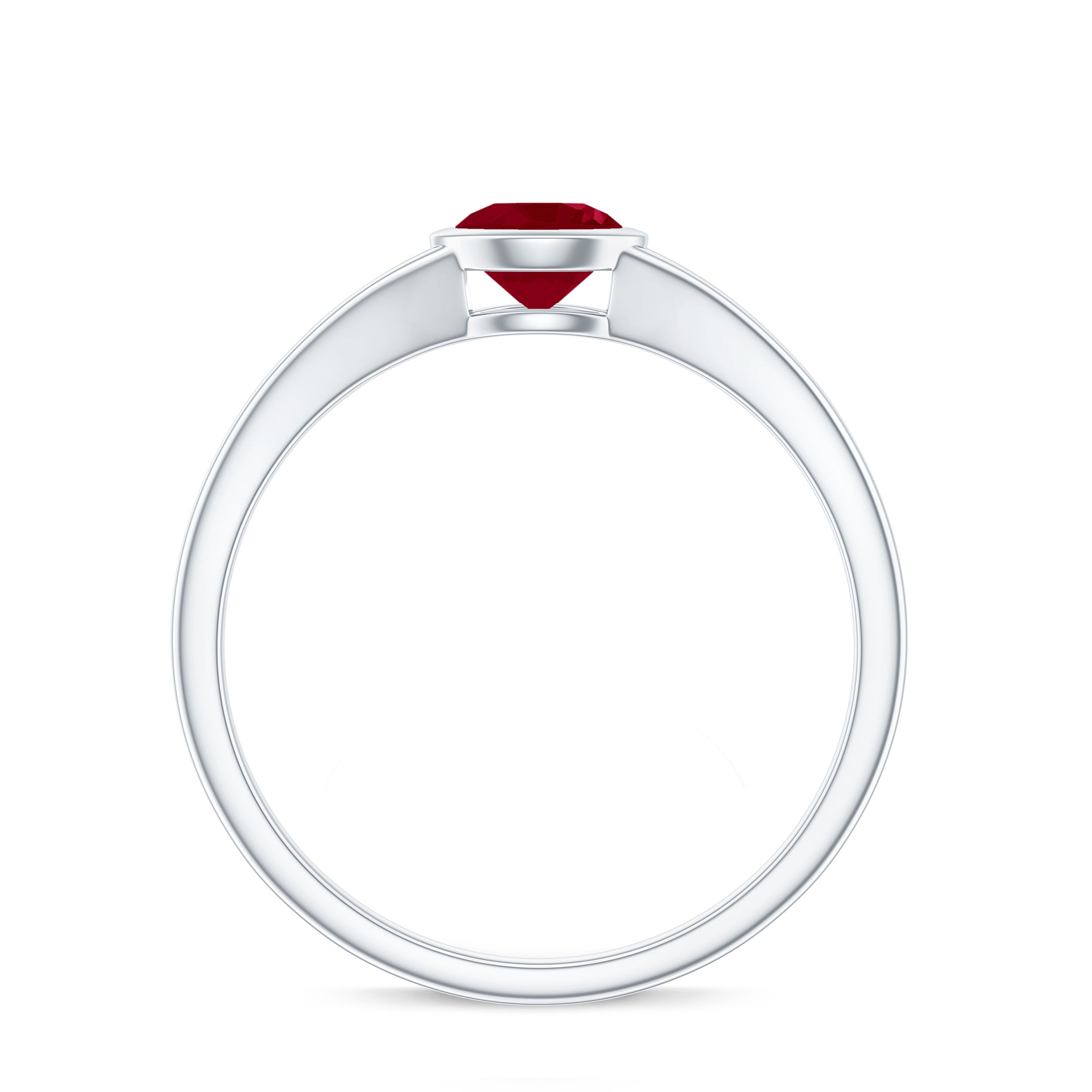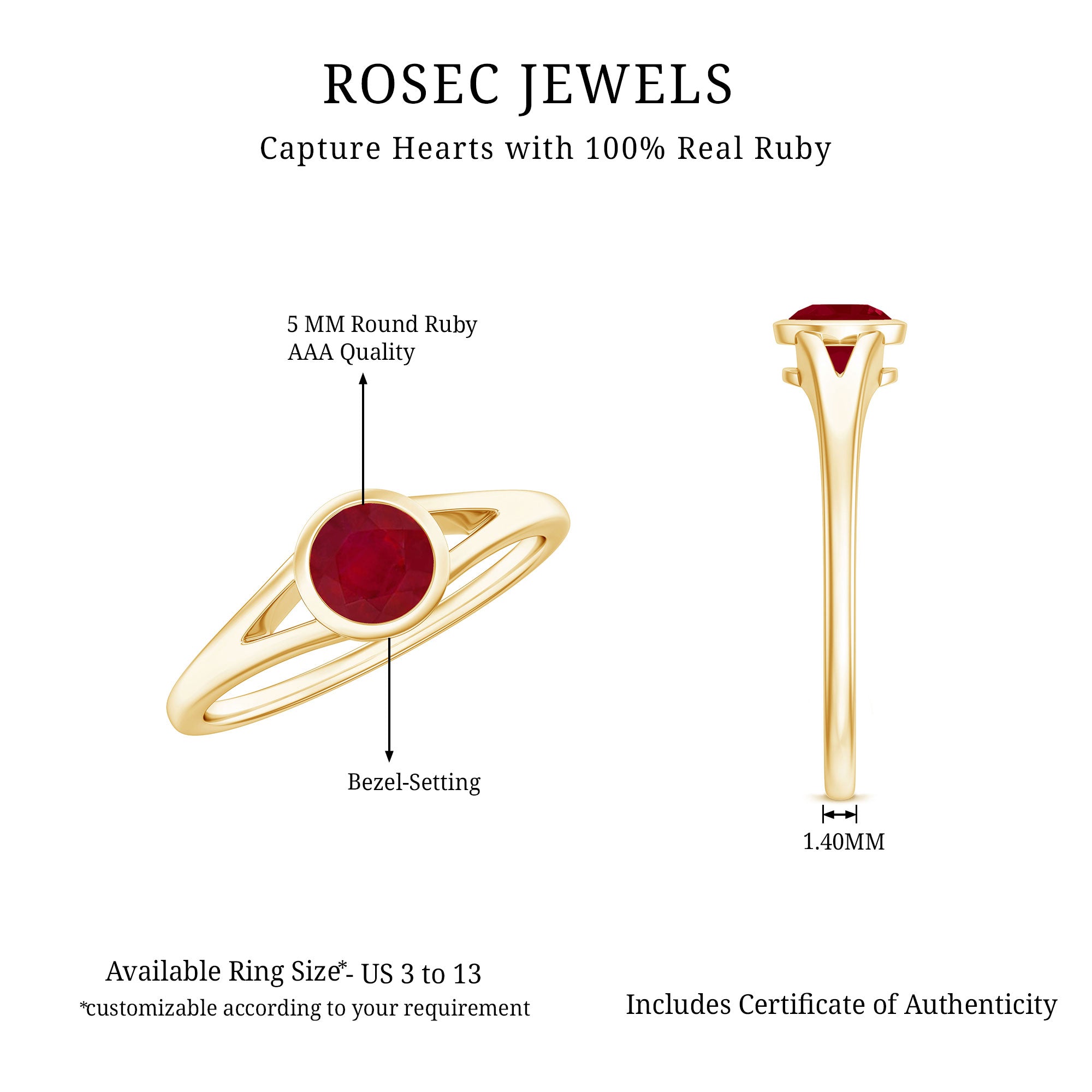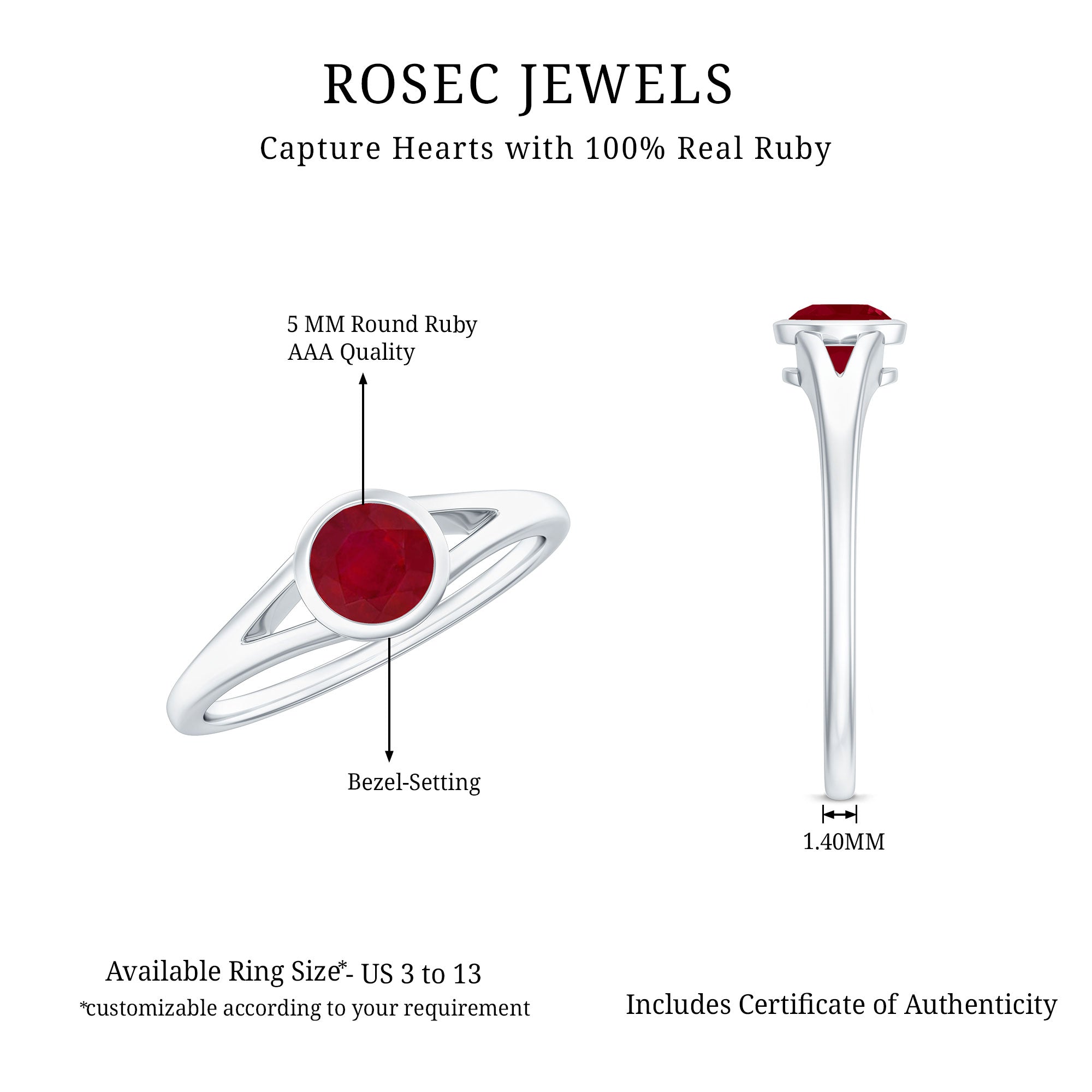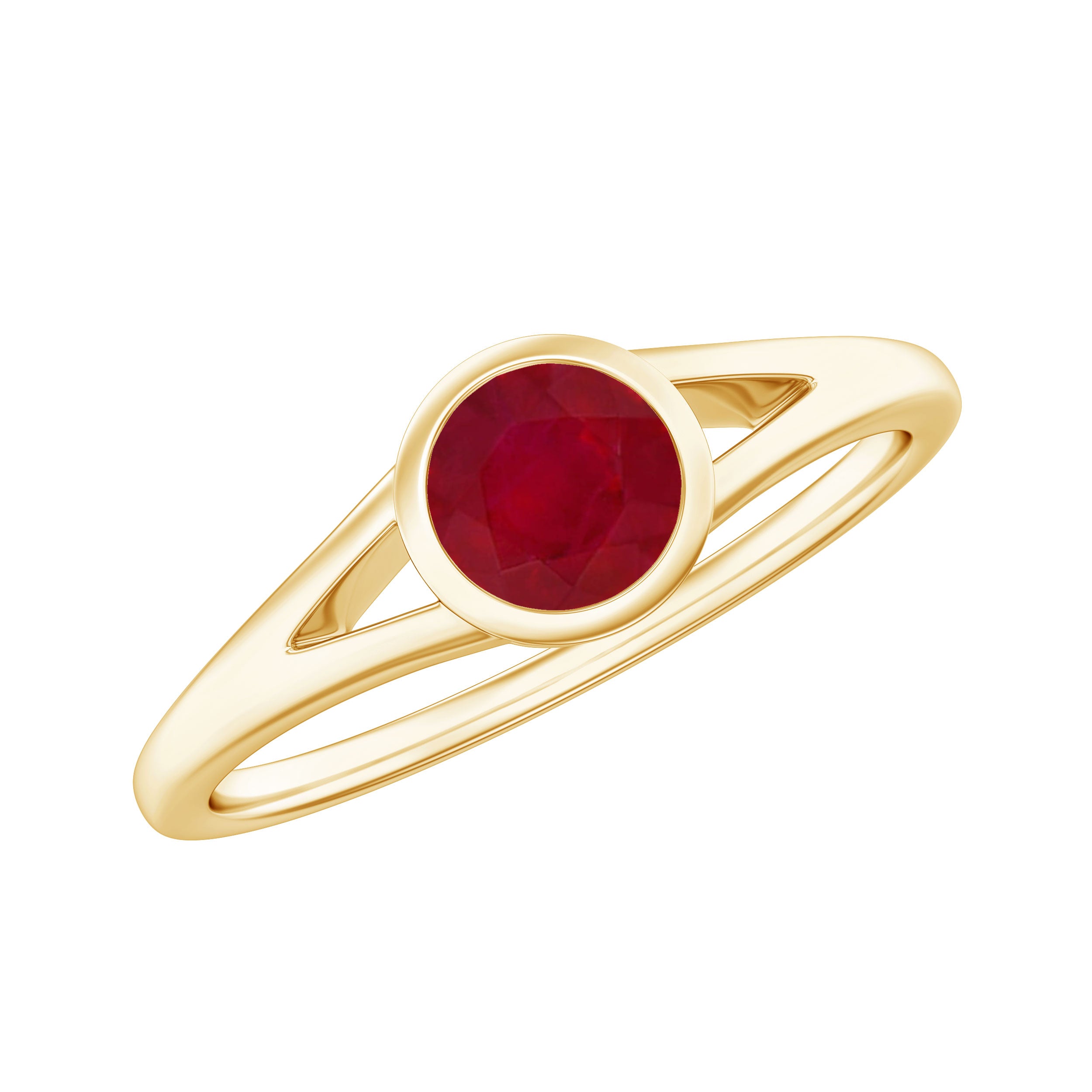 July Birthstone 5 MM Ruby Solitaire Ring in Bezel Setting with Split Shank