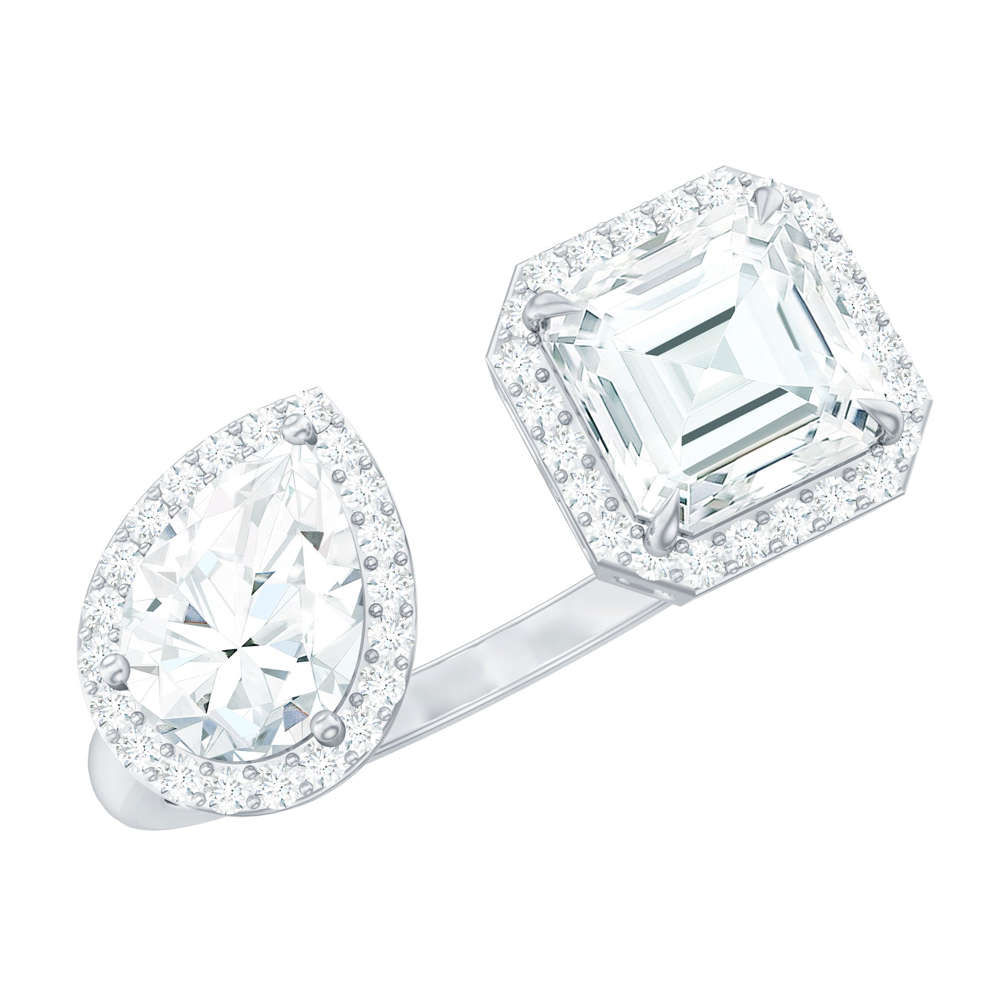 This stylish cuff ring is inspired by Kylie Jenners trendy fashion sense. The ring features two dazzling pear and asscher cut zircon stones set in a unique and modern design with zircon halo. The gold metal cuff adds a touch of elegance and sophistication to the piece, making it perfect for dressing up any outfit. The zircon stones provide a brilliant sparkle that catches the eye and adds a glamorous touch. This cuff ring is perfect for those who love to make a statement with their jewelry, and it is a great choice for adding a touch of elegance and sparkle to any look.