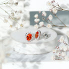 Lab Created 5X7 MM Orange Sapphire Stud Earrings with Moissanite Halo