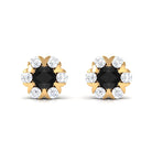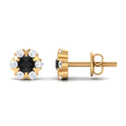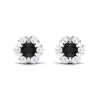 Lab-Created Black Diamond and Diamond Flower Stud Earrings