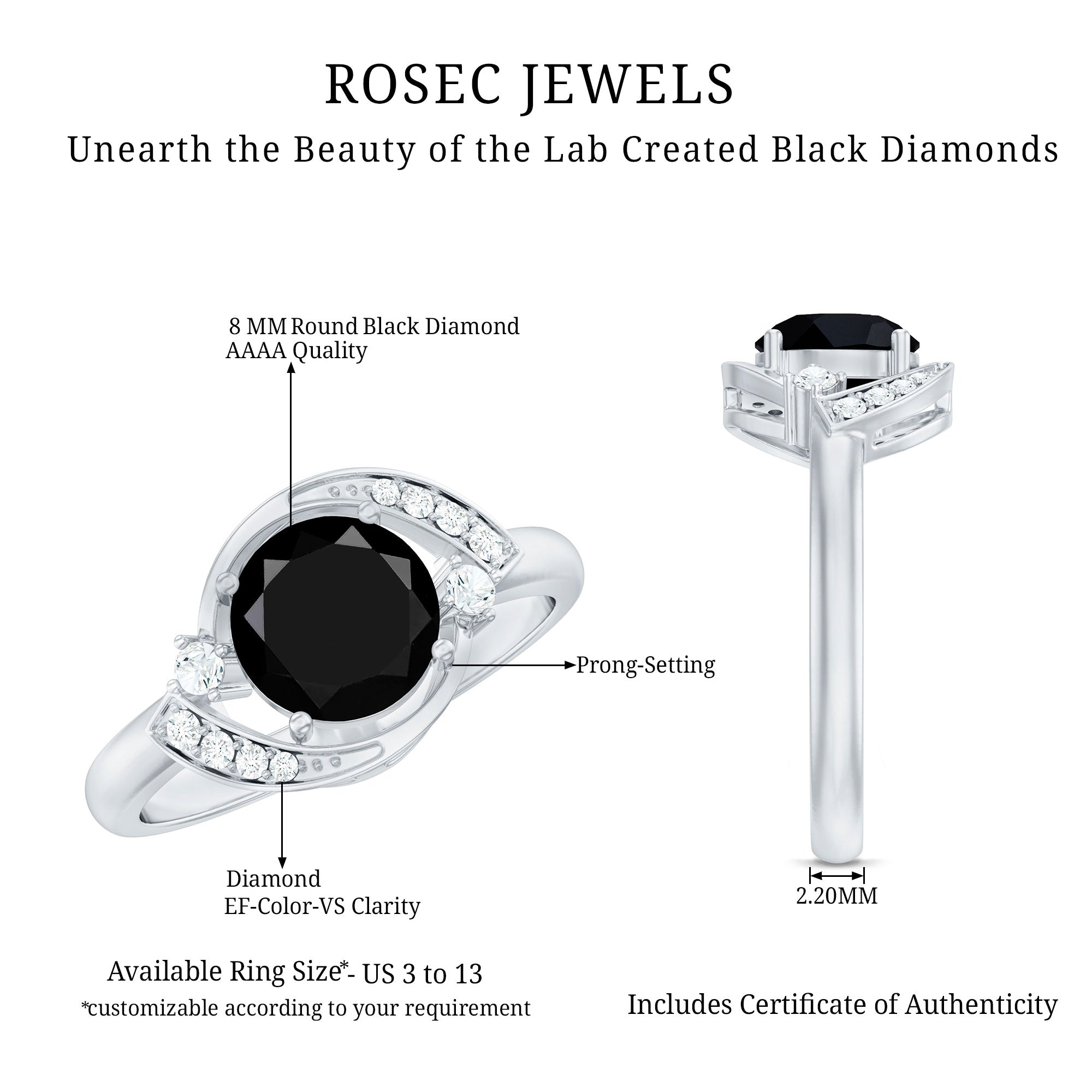 Surprise her with timeless elegance and modern sophistication with this Solitaire Promise Ring. Crafted to perfection, 8 mm Round Shaped Black Diamond set in Prong Setting with White Lab Grown Diamond gemstones, exudes a subtle allure, symbolizing commitment and style. The minimalistic design enhances its grace with Aaaa Quality Black Diamonds and Ef-Vs Quality Diamonds, making it a captivating choice for a lab created Black and White Diamond Ring. Meticulously created by Rosec Jewels, this Black Diamond Ring (Synthetic) offers a unique expression of love.