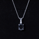 Add an intense hue to the outfit with this Lab Created Black Diamond Pendant, precisely crafted with 14K White Gold Plated Silver. The pendant features an 8X10 MM Synthetic Black Diamond securely placed in Prong Setting. The pendant holds the classic shine of AAAA Quality Lab Grown Black Diamond, which is topped with the smaller Moissanite. This Solitaire Pendant is accentuated with the standard Bail and dangles with the classic cable chain. This Statement Pendant Necklace will be delivered to you with a gemstone certificate of authenticity.