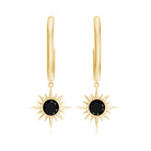 Lab Created Black Diamond Sunburst Hoop Earrings in Bezel Setting