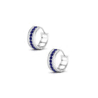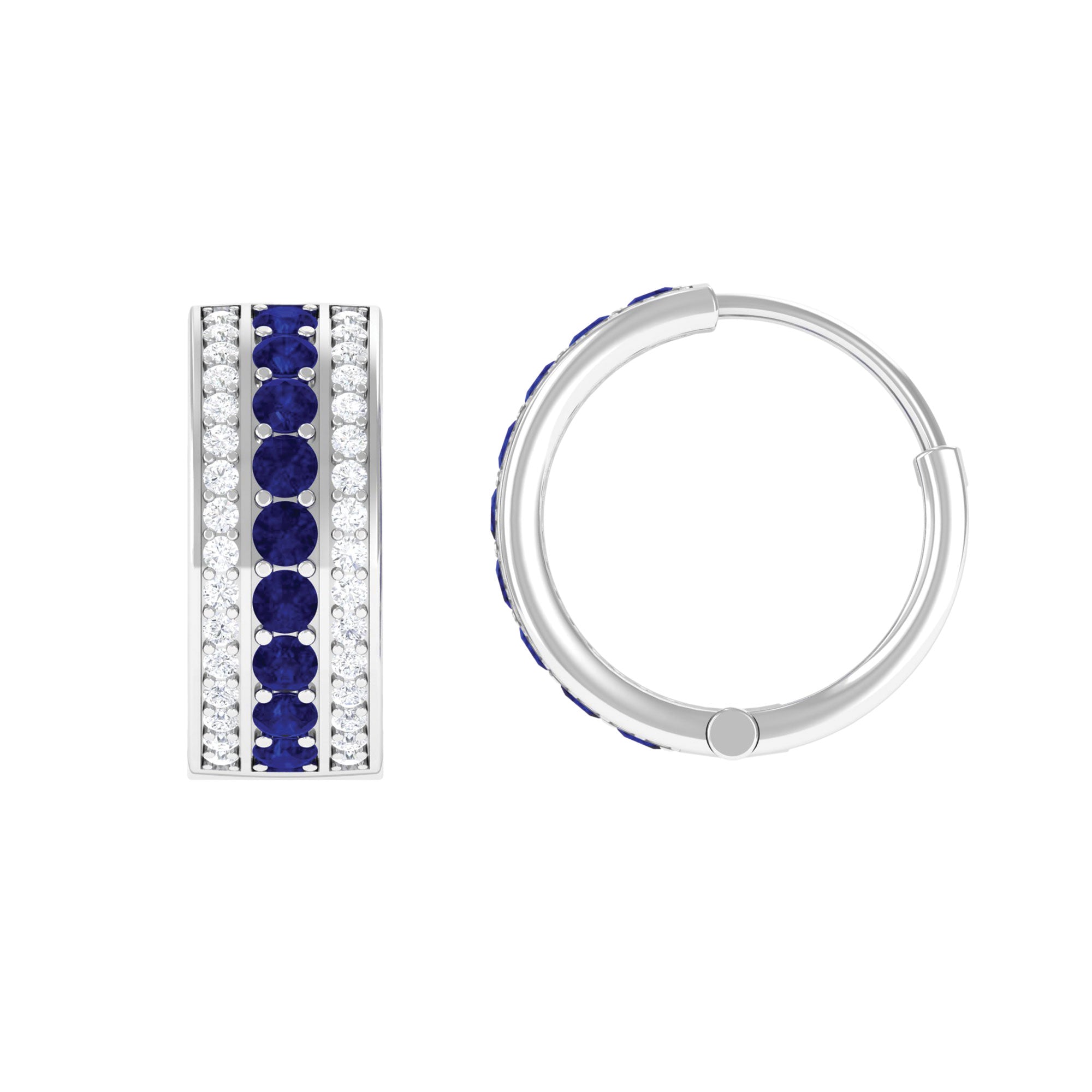 Lab Created Blue Sapphire and Diamond Hoop Earrings For Her