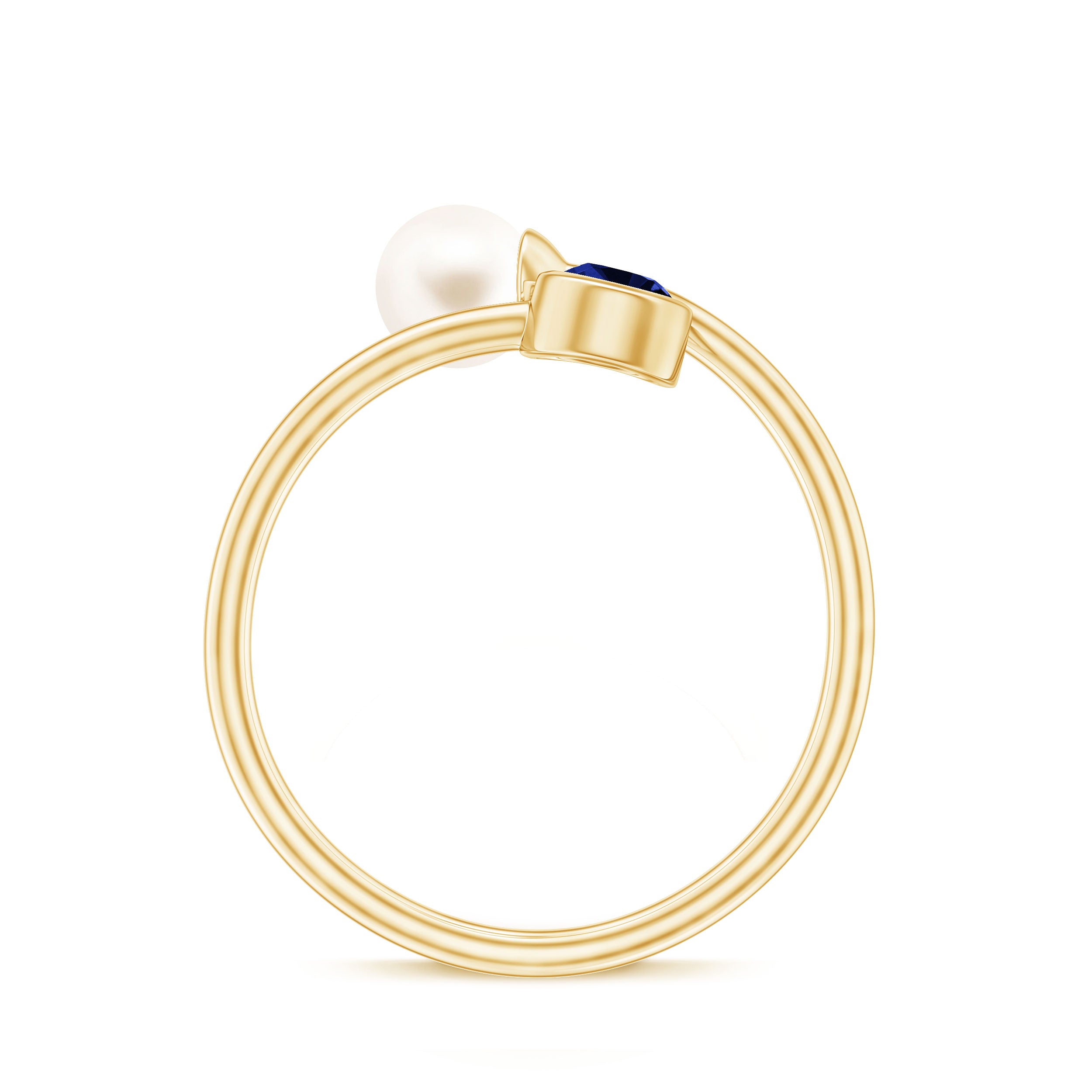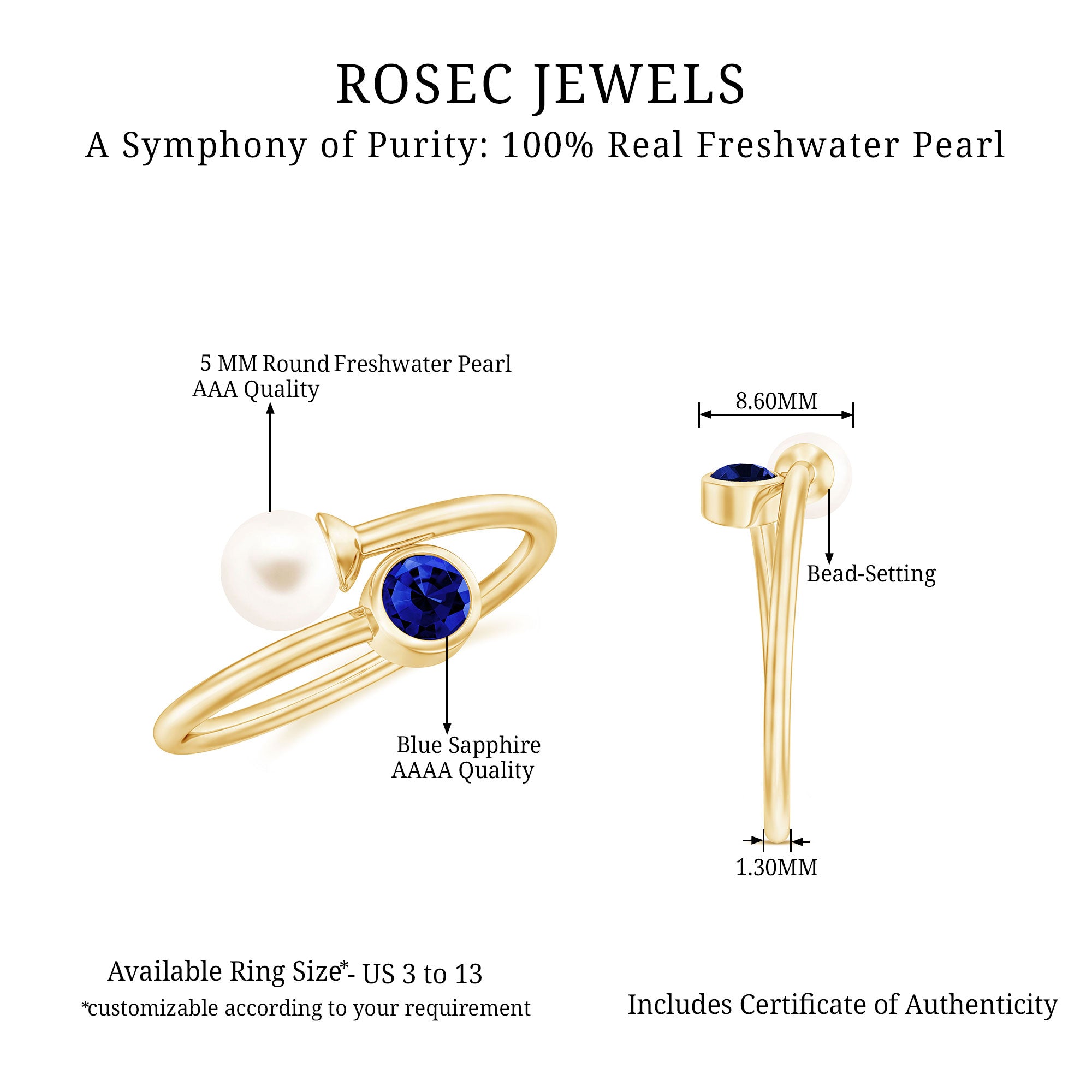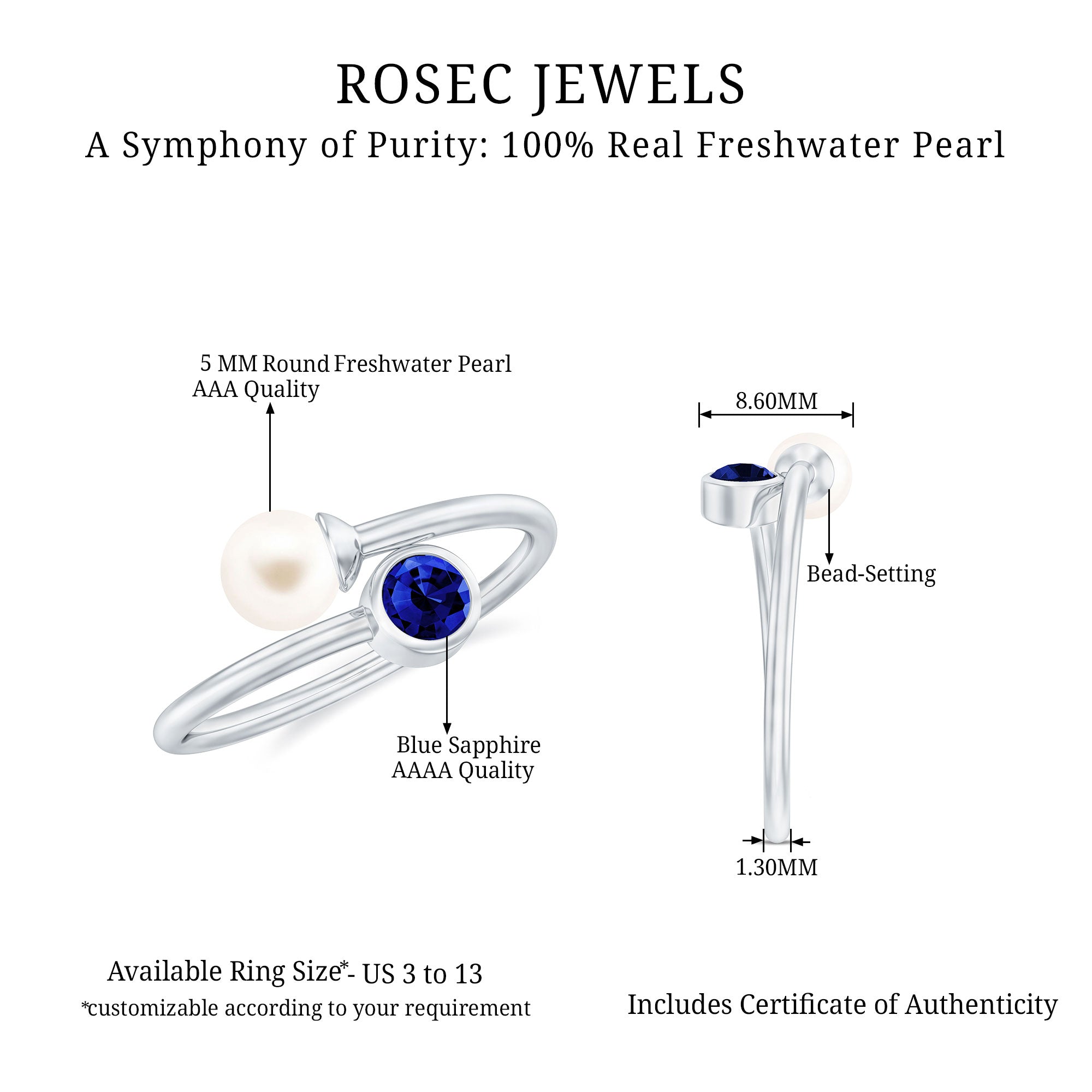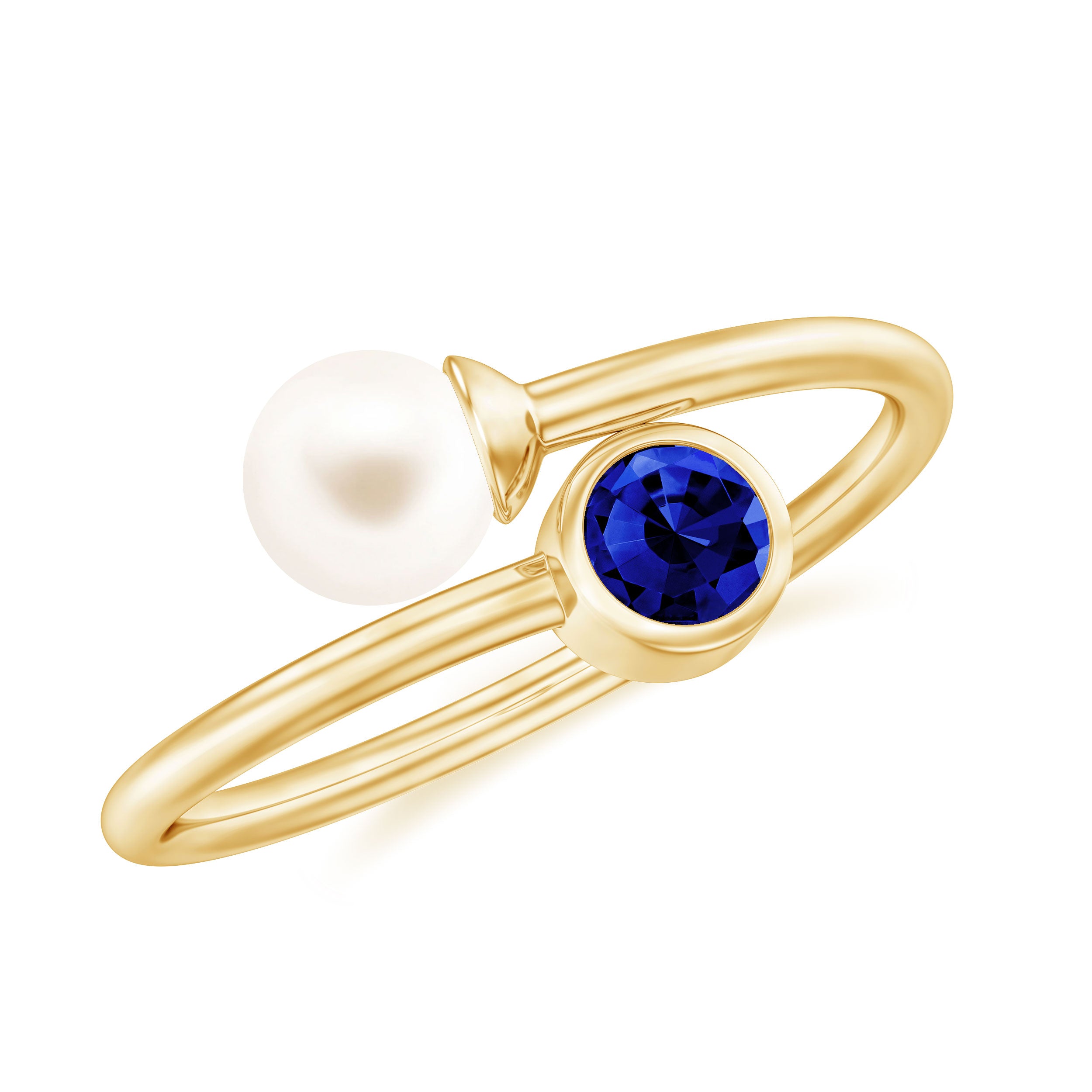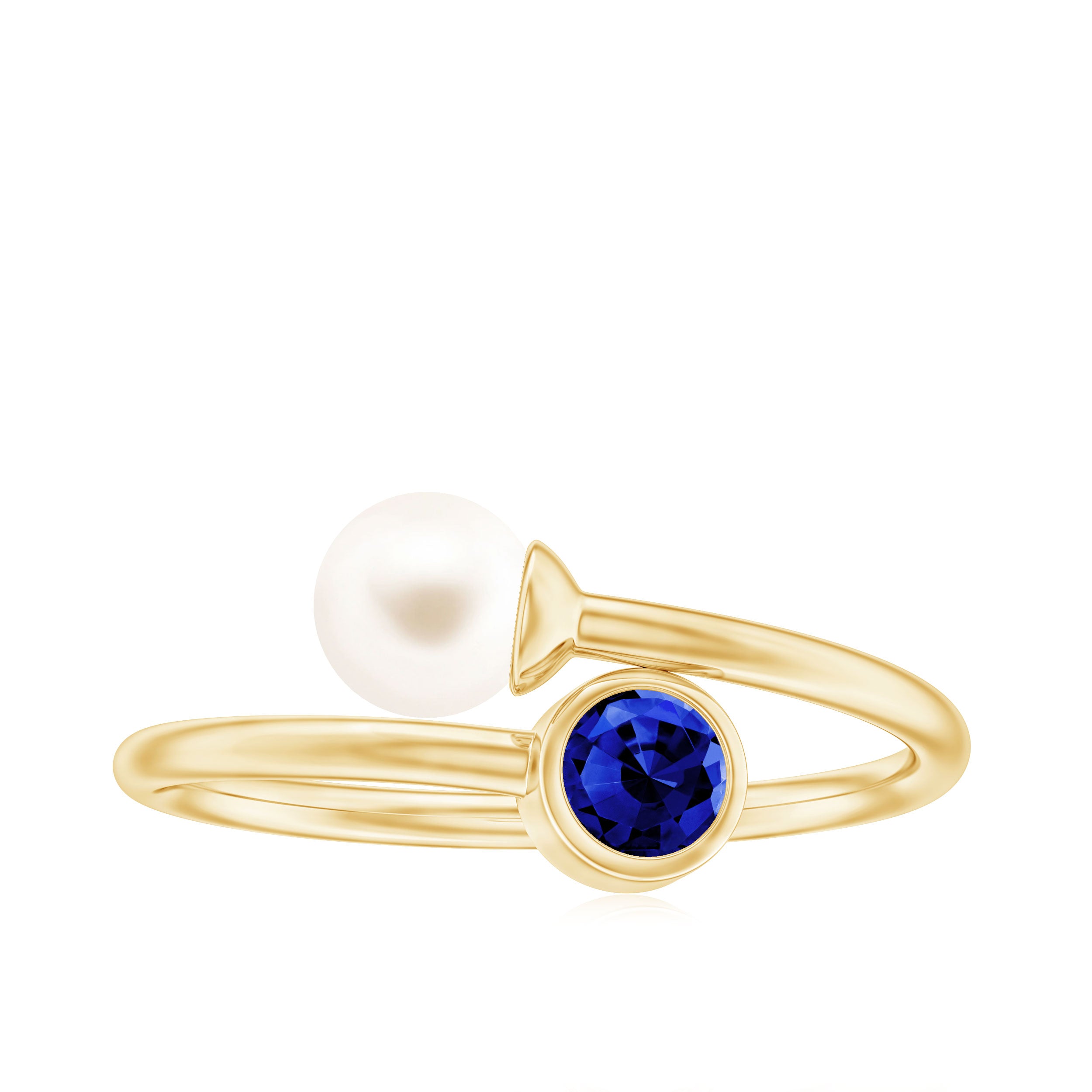 Lab Created Blue Sapphire and Pearl Toi Et Moi Ring