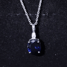 Add a hint of boldness with this Lab Grown Blue Sapphire Pendant, precisely crafted with 14K White Gold Plated Silver. This Solitaire Pendant features an 8X10 MM Oval Shape Synthetic Sapphire topped with a Round Shape Moissanite. The pendant holds the classic shine of AAAA Quality Cultured Sapphire secured in Prong Setting. This Statement Pendant Necklace can be styled with your special look. The pendant is accentuated with a Rabbit Ear Bail and dangles with sturdy cable chain that makes it beautifully sit on the neckline.
