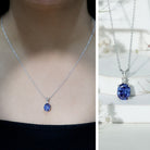 Lab Created Blue Sapphire Oval Cut Solitaire Pendant with Silver Chain