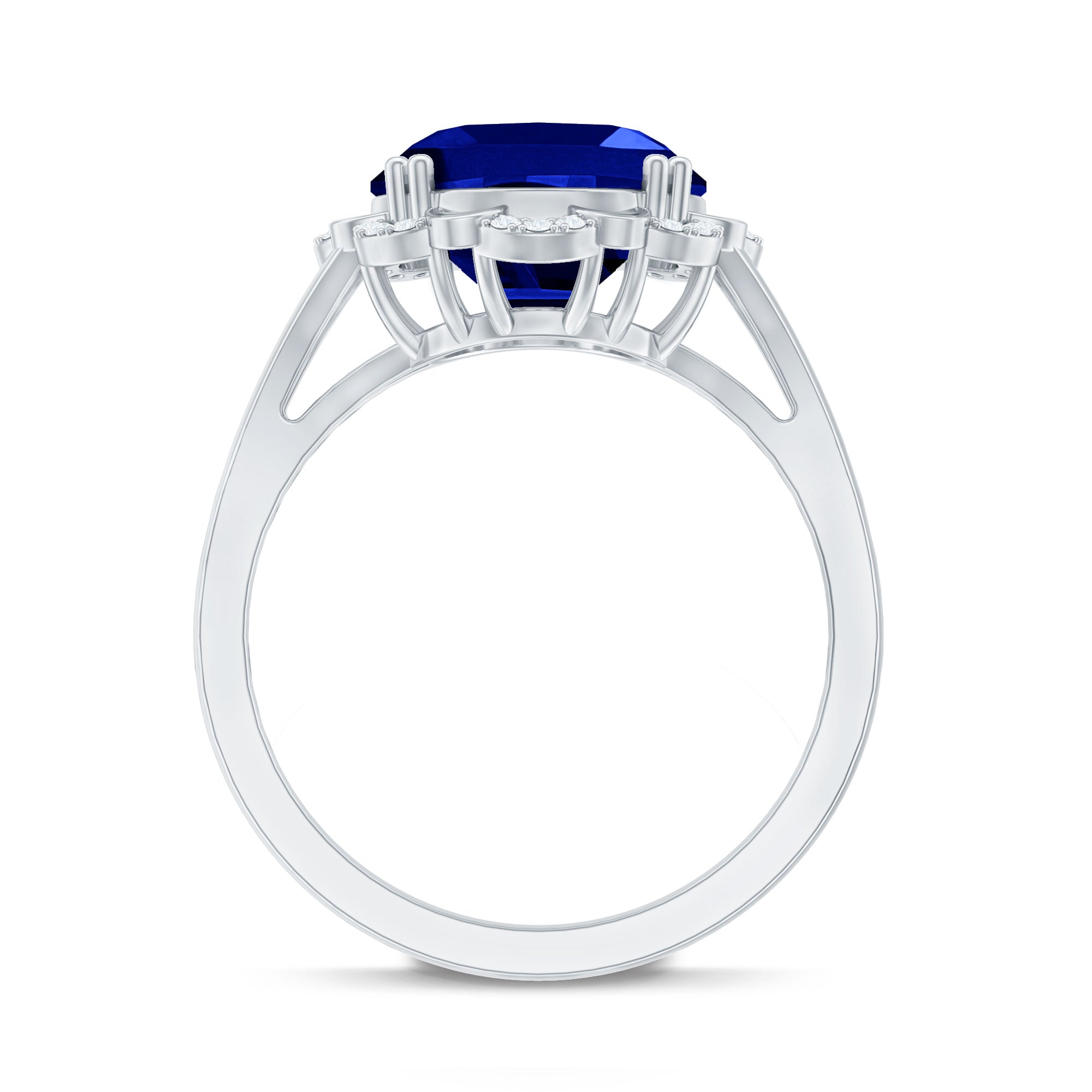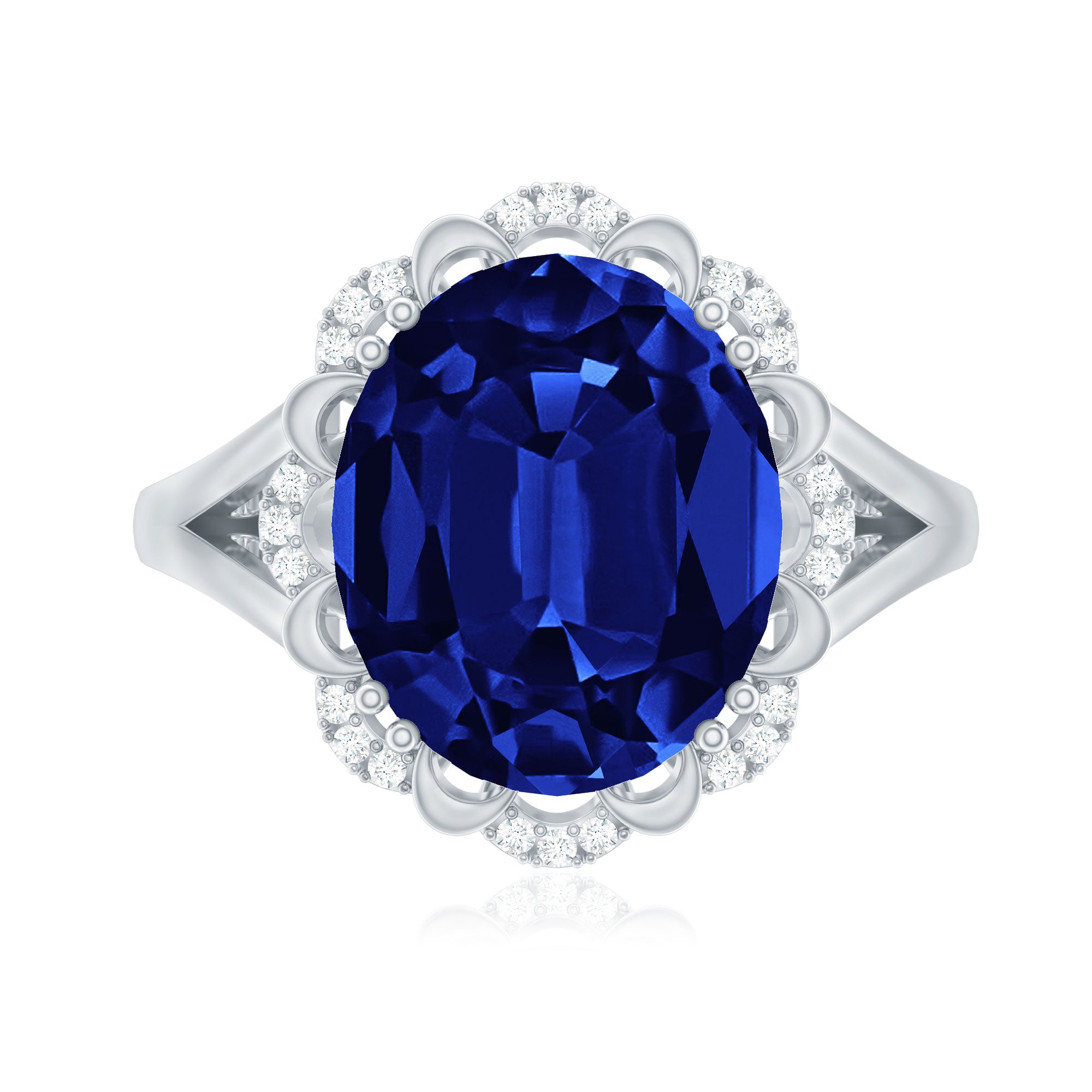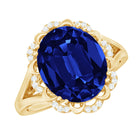 Lab Created Blue Sapphire Oval Engagement Ring with Diamond