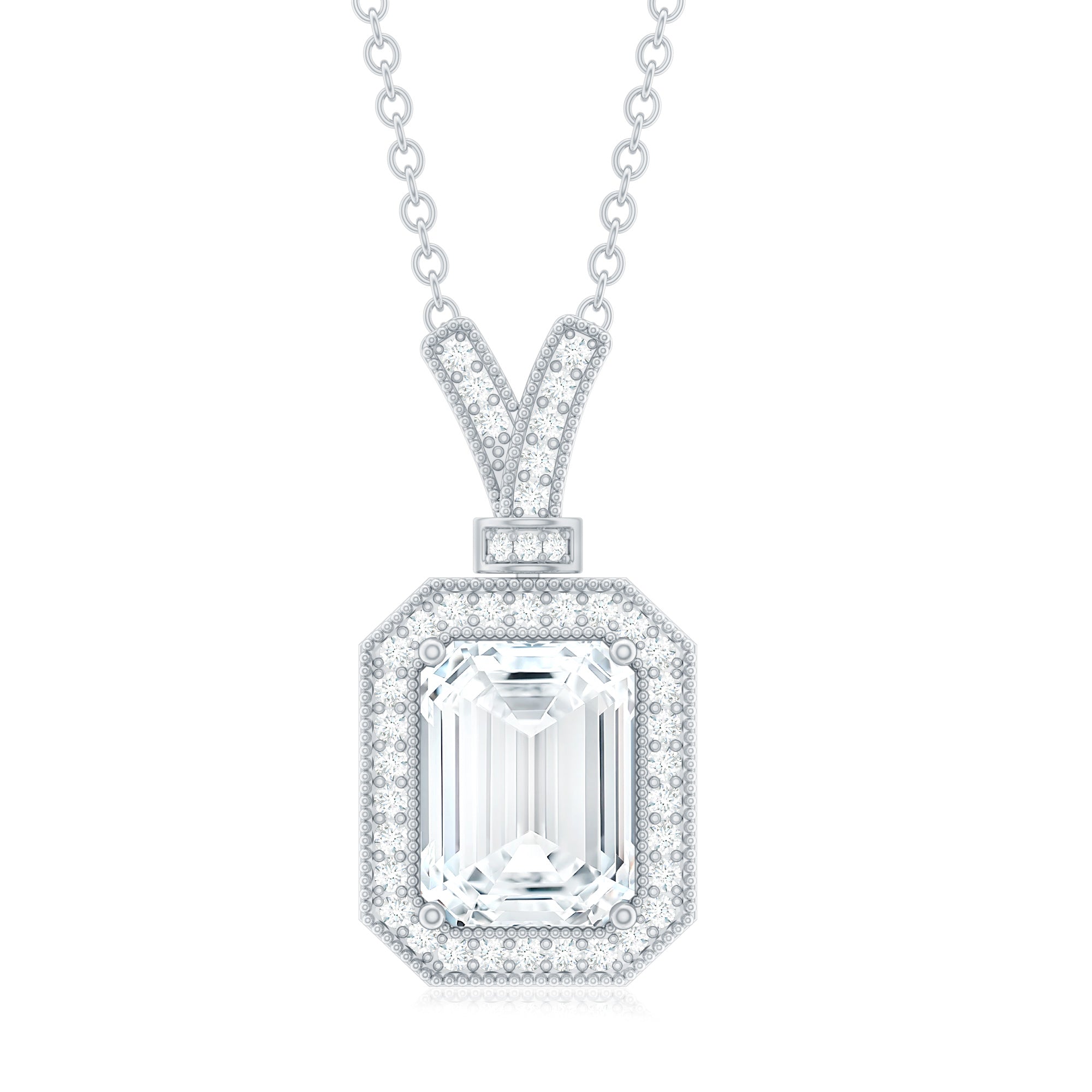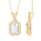 Lab Created Diamond 6X8 MM Emerald Cut Halo Necklace
