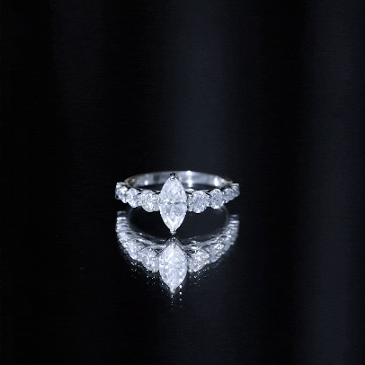 Our Lab Grown Diamond Engagement Ring is bound to steal hearts with its captivating design and classic appeal. This stunning Side Stone Engagement Ring showcases a 5X10 MM elongated marquise cut lab-created diamond as the focal point, set in prong setting. The band is embellished with round cut diamond side stones in different sizes, arranged in a graduated pattern that adds extra brilliance. This Graduated Diamond Ring is designed to suit your style perfectly, available in various metal options to complement your preferences, whether you lean towards different metal types or specific colors. Additionally, it can be customized to fit your finger size from US standards 3 to 13, because every hand deserves a touch of sparkle like this. Whether you are planning a dream proposal or simply want a Marquise Diamond Ring for her that narrates your love story, this piece has everything you could wish for. It also includes a certificate of authenticity, ensuring you have complete peace of mind about your purchase. Celebrate every moment of your love story with this Marquise Engagement Ring.