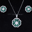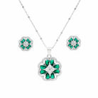 Lab Created Emerald and CZ Flower Necklace and Earrings Set